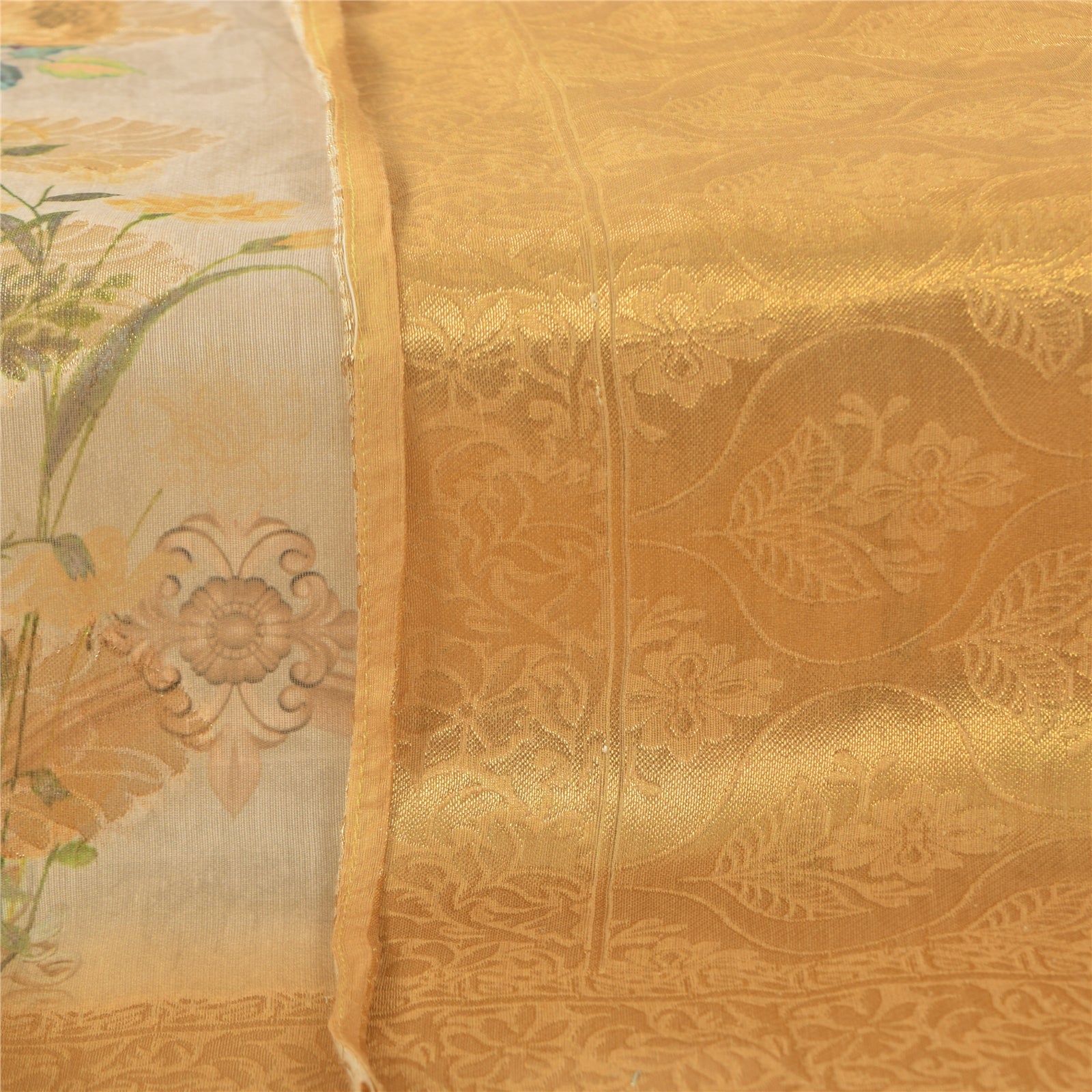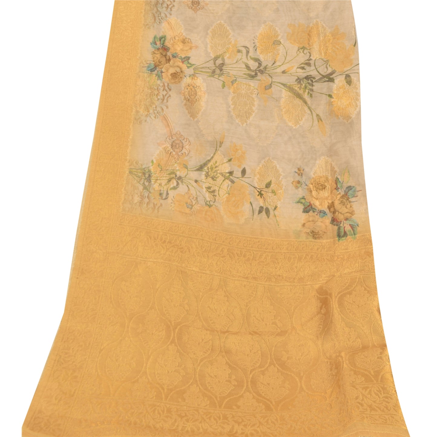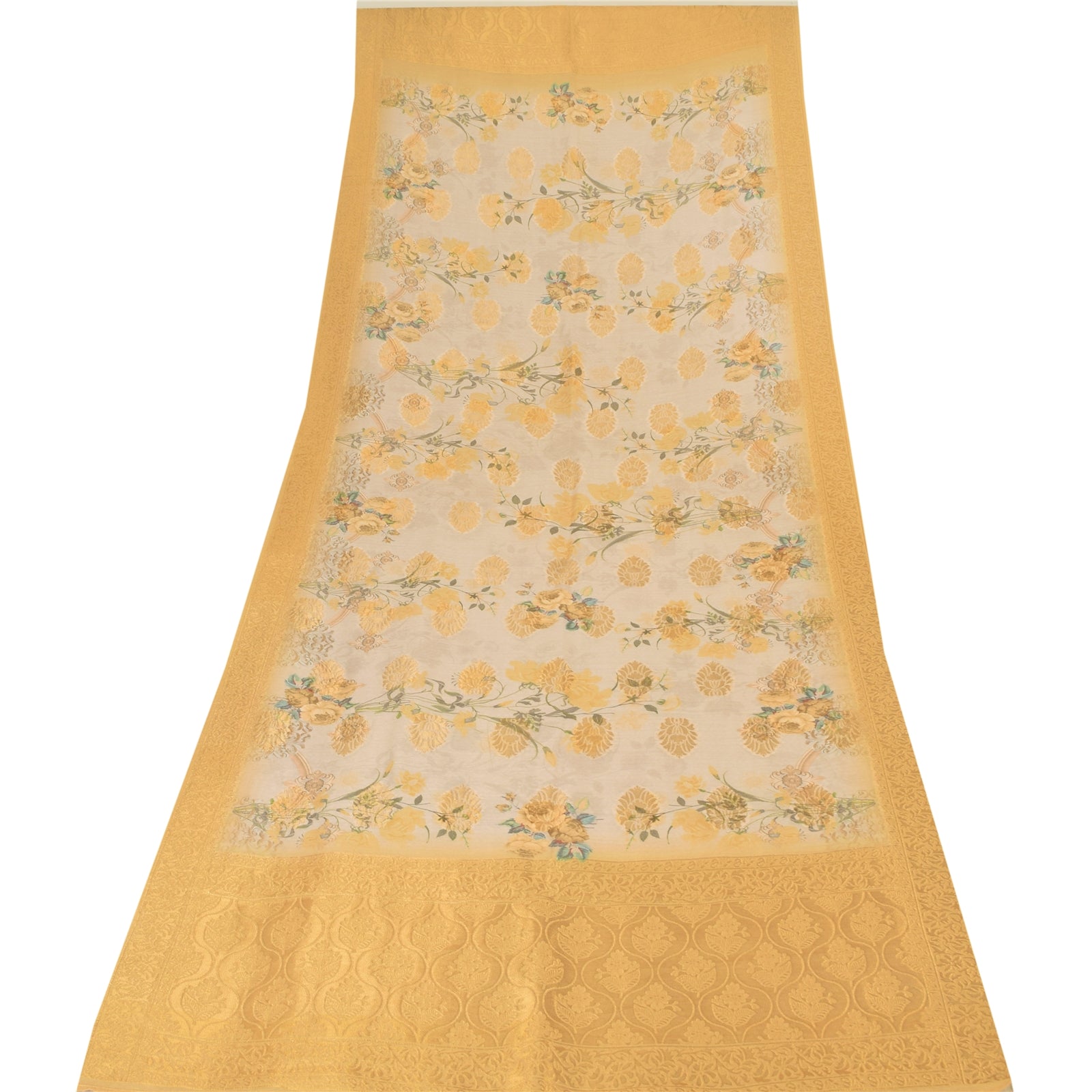 'THE ITEM COLOR OR SHADE MAY BE DARKER OR LIGHTER THAN THE PICTURE.' Beautiful ivory & yellow colored pure silk woven printed long scarf/dupatta. Center portion of the dupatta has floral design with yellow color woven work & multi color printed work. Border has floral design embellished with similar woven work is really enhancing beauty of the dupatta/stole. This dupatta/stole can be used for various crafting ideas too. Use it for dress designing, as a throw, as window dressing, upholstery, table linen and much more. Let your creative juices flow. Shipping note: International buyers please note: Import duties, taxes, and charges are not included in the item price or postage cost. These charges are the buyer's responsibility. Please check with your country's customs office to determine what these additional costs will be prior to bidding or buying. Buyer will pay custom duty/tax. It is calculated and charged differently by every country. As a seller I do not have any control over it. VAT or sales tax is calculated by the platform at the time of checkout. Customs charge is payable at the time of delivery.' SKU: DC-55198
