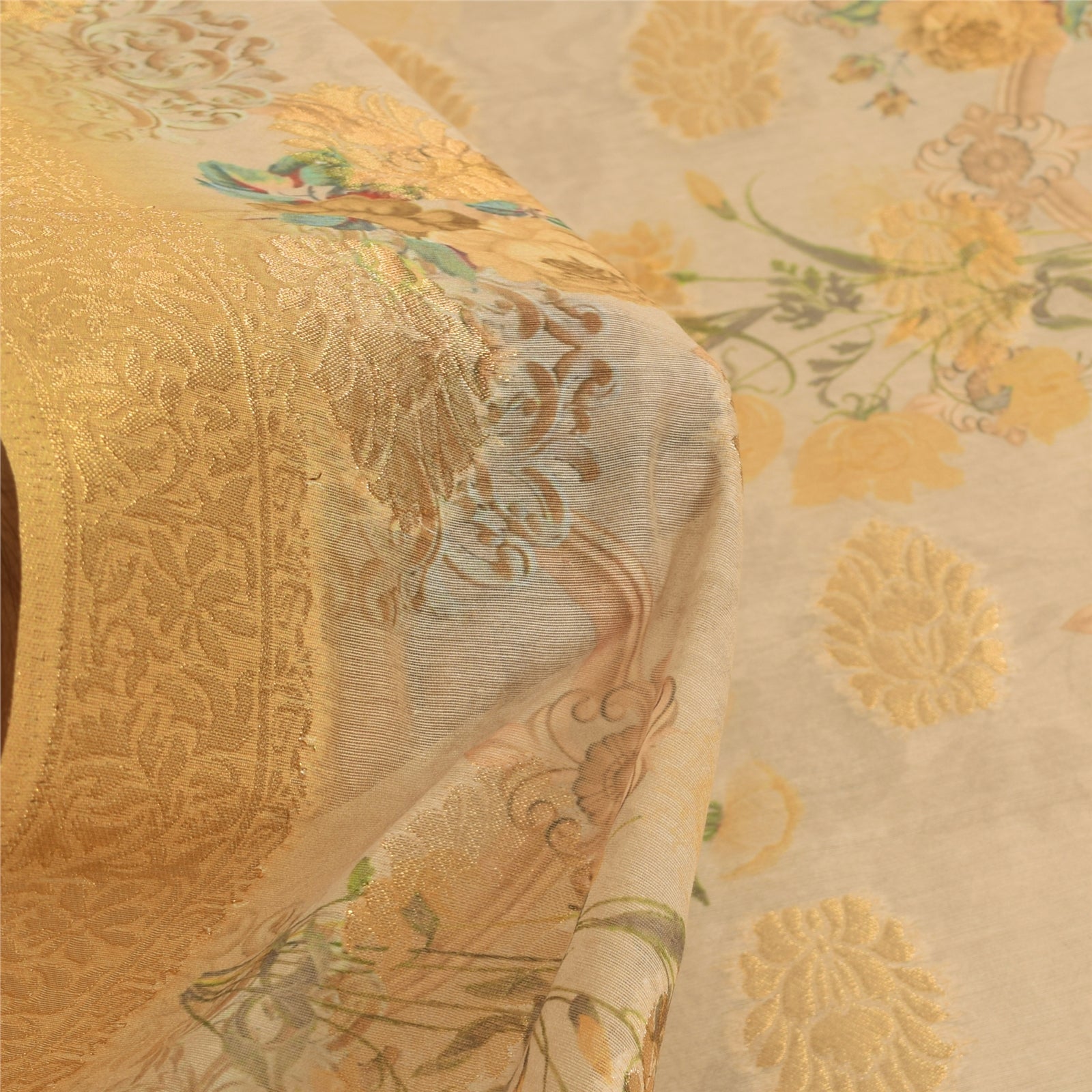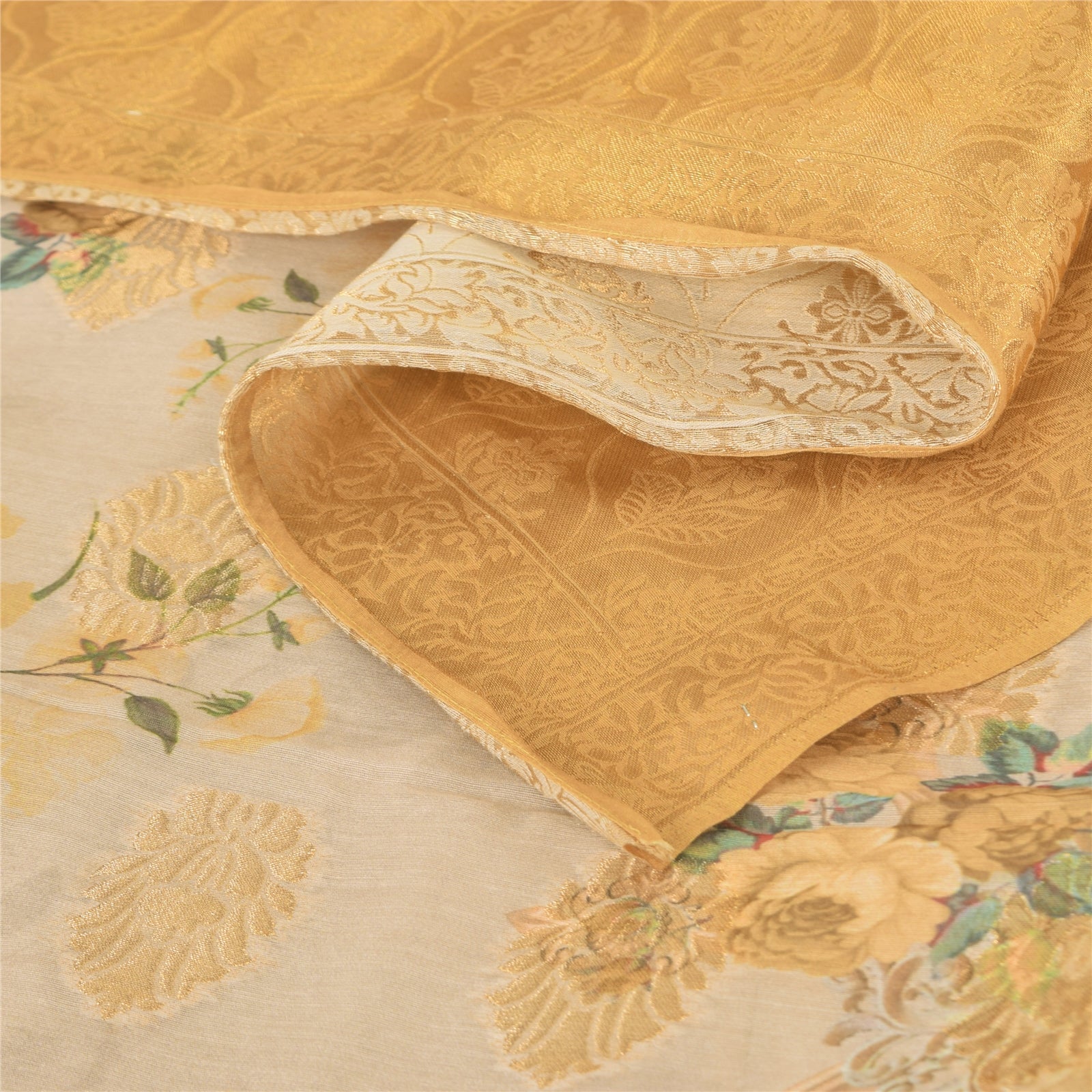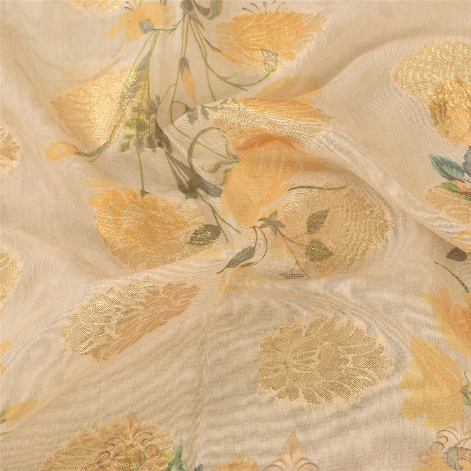 'THE ITEM COLOR OR SHADE MAY BE DARKER OR LIGHTER THAN THE PICTURE.' Beautiful ivory & yellow colored pure silk woven printed long scarf/dupatta. Center portion of the dupatta has floral design with yellow color woven work & multi color printed work. Border has floral design embellished with similar woven work is really enhancing beauty of the dupatta/stole. This dupatta/stole can be used for various crafting ideas too. Use it for dress designing, as a throw, as window dressing, upholstery, table linen and much more. Let your creative juices flow. Shipping note: International buyers please note: Import duties, taxes, and charges are not included in the item price or postage cost. These charges are the buyer's responsibility. Please check with your country's customs office to determine what these additional costs will be prior to bidding or buying. Buyer will pay custom duty/tax. It is calculated and charged differently by every country. As a seller I do not have any control over it. VAT or sales tax is calculated by the platform at the time of checkout. Customs charge is payable at the time of delivery.' SKU: DC-55198