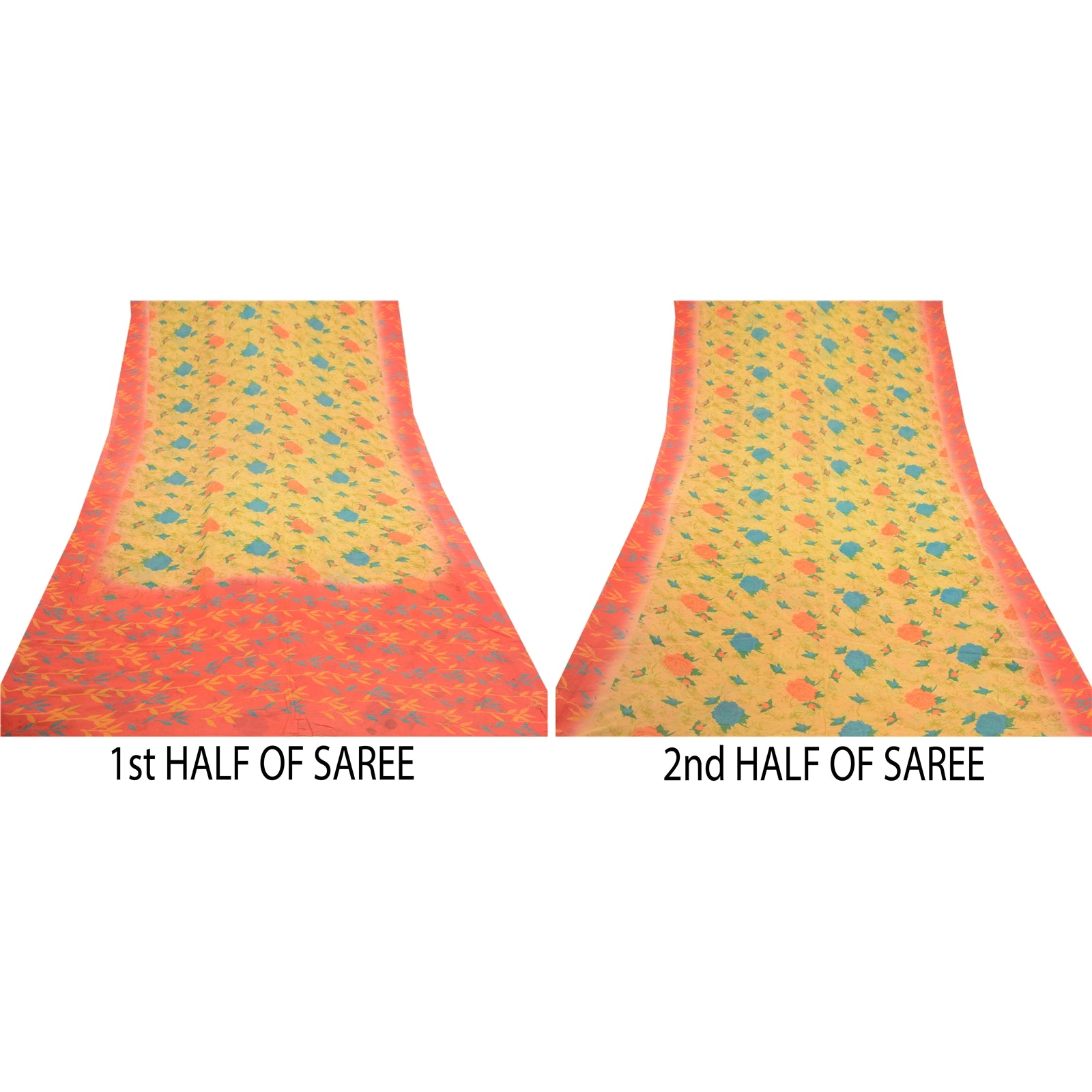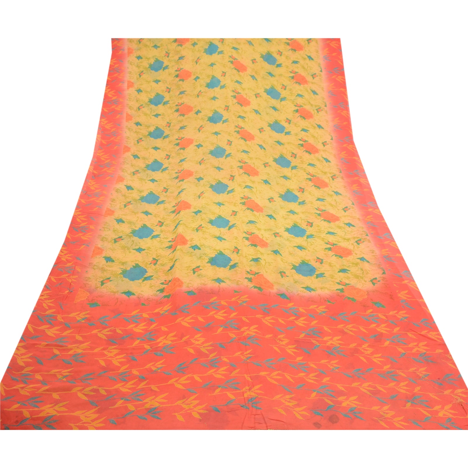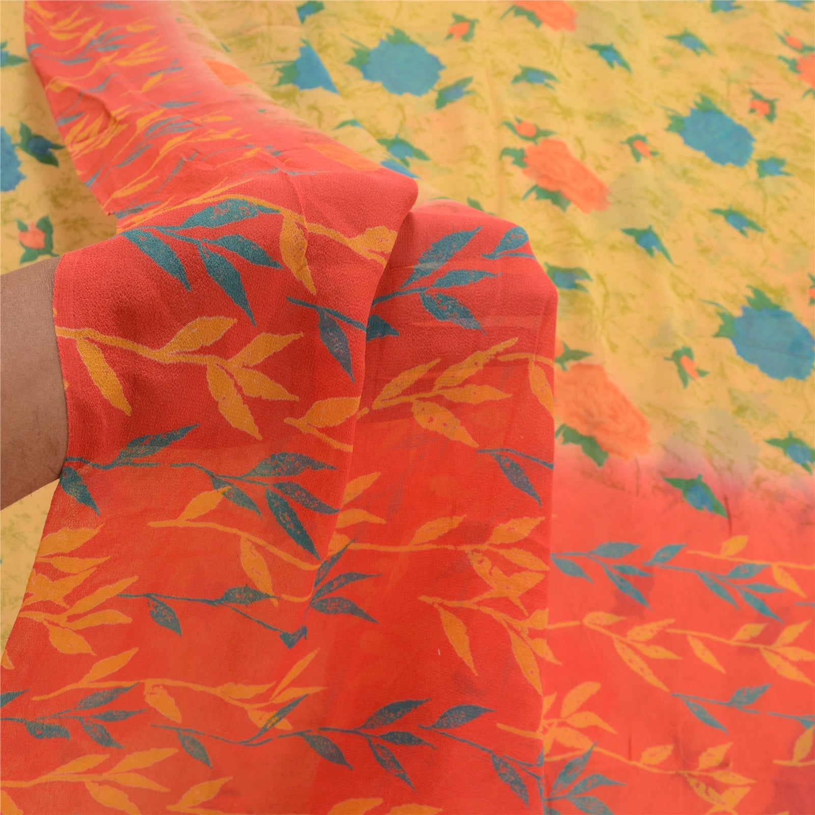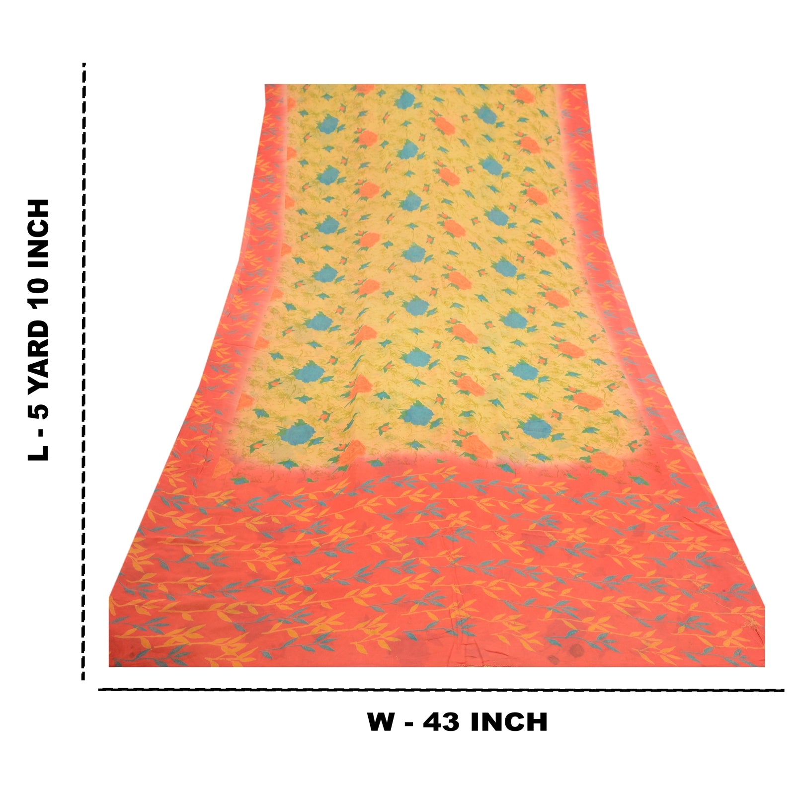Beautiful Shade Of Lemon & Red Colored Saree 100% Pure Georgette Silk Printed Saree. Pallu & Border has printed floral pattern. The center part of sari boasts similar printed floral design. This unique vintage saree can be used for various crafting ideas even if you don't want to use it as a sari. Design a dress, use it as a throw, as window dressing, upholstery, sarongs, table linen and much more. Let your creative juices flow and use this decorated Sustainable Fabric in multiple fashion. For USA buyers - Single item ships via registered air mail, buy 1 more to get FedEx.
