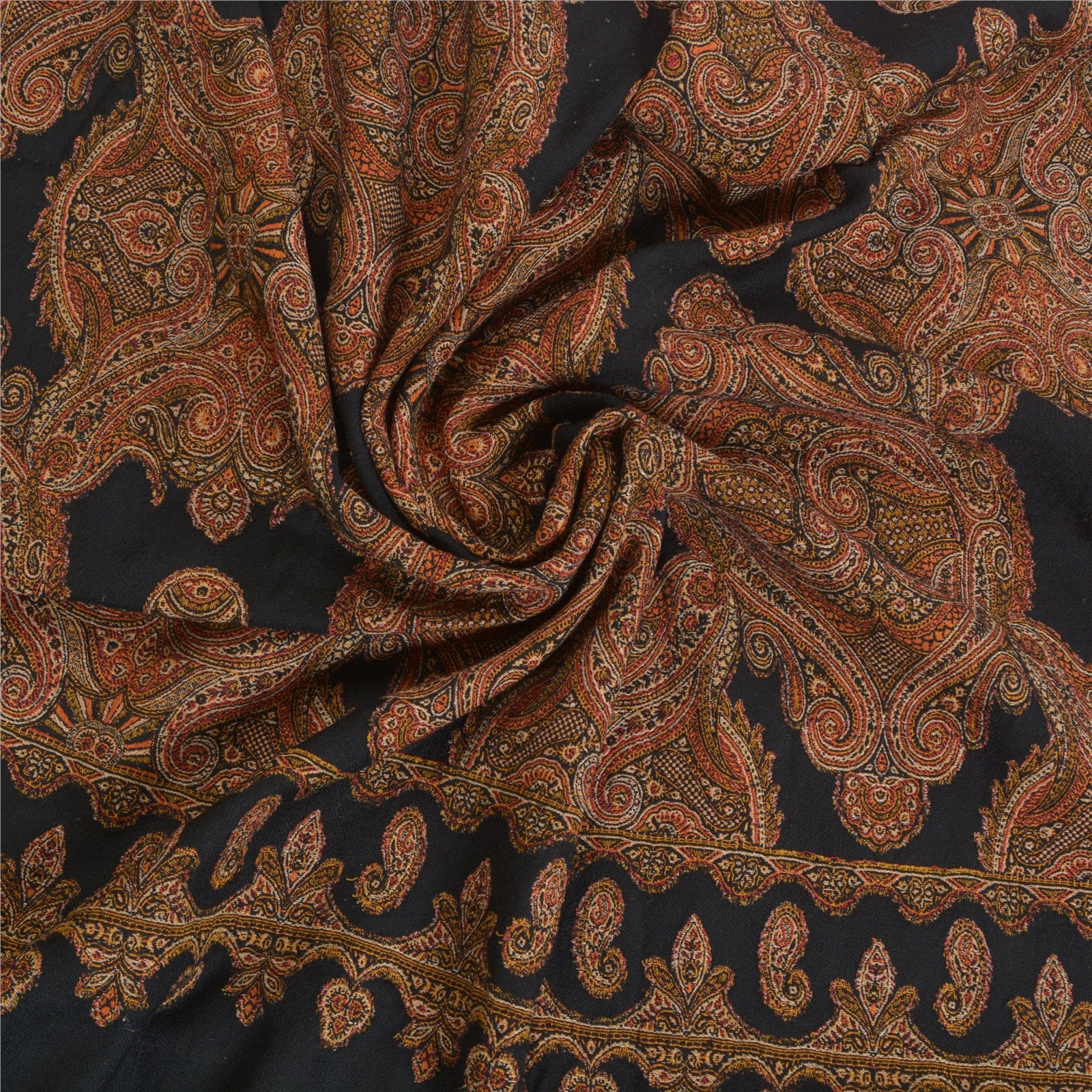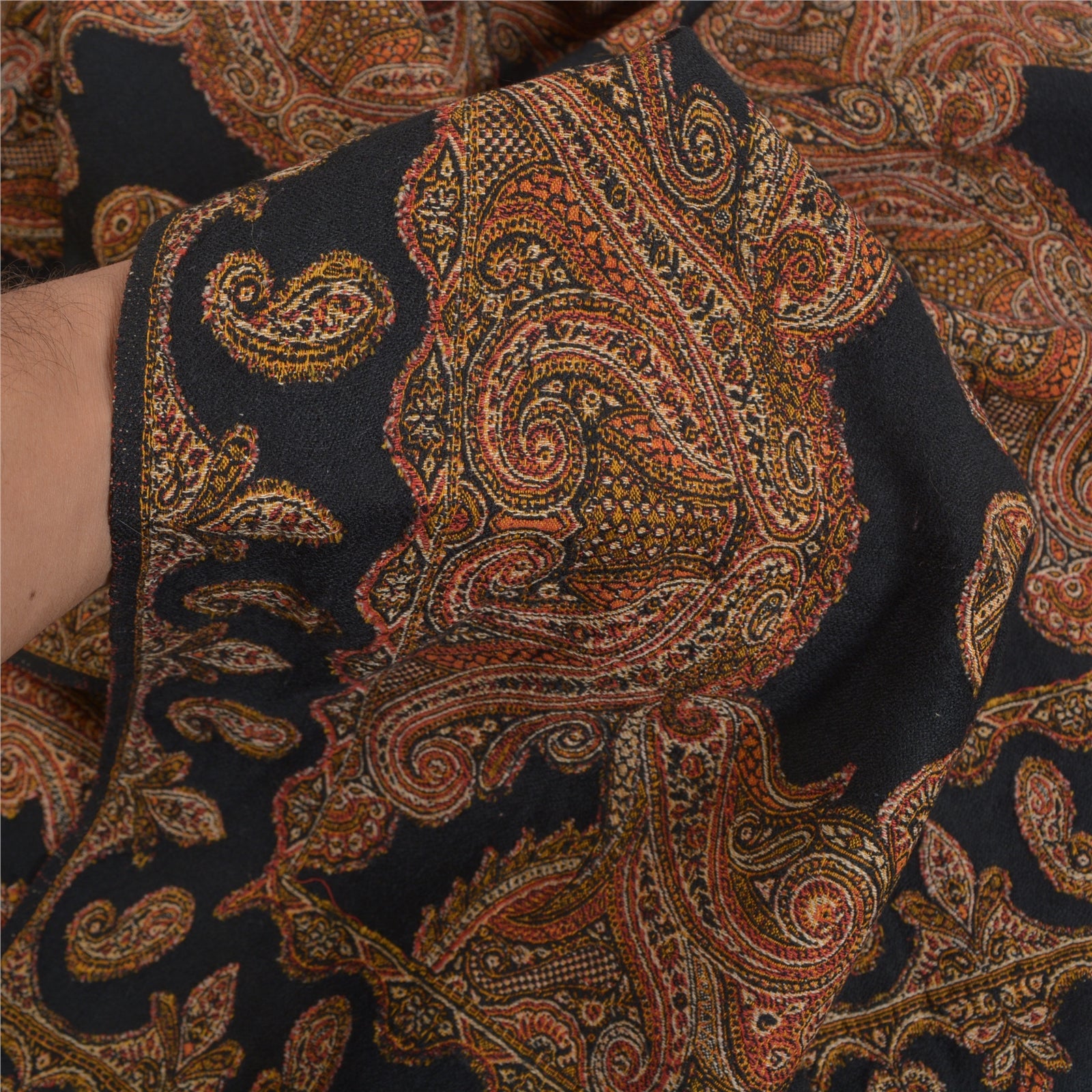 Sanskriti Vintage Long Black Pure Woolen Shawl Woven Scarf Throw Soft Stole