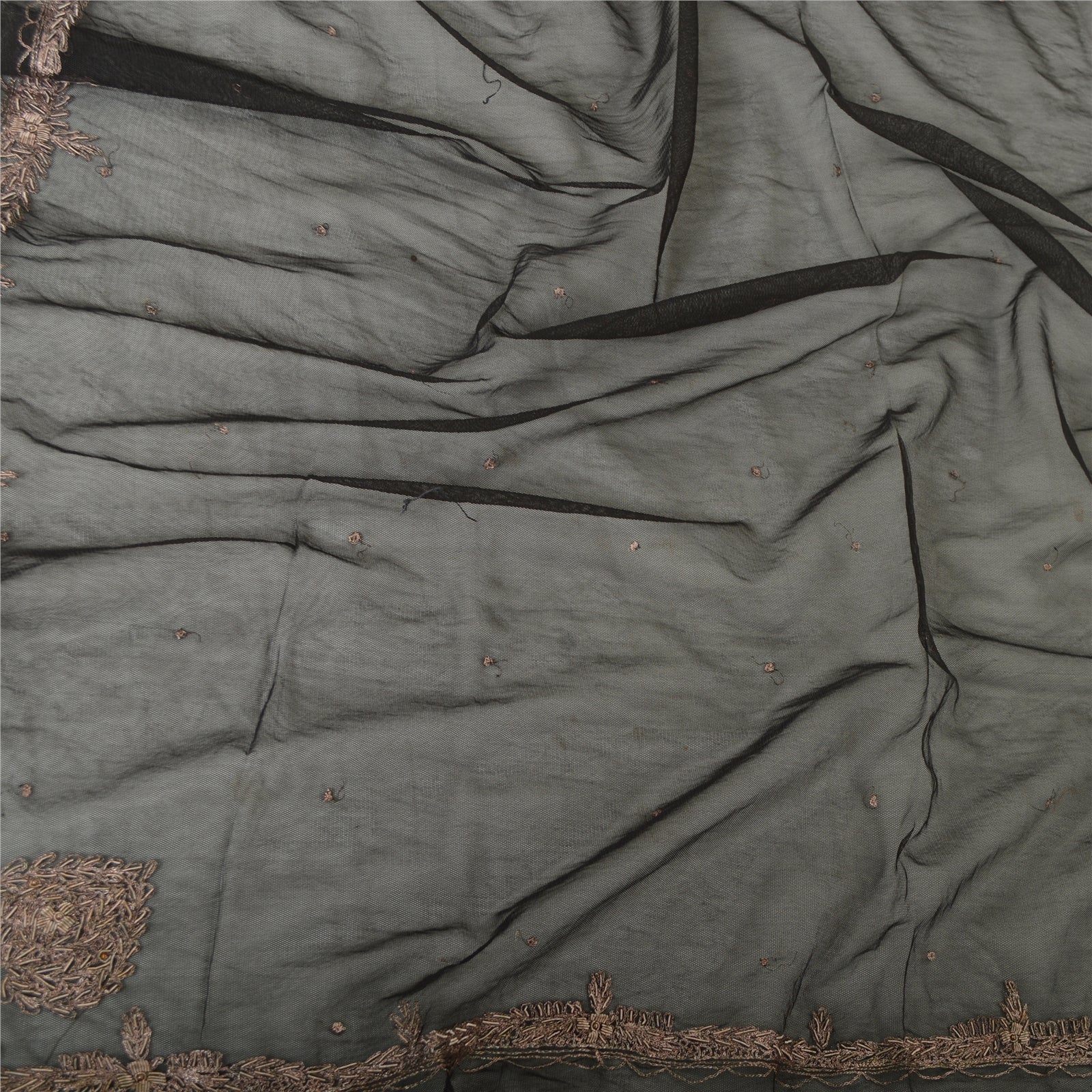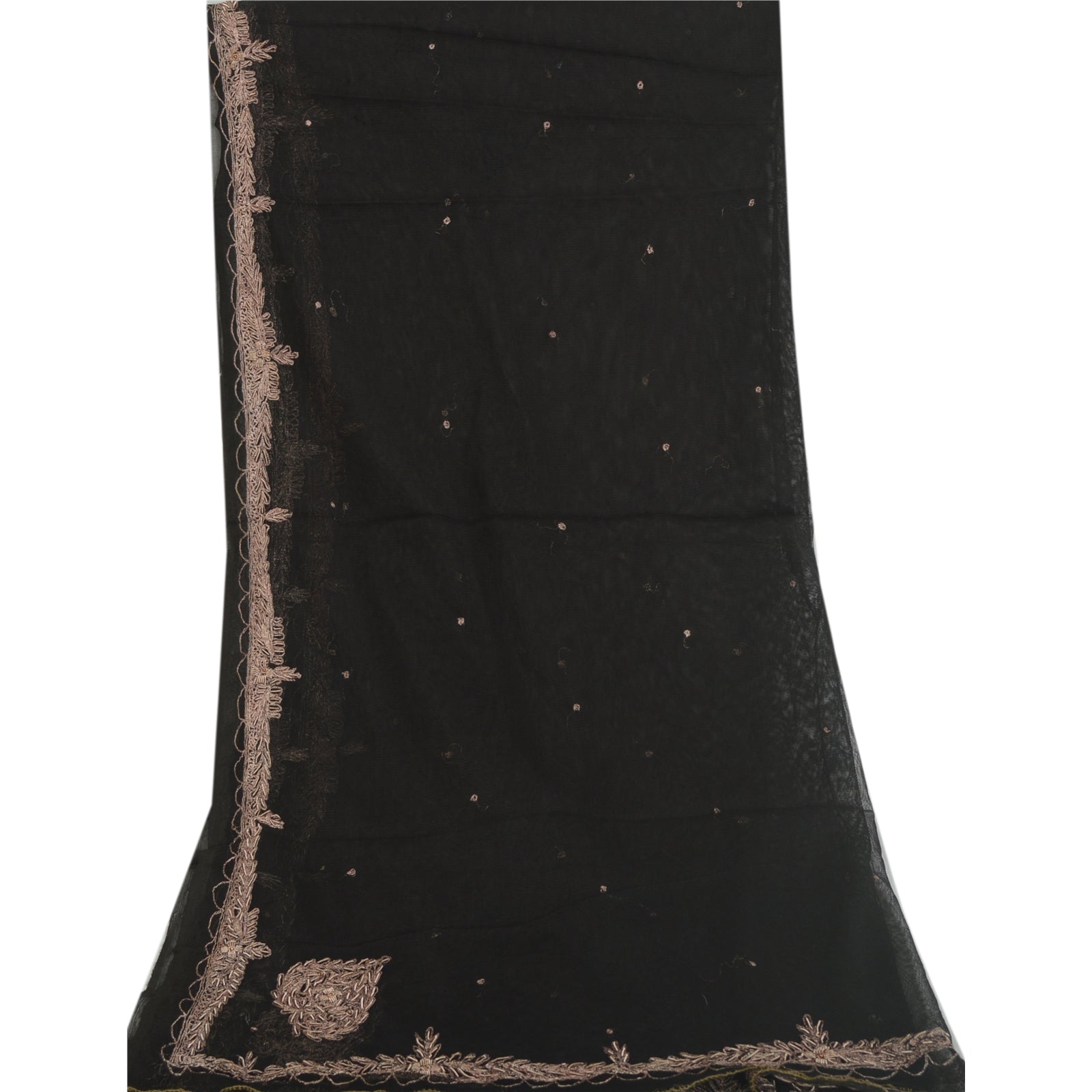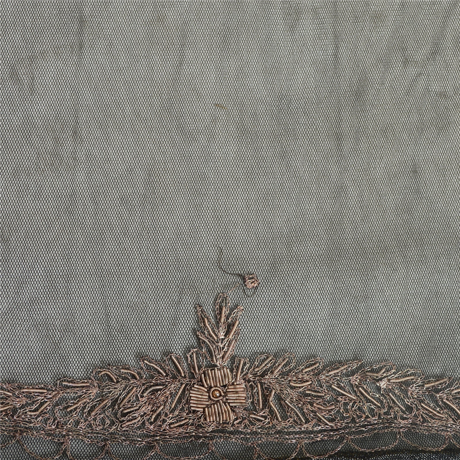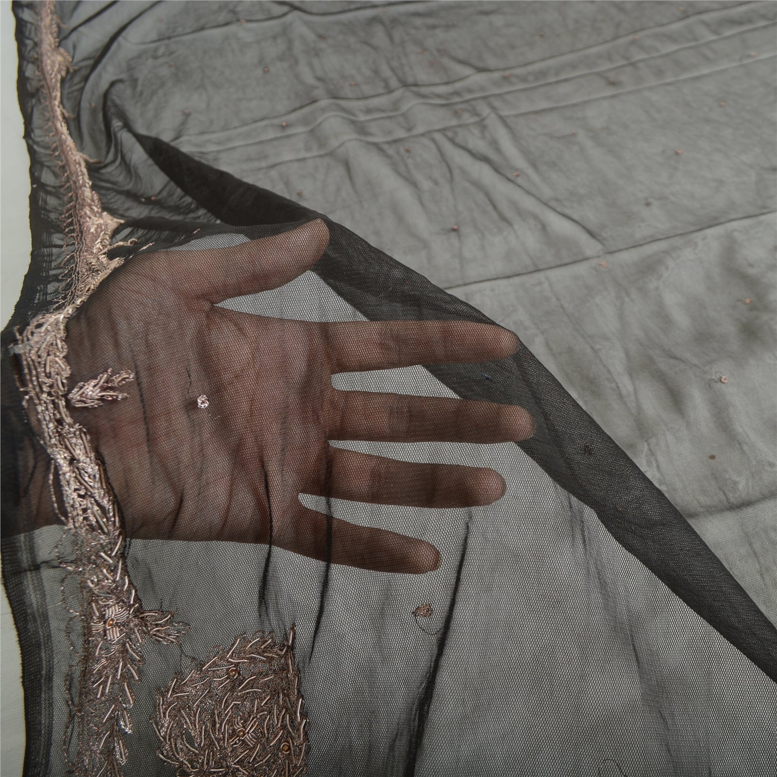 Sanskriti Vintage Long Dupatta Net Mesh Black Hand Beaded Zardozi Stole Veil