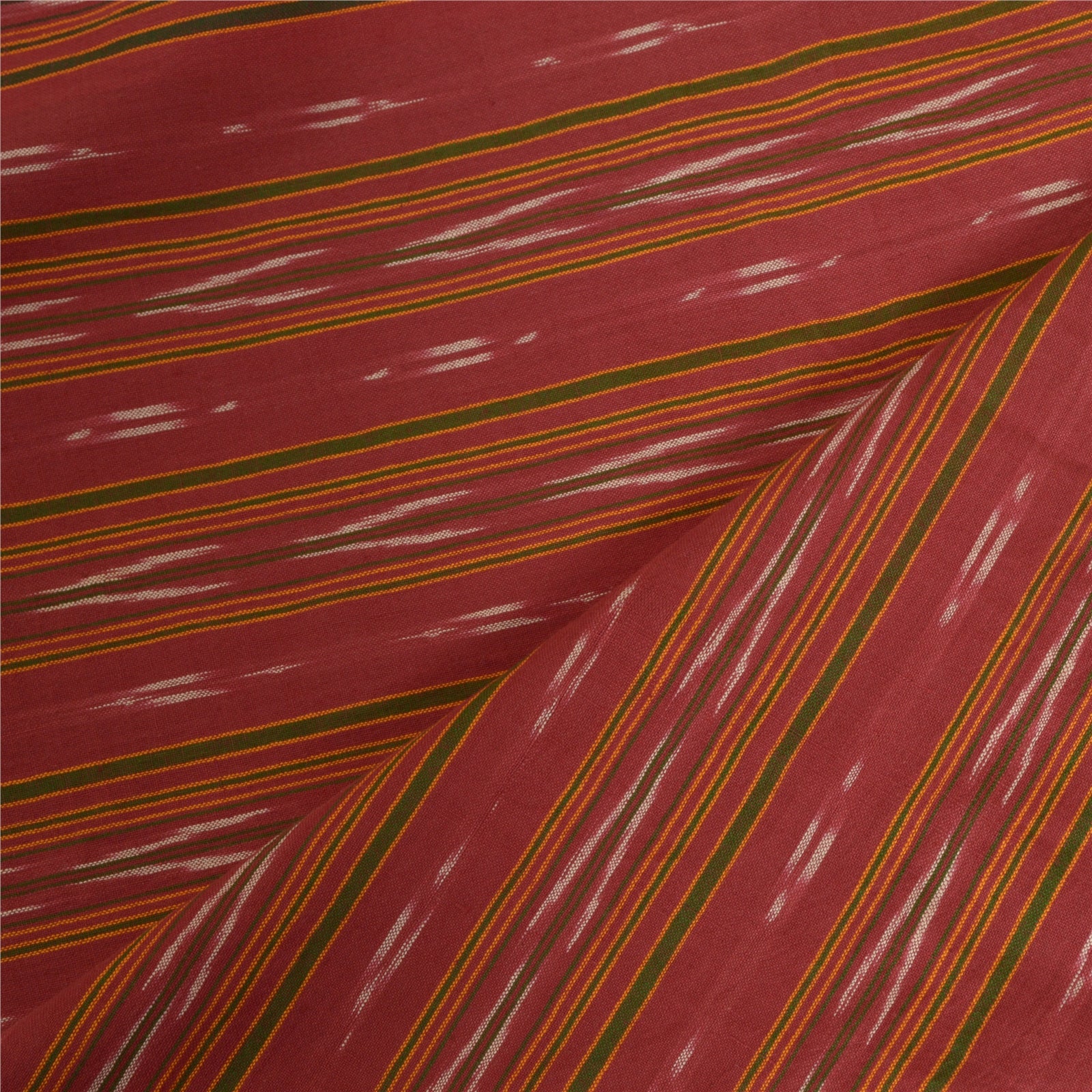 Sanskriti Vintage Long Dupatta Stole Pure Cotton Saffron/Red Woven Ikat Scarves
