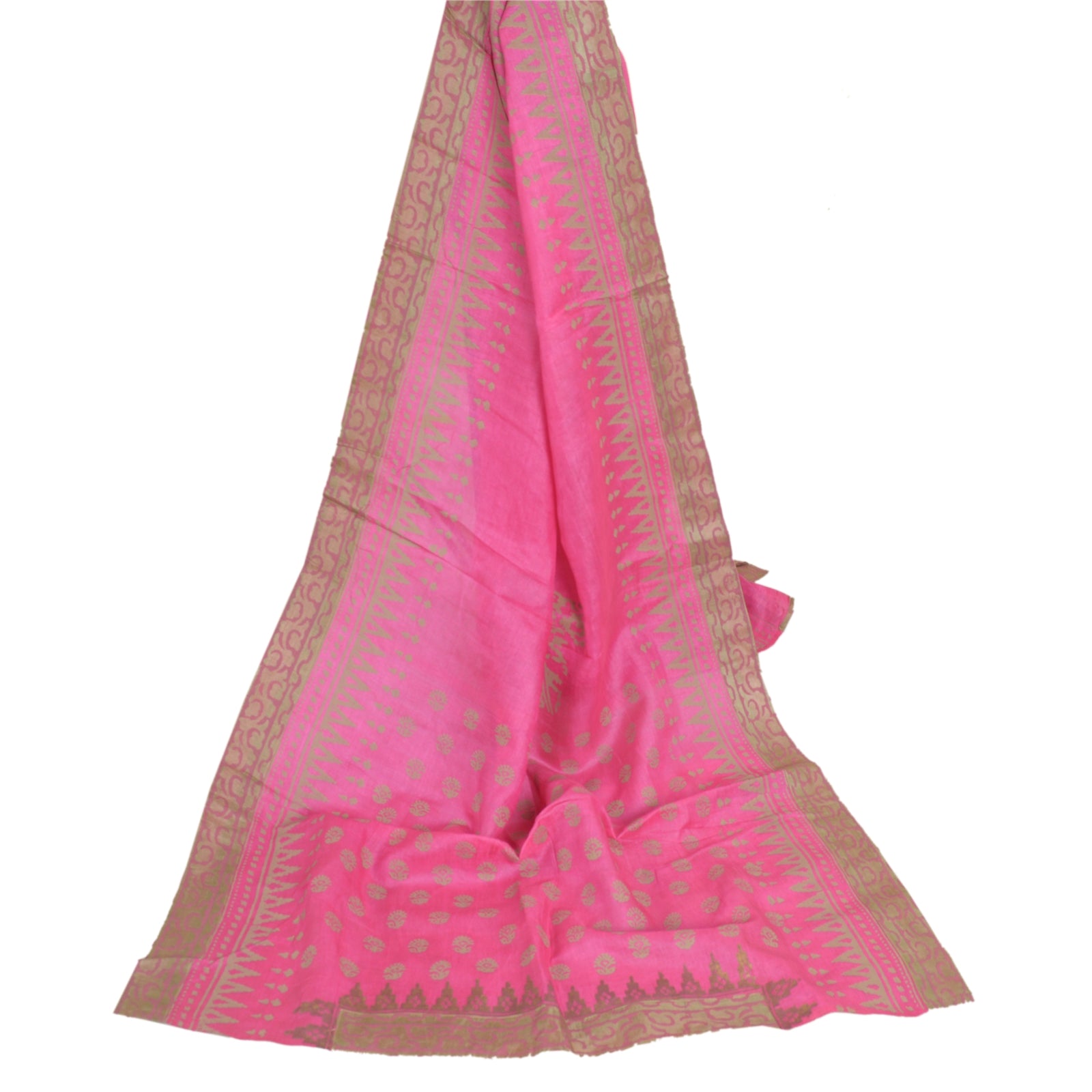Sanskriti Vintage Long Dupatta Stole Pure Silk Hot Pink Hand-Block Printed Veil