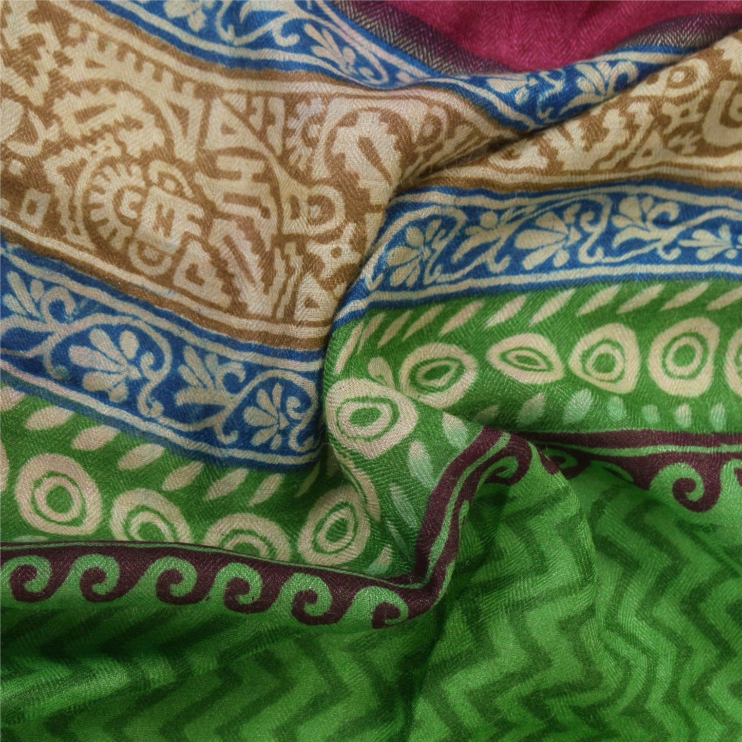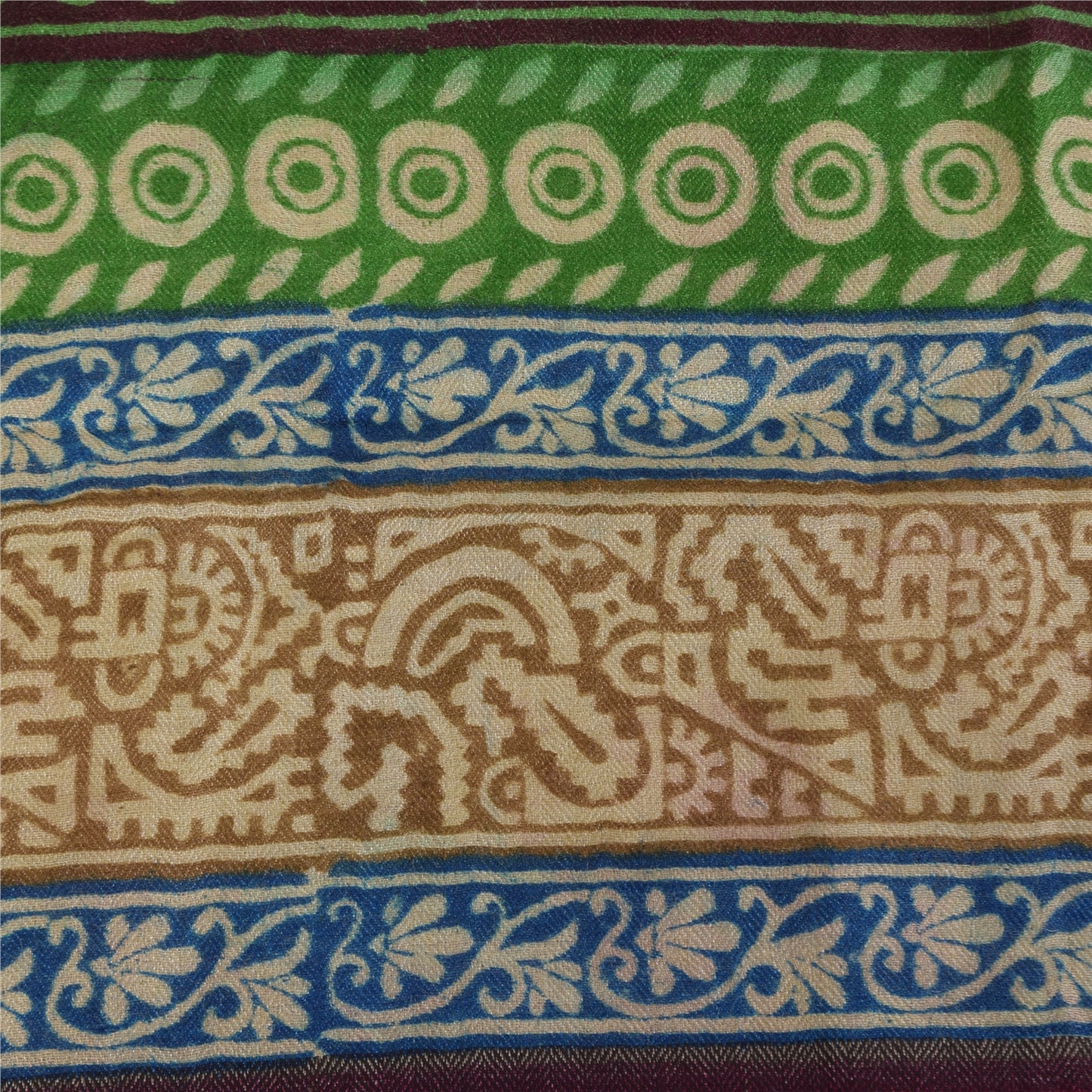 Sanskriti Vintage Long Dupatta/Stole Pure Woolen Green Block Printed Scarf Veil