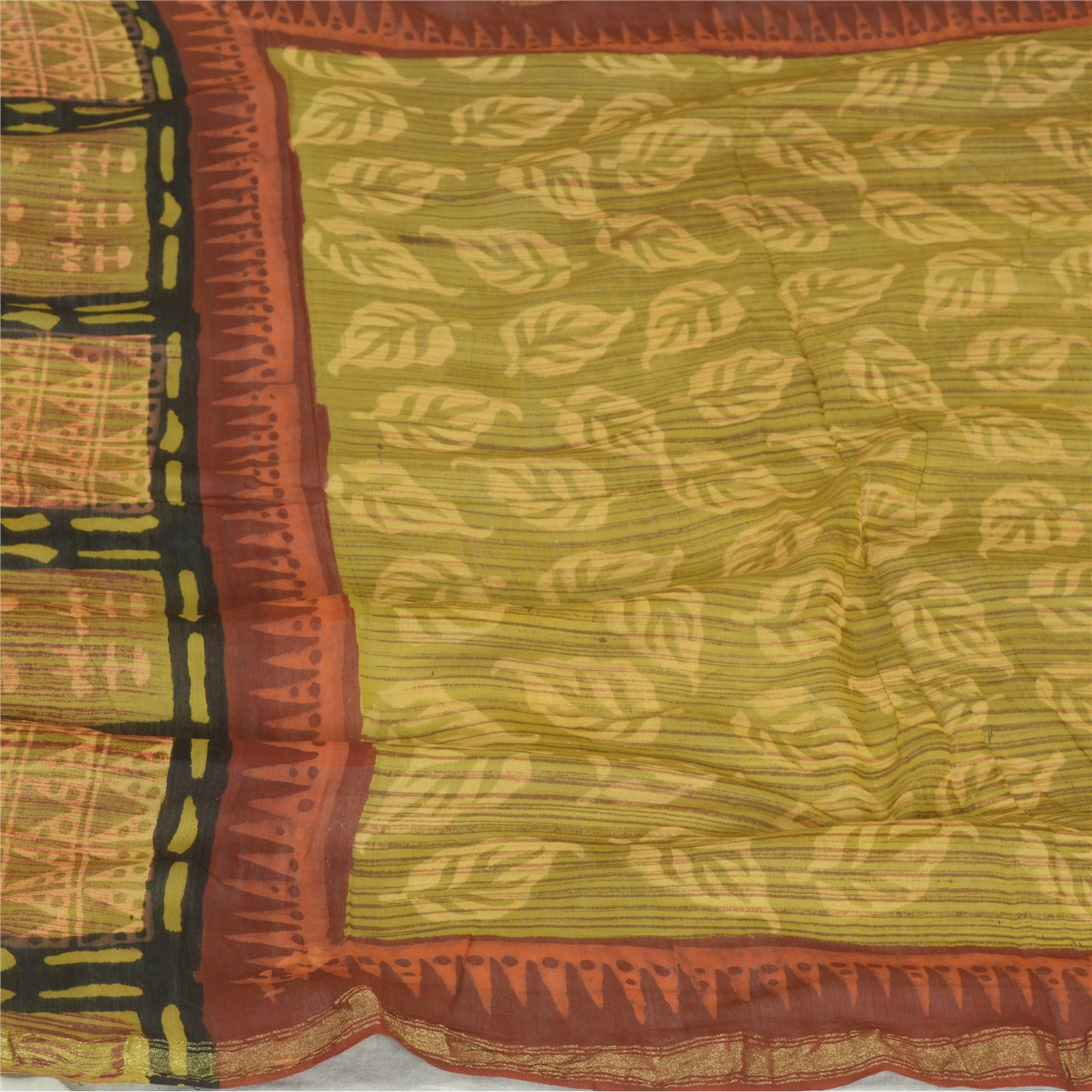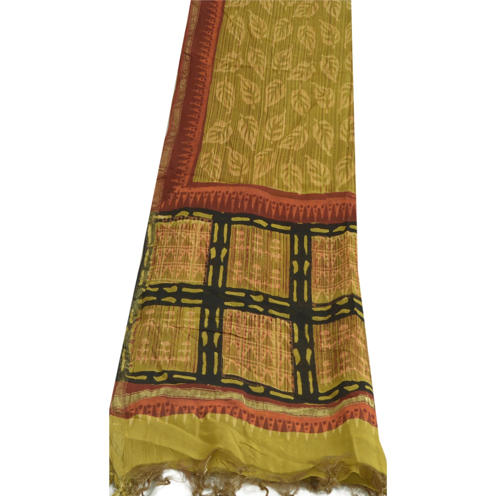 Sanskriti Vintage Long Green Dupatta/Stole Cotton Silk Hijab Printed Scarves