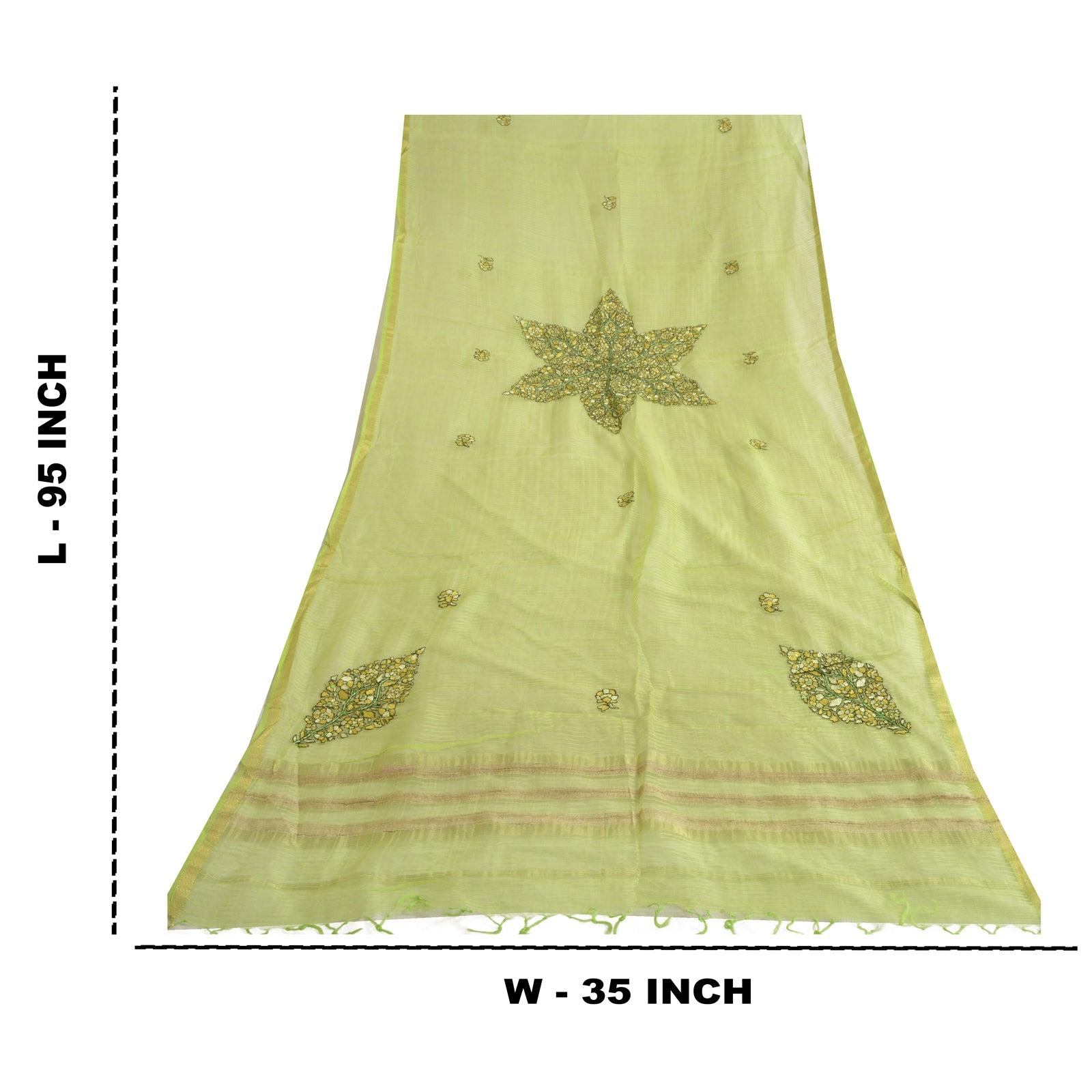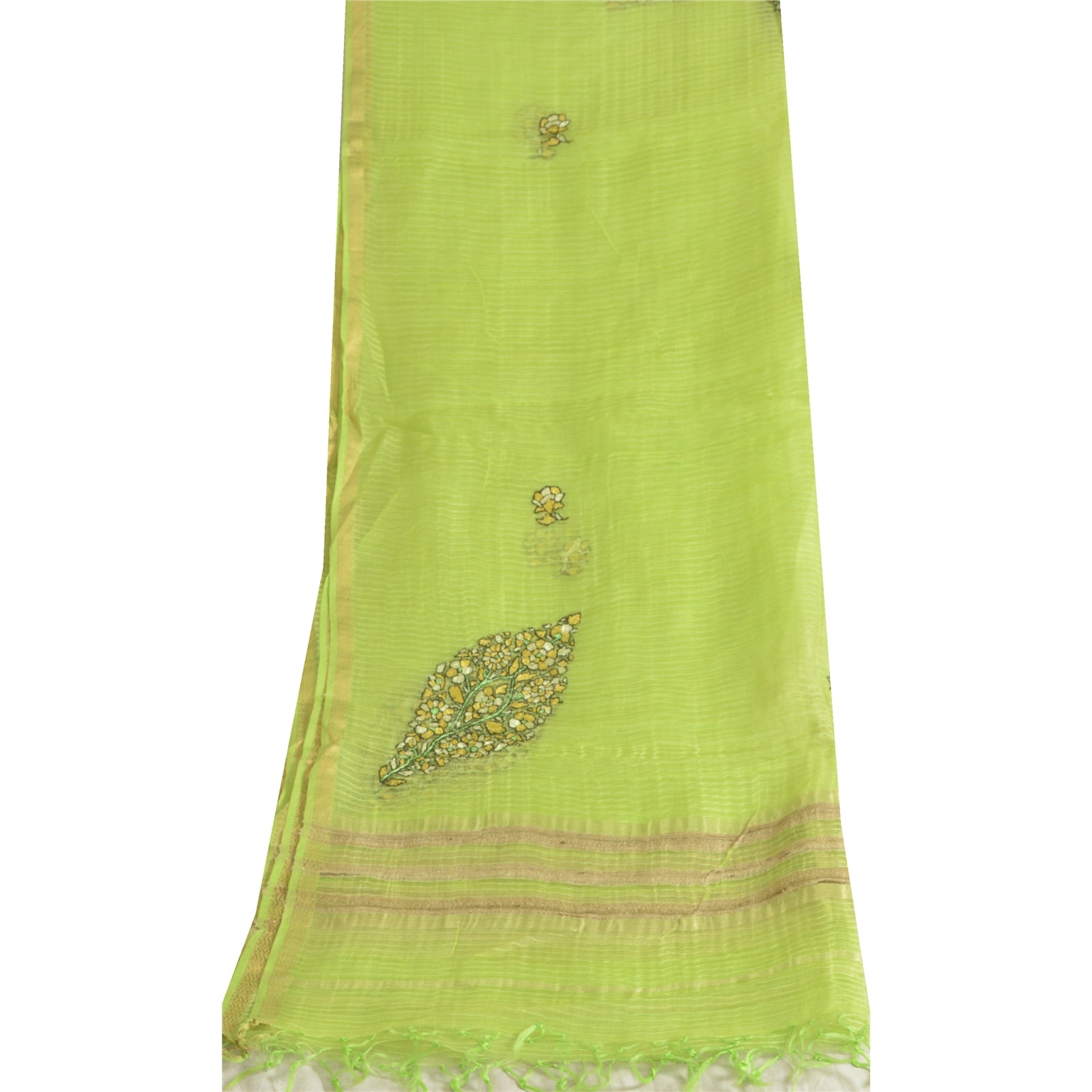'THE ITEM COLOR OR SHADE MAY BE DARKER OR LIGHTER THAN THE PICTURE.' Beautiful green colored pure chnaderi silk hand embroidered Kantha dupatta/stole. Center portion of the dupatta embroidered traditional Kantha running stitched thread work with floral design. Border has woven thread & golden zari work is really enhancing beauty of the dupatta/stole. This dupatta/stole can be used for various crafting ideas too. Use it for dress designing, as a throw, as window dressing, upholstery, table linen and much more. Let your creative juices flow. International buyers please note: Import duties, taxes, and charges are not included in the item price or postage cost. These charges are the buyer's responsibility. Please check with your country's customs office to determine what these additional costs will be prior to bidding or buying. Buyer will pay custom duty/tax. It is calculated and charged differently by every country. As a seller I do not have any control over it. VAT or sales tax is calculated by the platform at the time of checkout. Customs charge is payable at the time of delivery.'