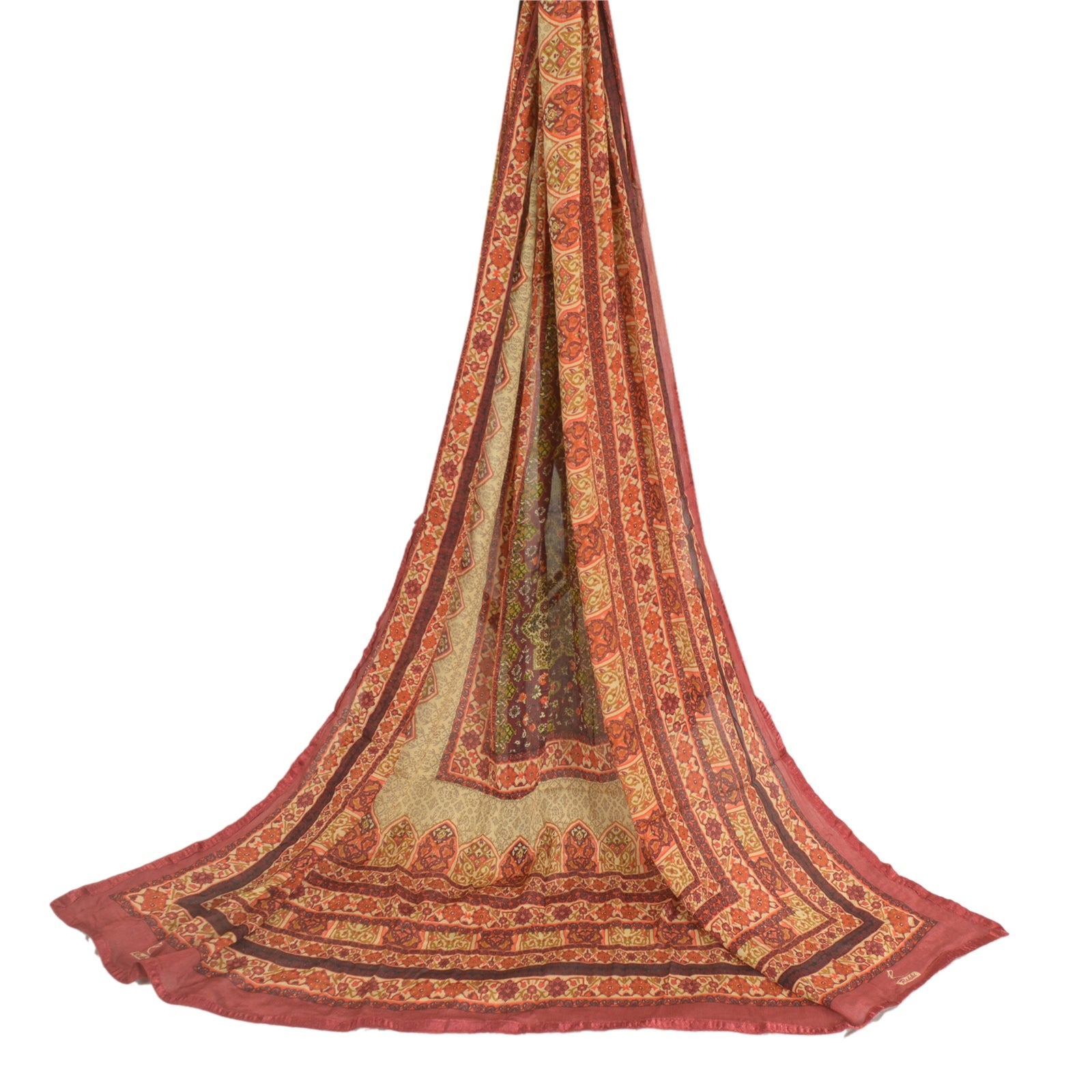 Sanskriti Vintage Long Red Dupatta/Stole Pure Georgette Silk Digital Print Veil