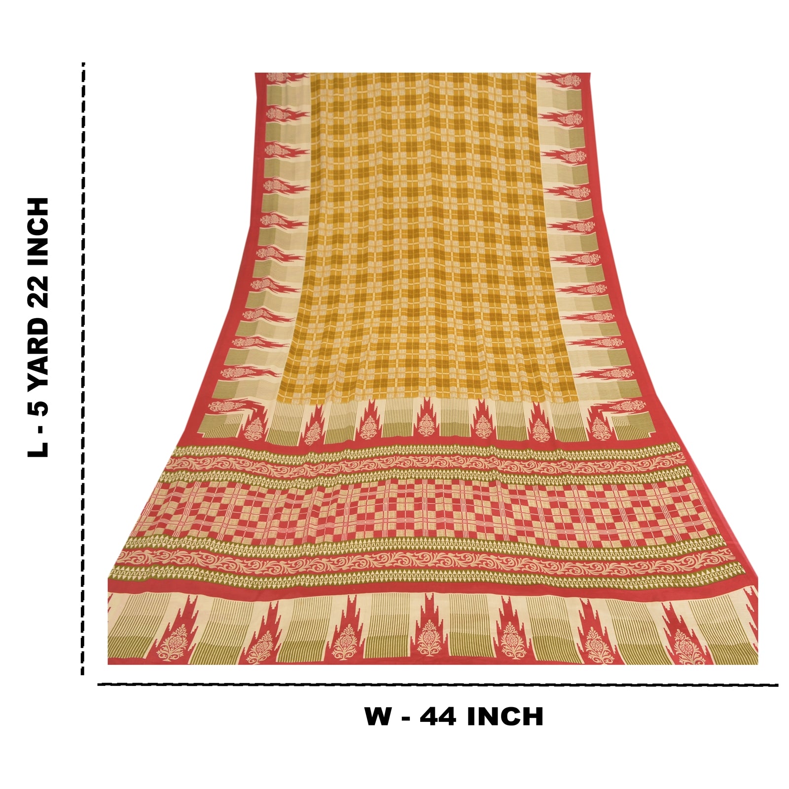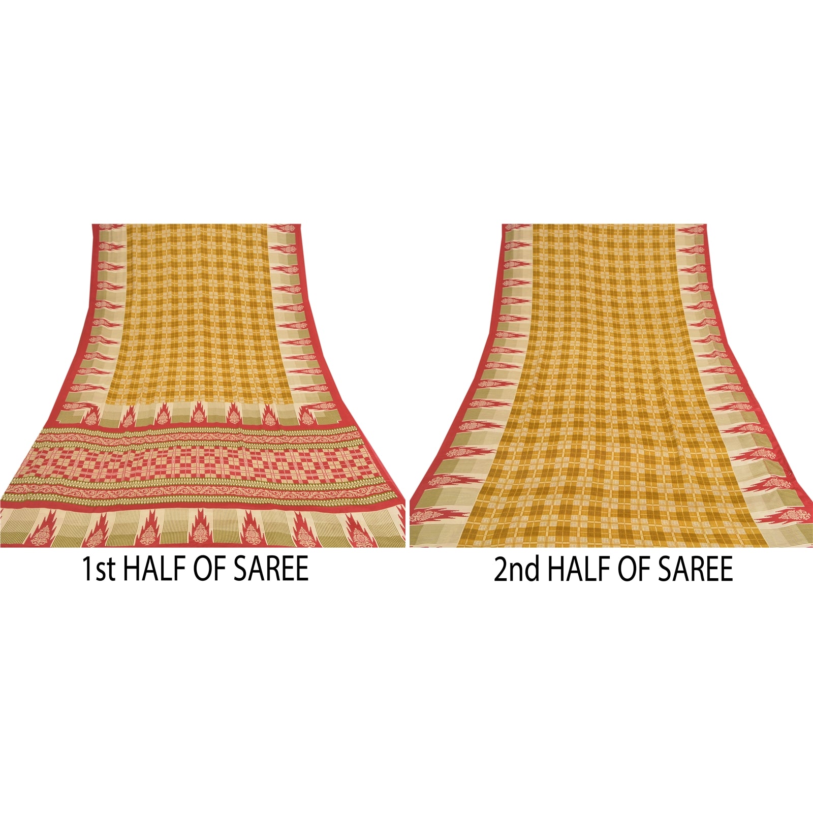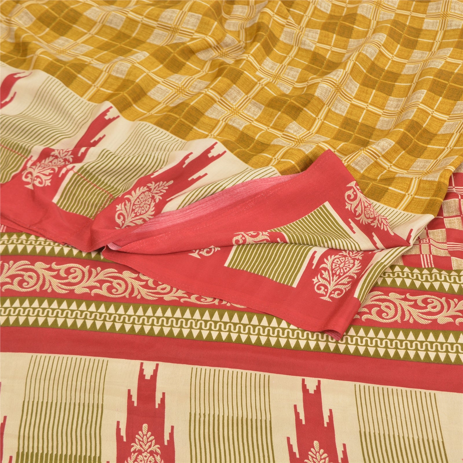 Sanskriti Vintage Mustard Green Sarees Moss Crepe Printed Sari 5YD Craft Sustainable Fabric
