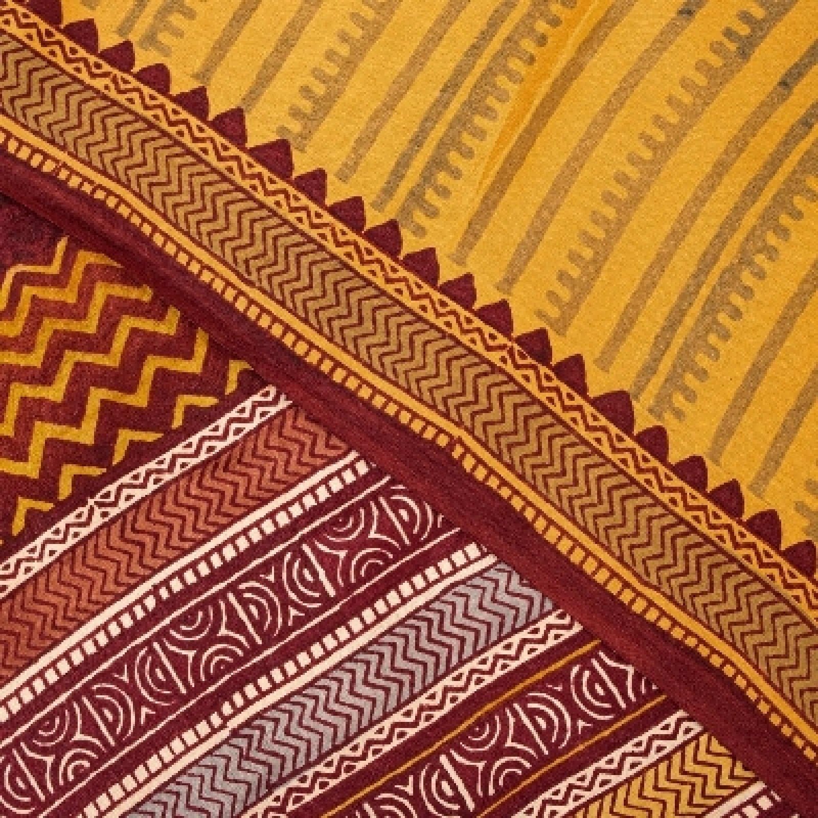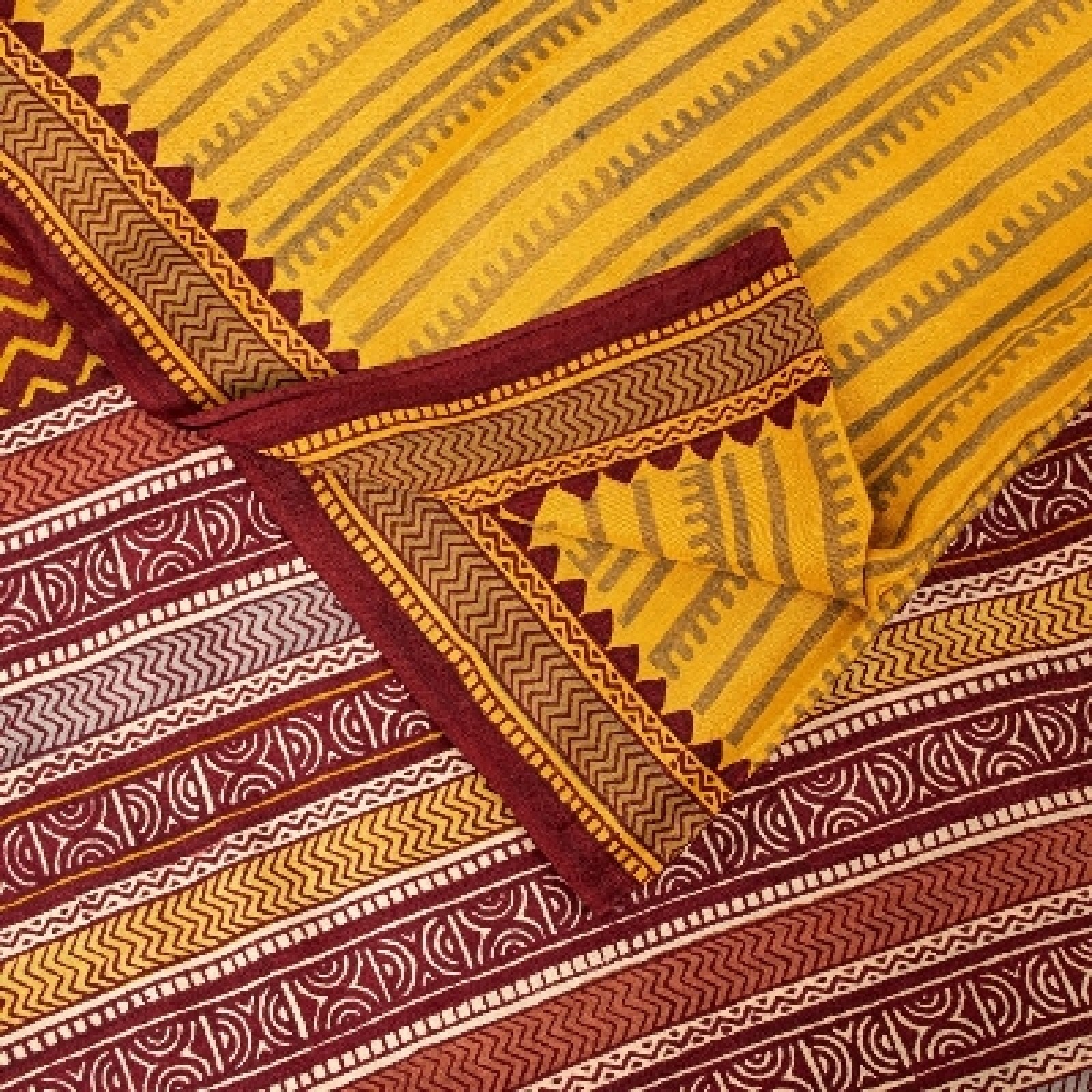 Sanskriti Vintage Mustard Sarees 100% Pure Crepe Silk Printed Sari Craft Sustainable Fabric