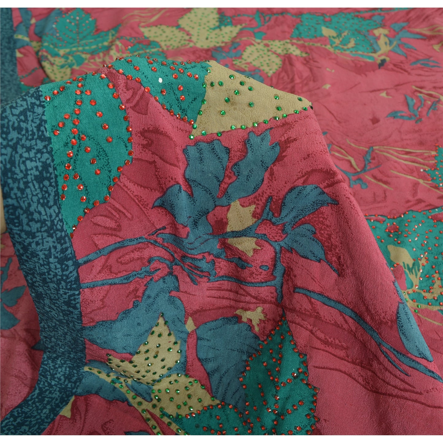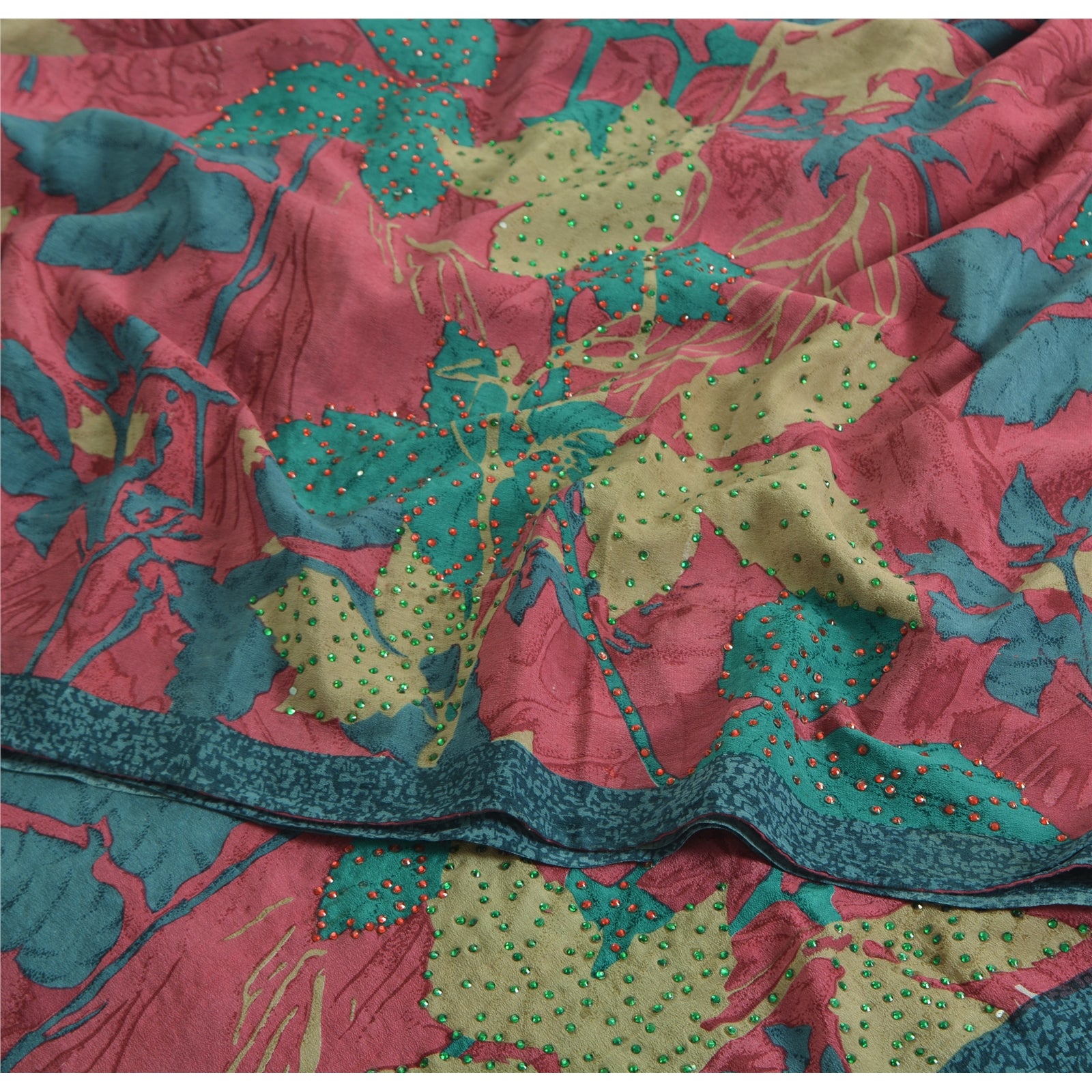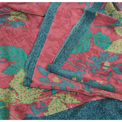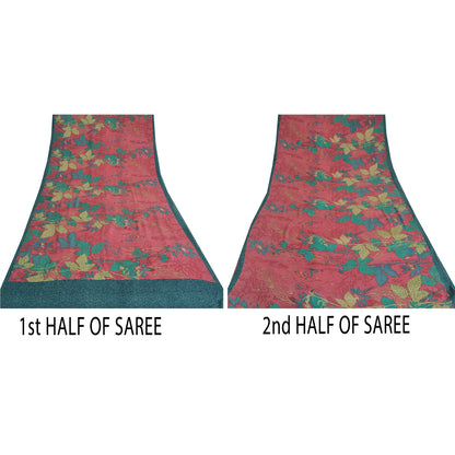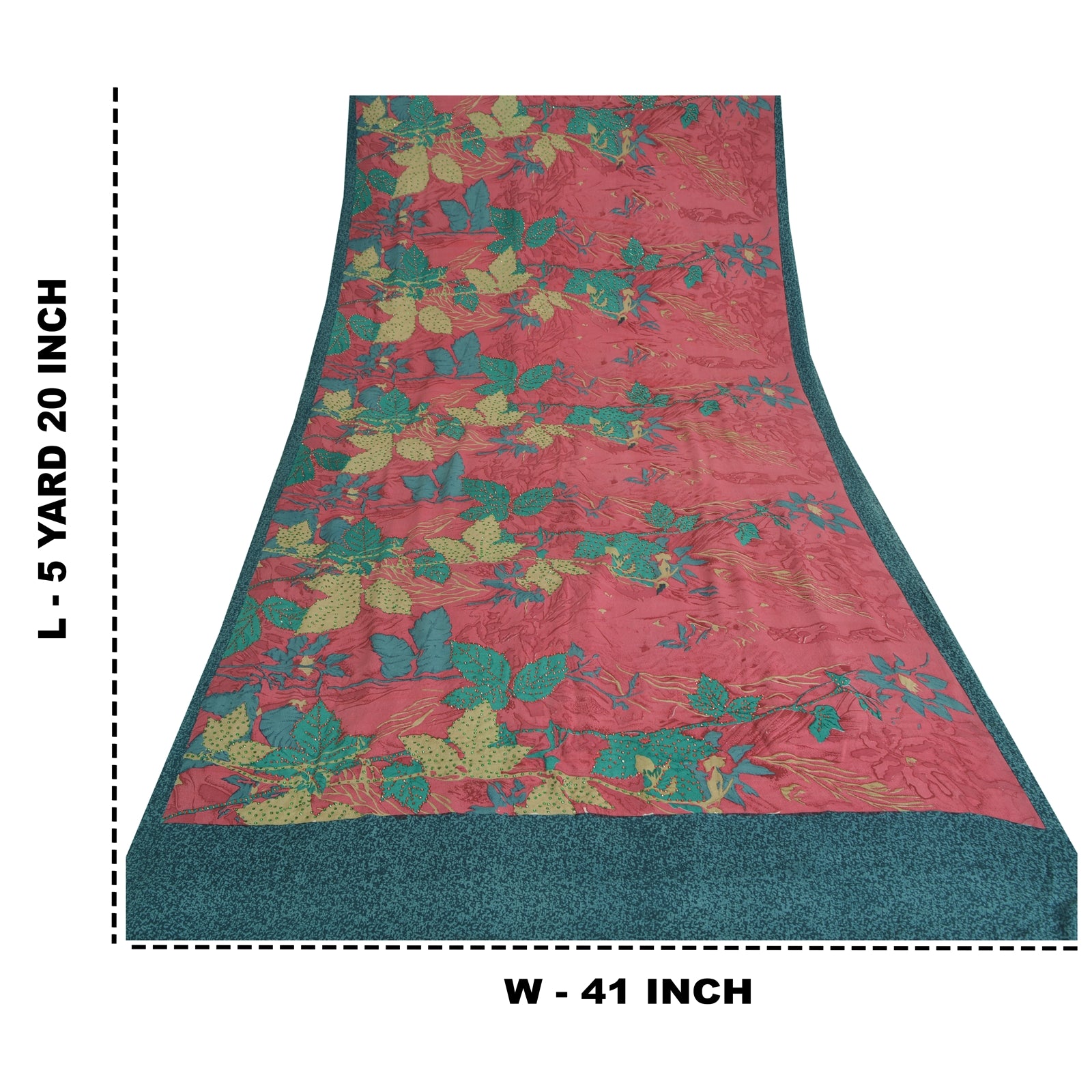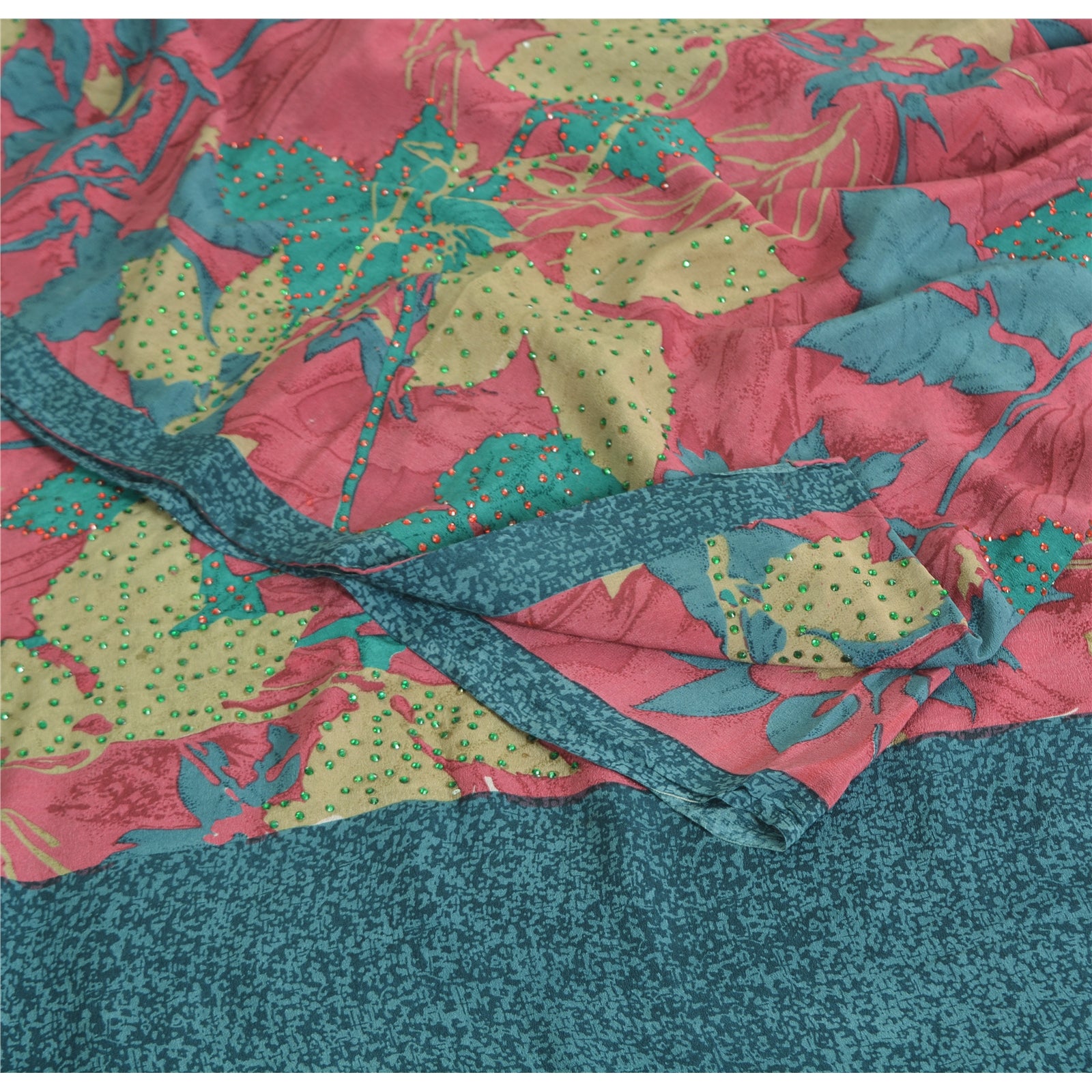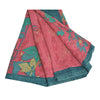 Sanskriti Vintage Pink/Blue Sarees Pure Crepe Silk Printed Sari Craft Sustainable Fabric