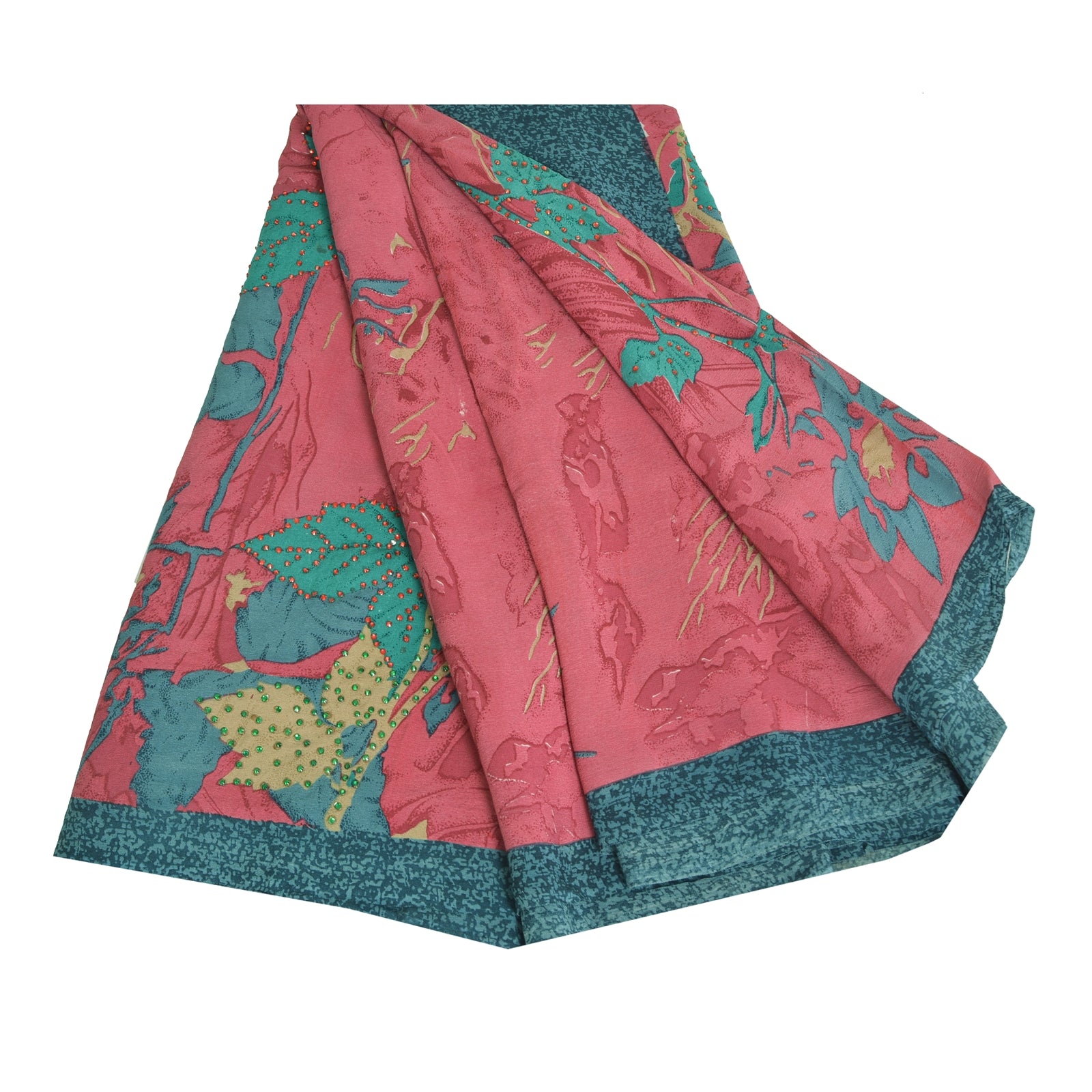 'THE ITEM COLOR OR SHADE MAY BE DARKER OR LIGHTER THAN THE PICTURE.' Beautiful Pink & Blue Colored 100% Pure Crepe Silk Printed Sari/Sustainable Fabric. Pallu & Border features printed floral pattern. You can see similar printed floral design with rhinestones work in center portion of saree. This item can be used for various crafting ideas too. Use it for dress designing, as a throw, as window dressing, upholstery, table linen and much more. Let your creative juices flow. International buyers please note: Import duties, taxes, and charges are not included in the item price or postage cost. These charges are the buyer's responsibility. Please check with your country's customs office to determine what these additional costs will be prior to bidding or buying. Buyer will pay custom duty/tax. It is calculated and charged differently by every country. As a seller I do not have any control over it. VAT or sales tax is calculated by the platform at the time of checkout. Customs charge is payable at the time of delivery.