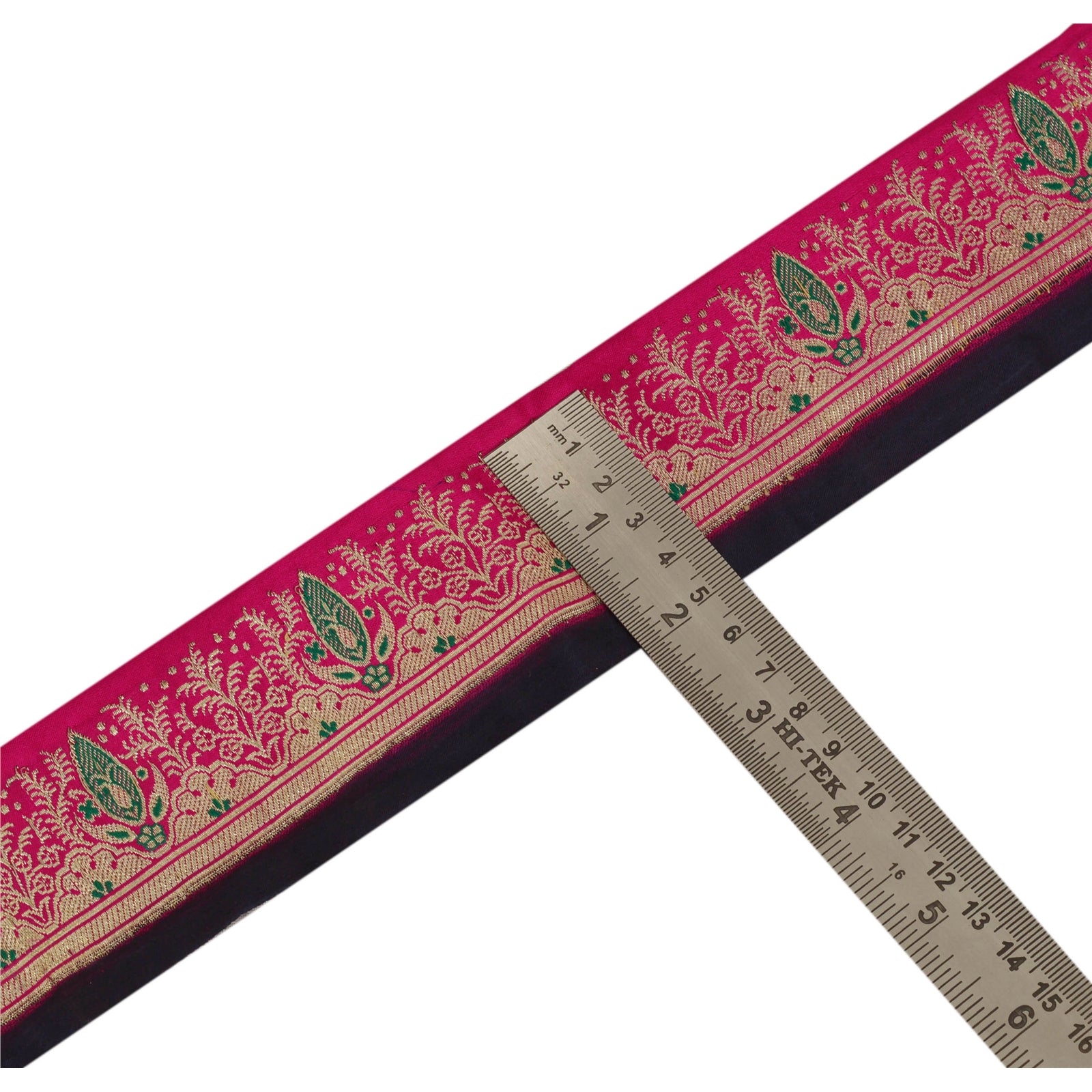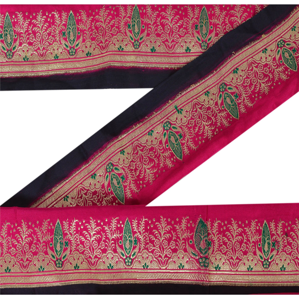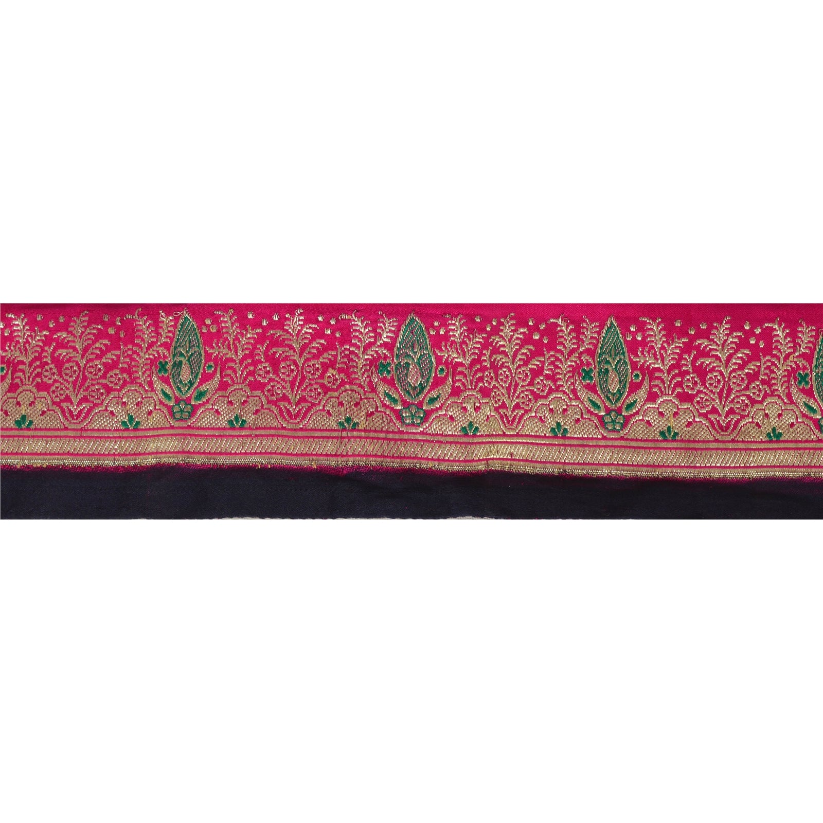 Sanskriti Vintage Pink Sari Border Woven Brocade 1 Yd Craft Trim Sewing Lace