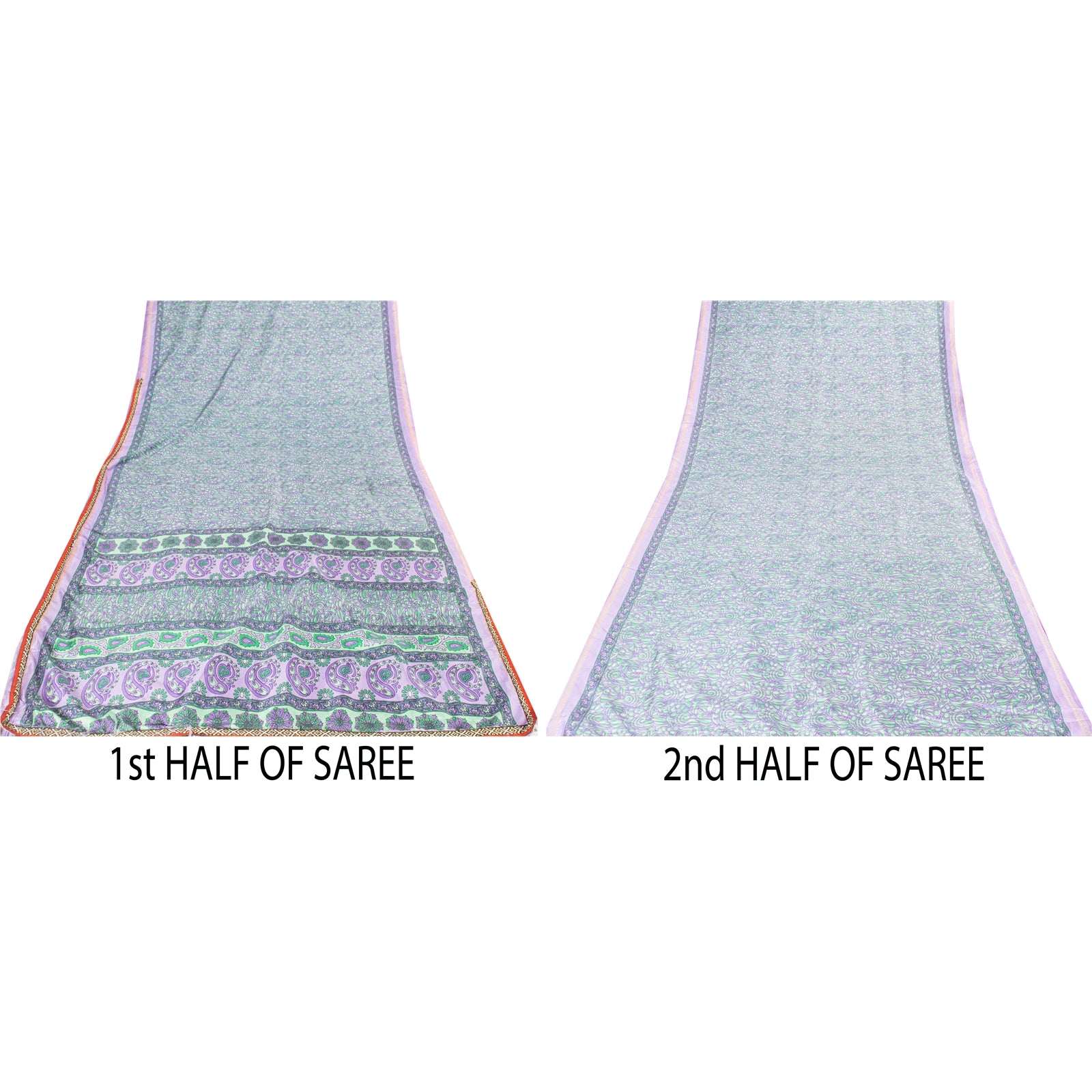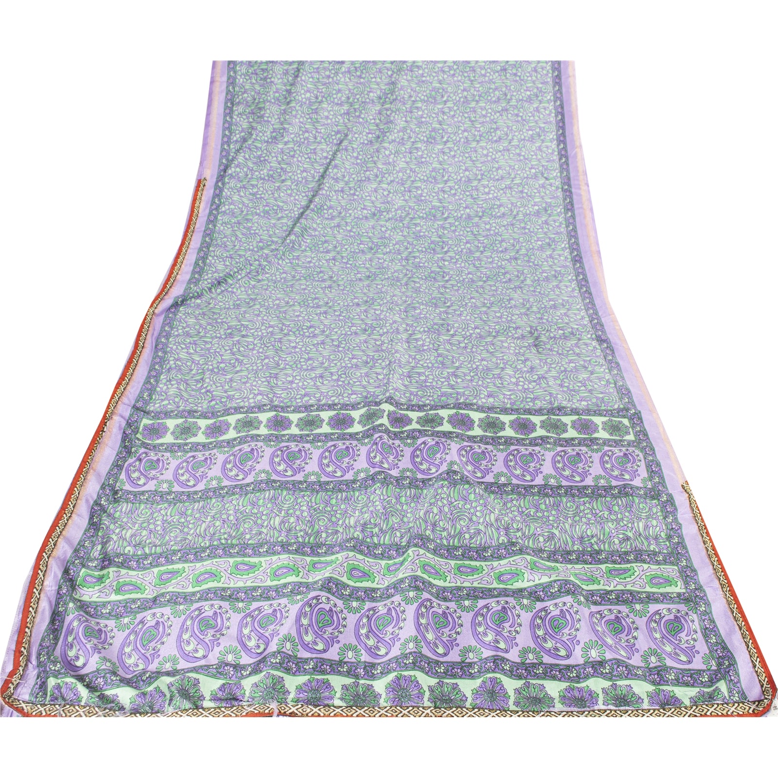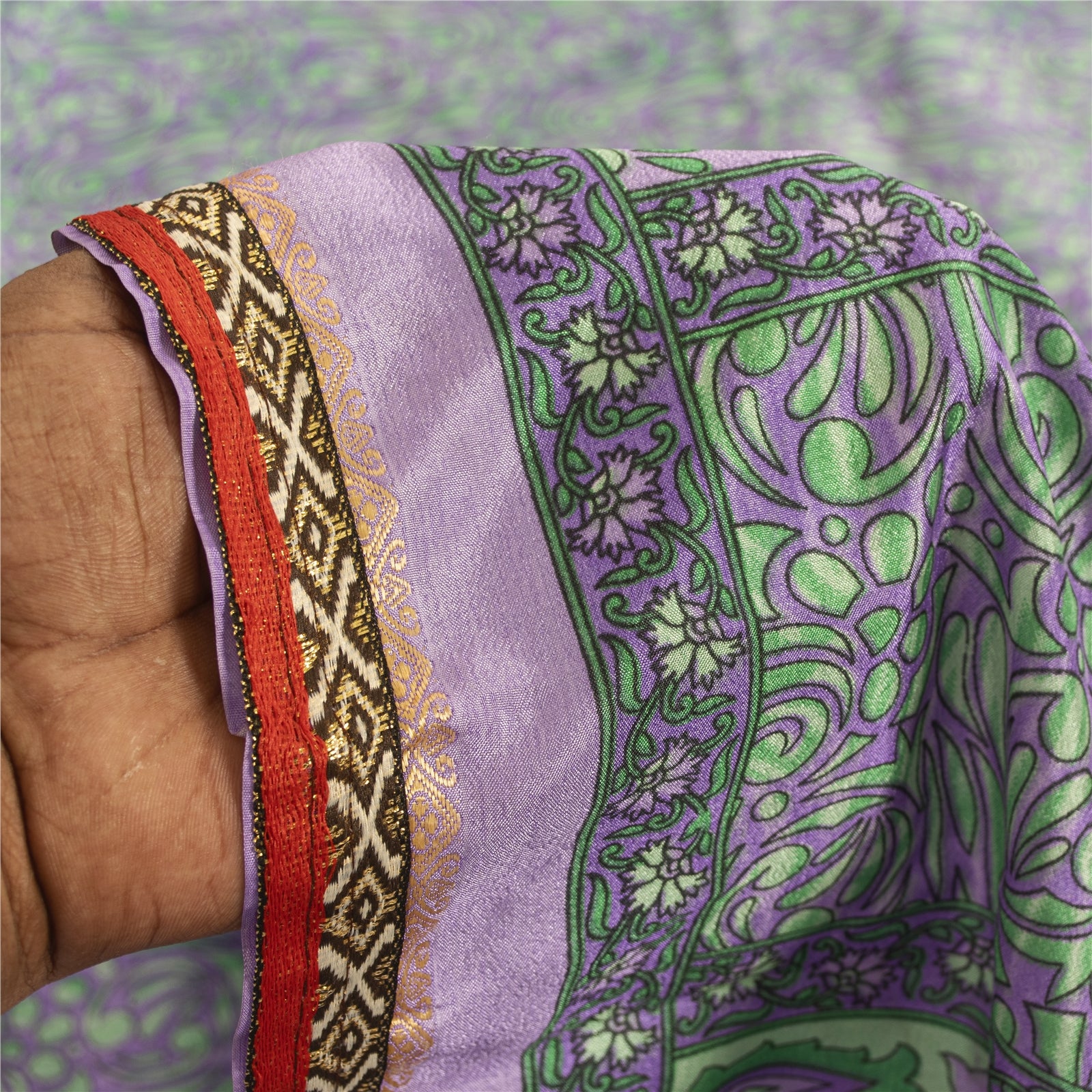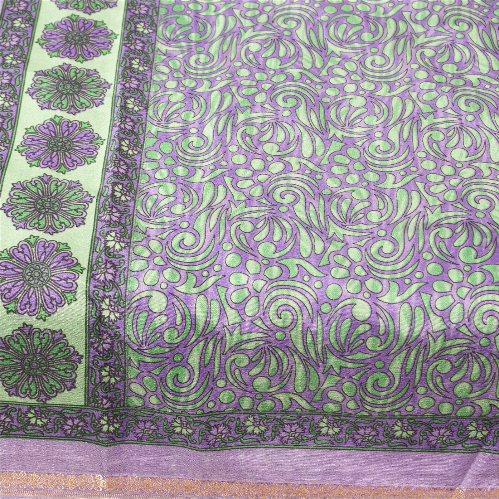 Sanskriti Vintage Purple & Green Sarees Art Silk Printed Sari 5 Yd Craft Fabric