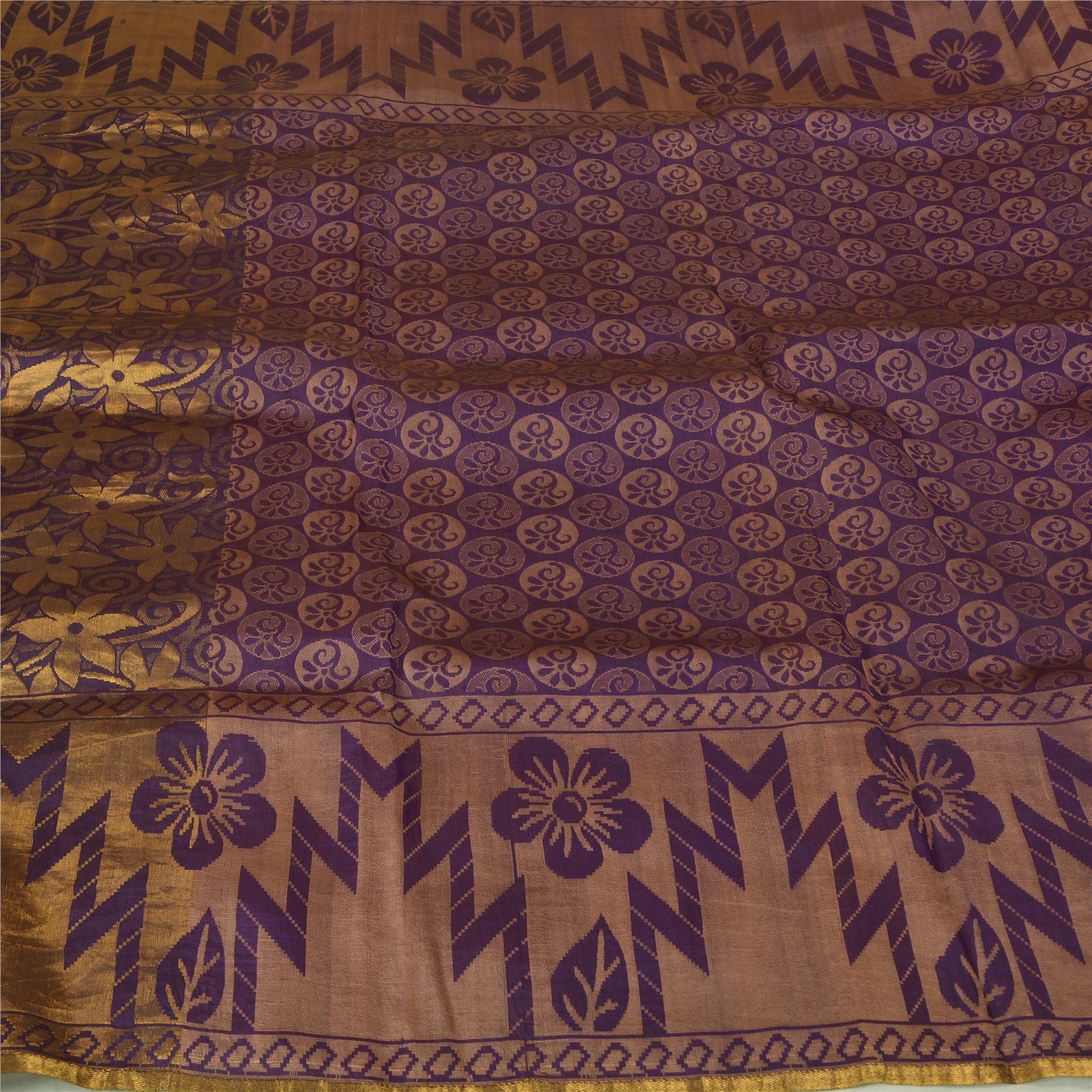 'THE ITEM COLOR OR SHADE MAY BE DARKER OR LIGHTER THAN THE PICTURE.' Outstanding purple colored pure silk woven saree. Pallu & border sari has shinning golden zari woven work with floral design. The center part of the sari has brown woven work with floral design. This saree can be used for various crafting ideas too. Use it for dress designing, as a throw, as window dressing, upholstery, table linen and much more. Let your creative juices flow! 'International buyers please note: Import duties, taxes, and charges are not included in the item price or postage cost. These charges are the buyer's responsibility. Please check with your country's customs office to determine what these additional costs will be prior to bidding or buying. Buyer will pay custom duty/tax. It is calculated and charged differently by every country. As a seller I do not have any control over it. VAT or sales tax is calculated by the platform at the time of checkout. Customs charge is payable at the time of delivery.