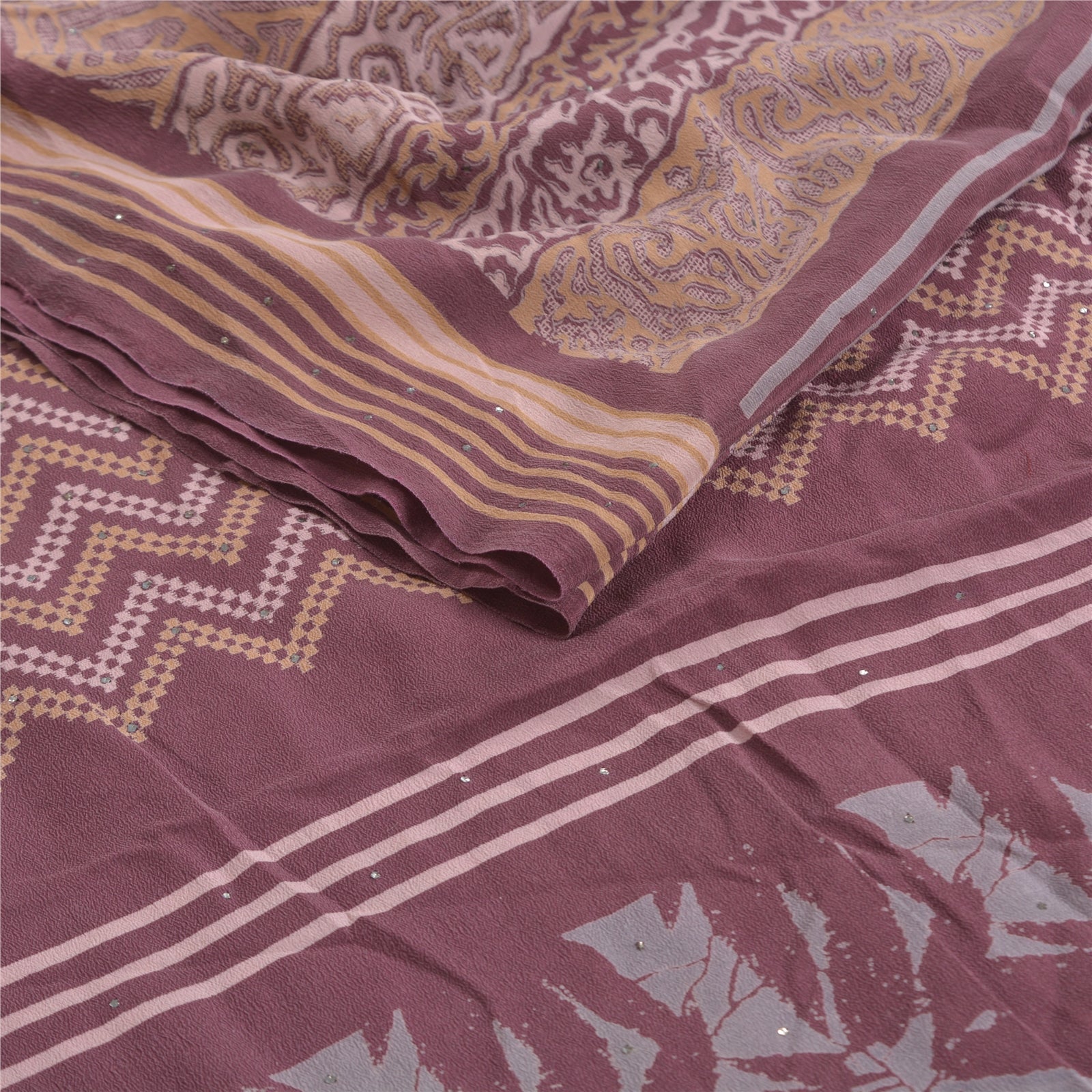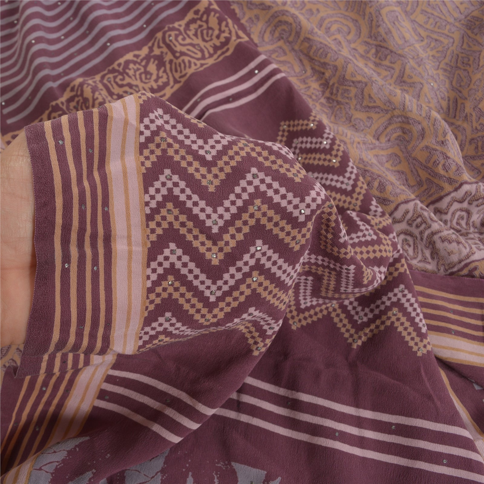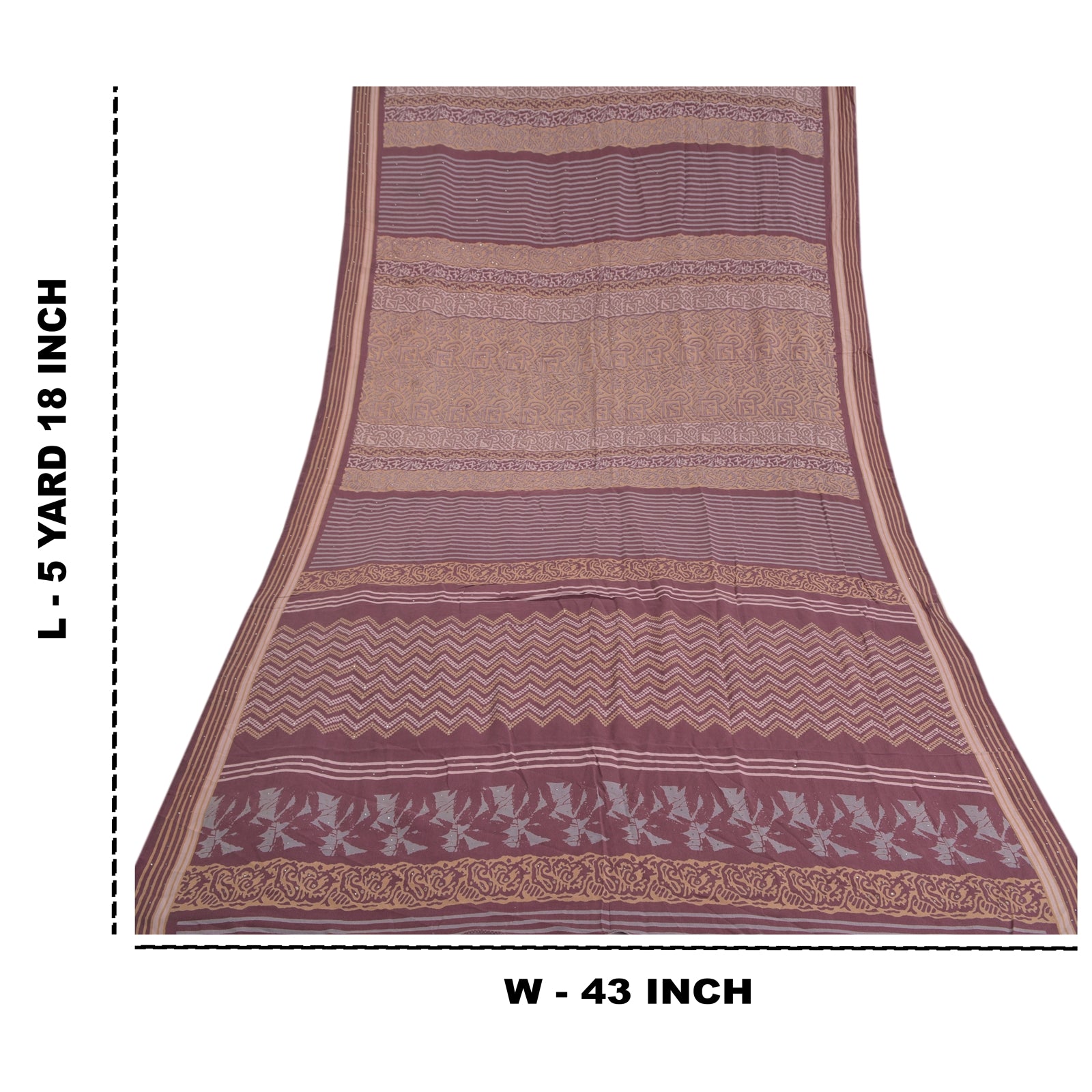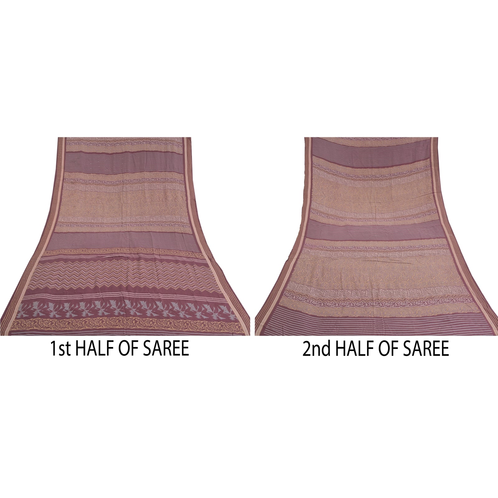Sanskriti Vintage Purple Sarees Pure Crepe Silk Printed Sari Soft Craft Sustainable Fabric