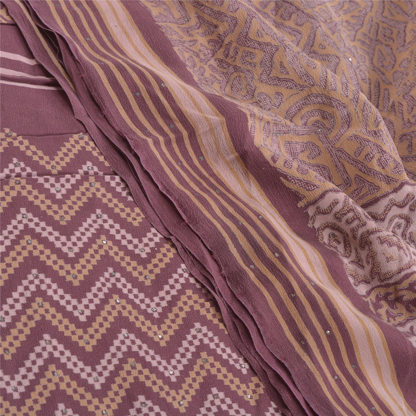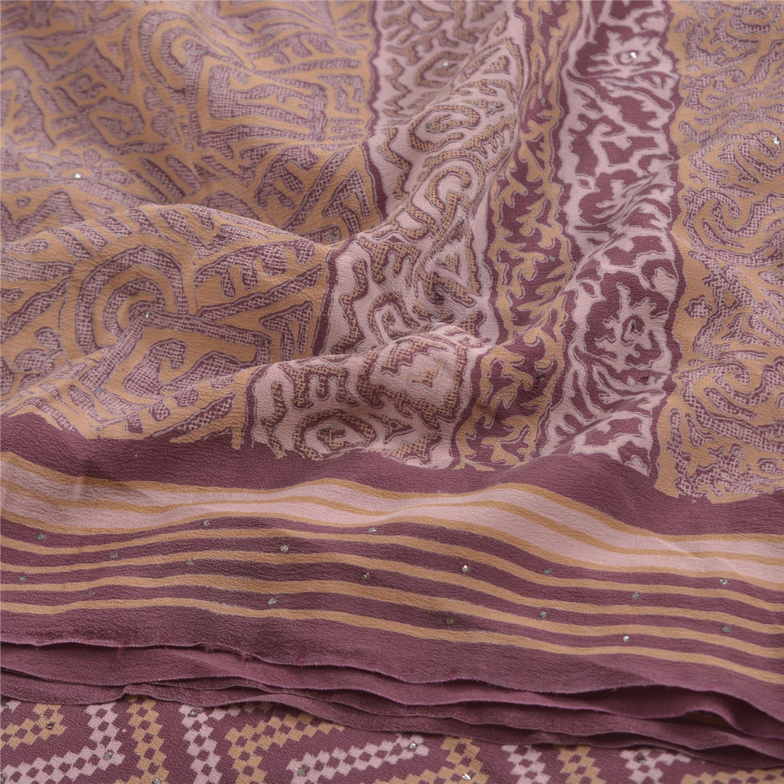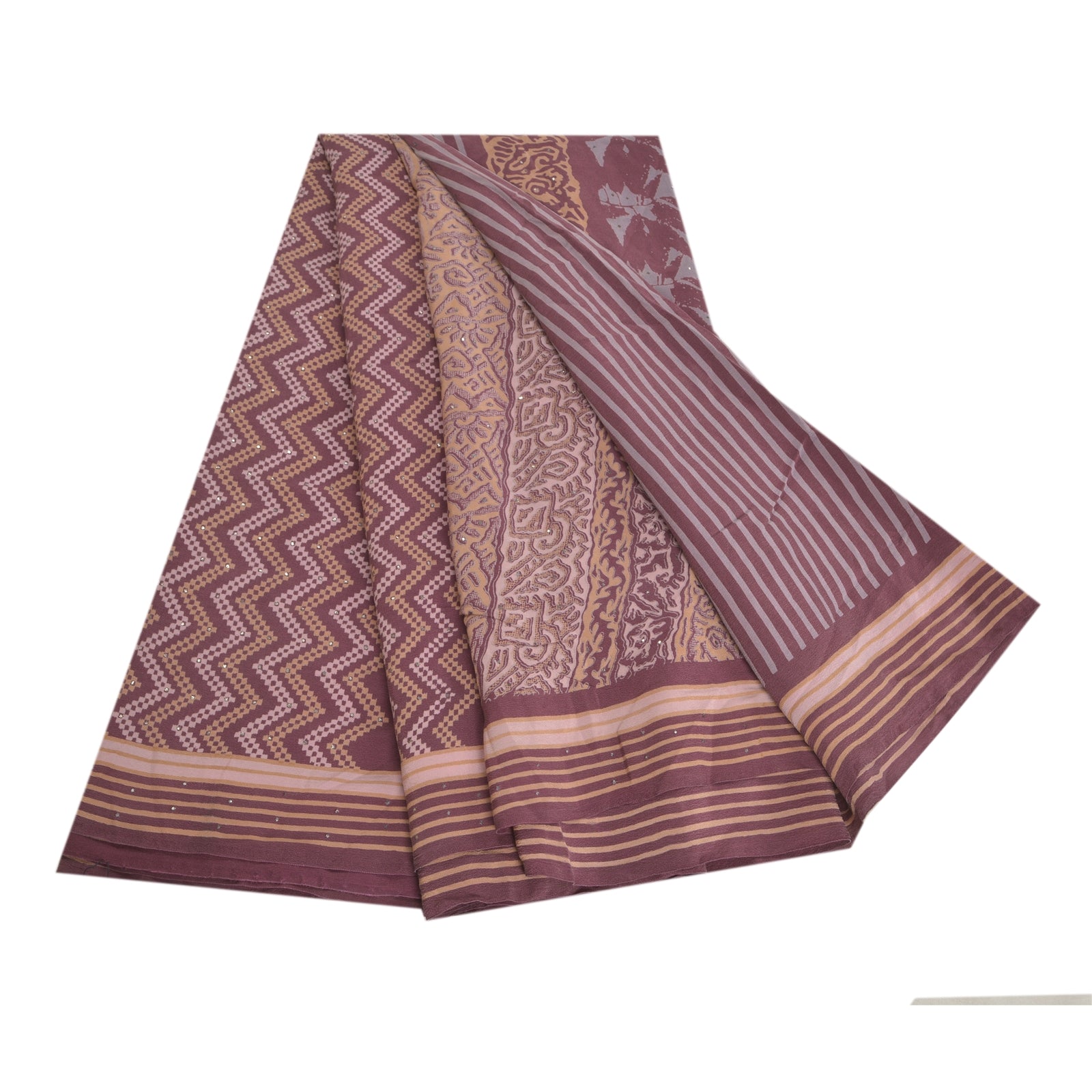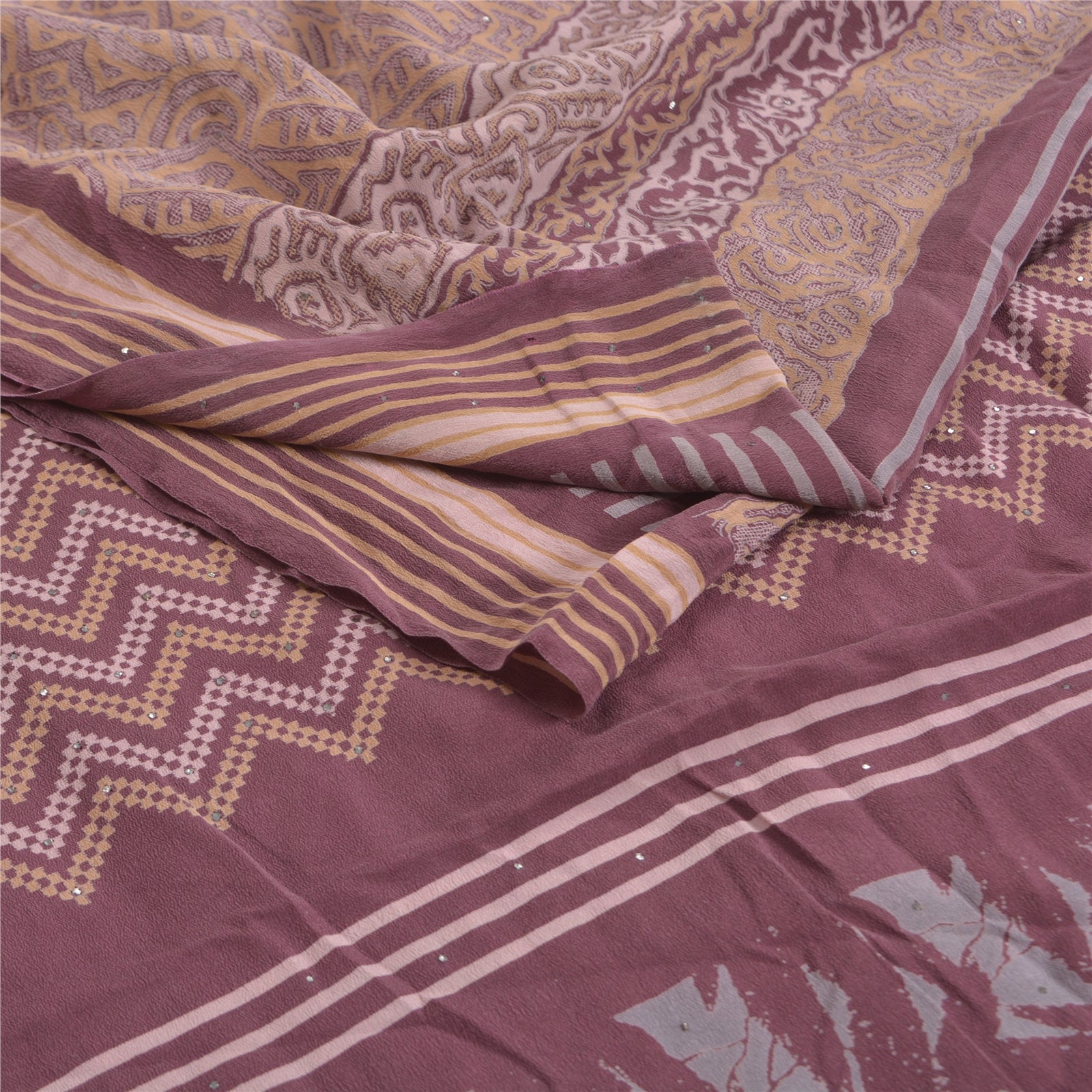 Sanskriti Vintage Purple Sarees Pure Crepe Silk Printed Sari Soft Craft Sustainable Fabric