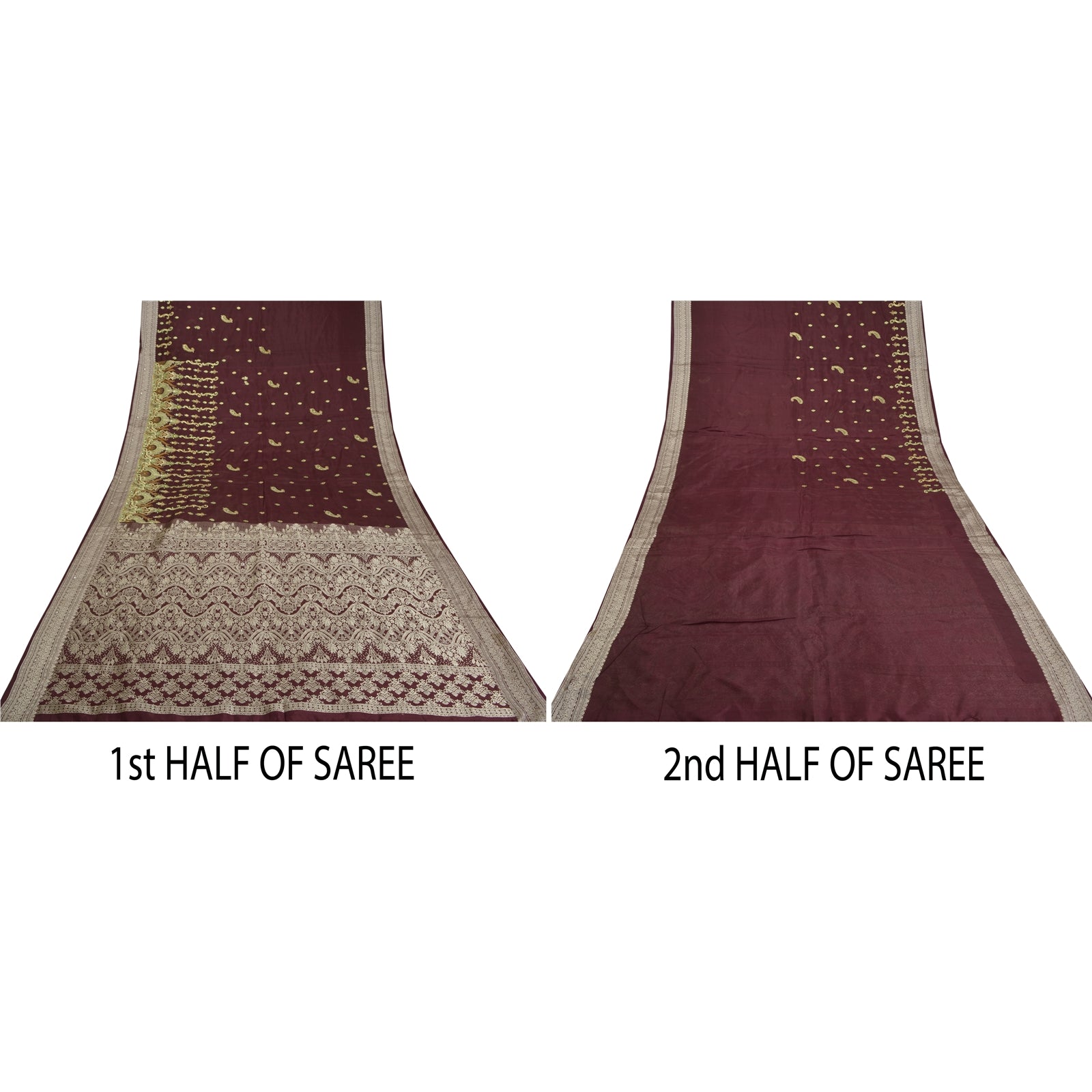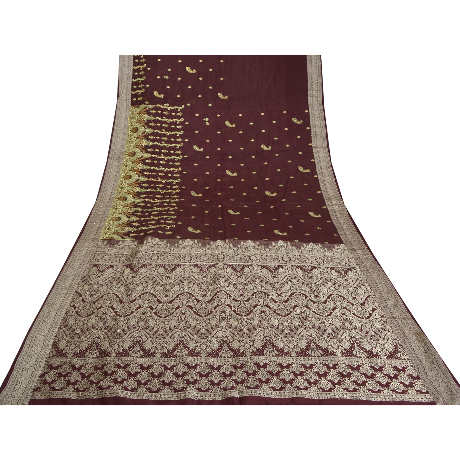 Sanskriti Vintage Purple Sarees Pure Silk Hand Beaded Woven Sari Craft Sustainable Fabric