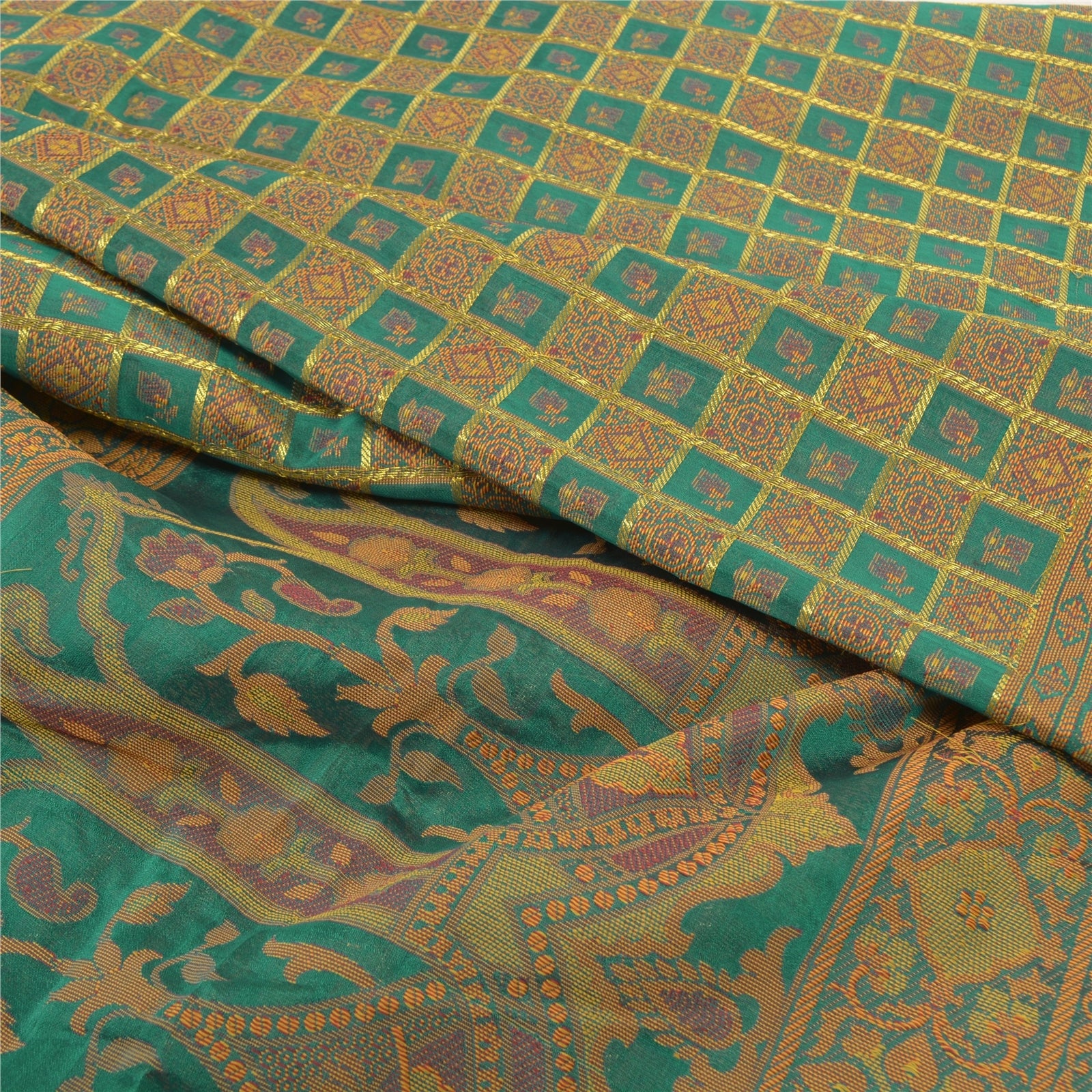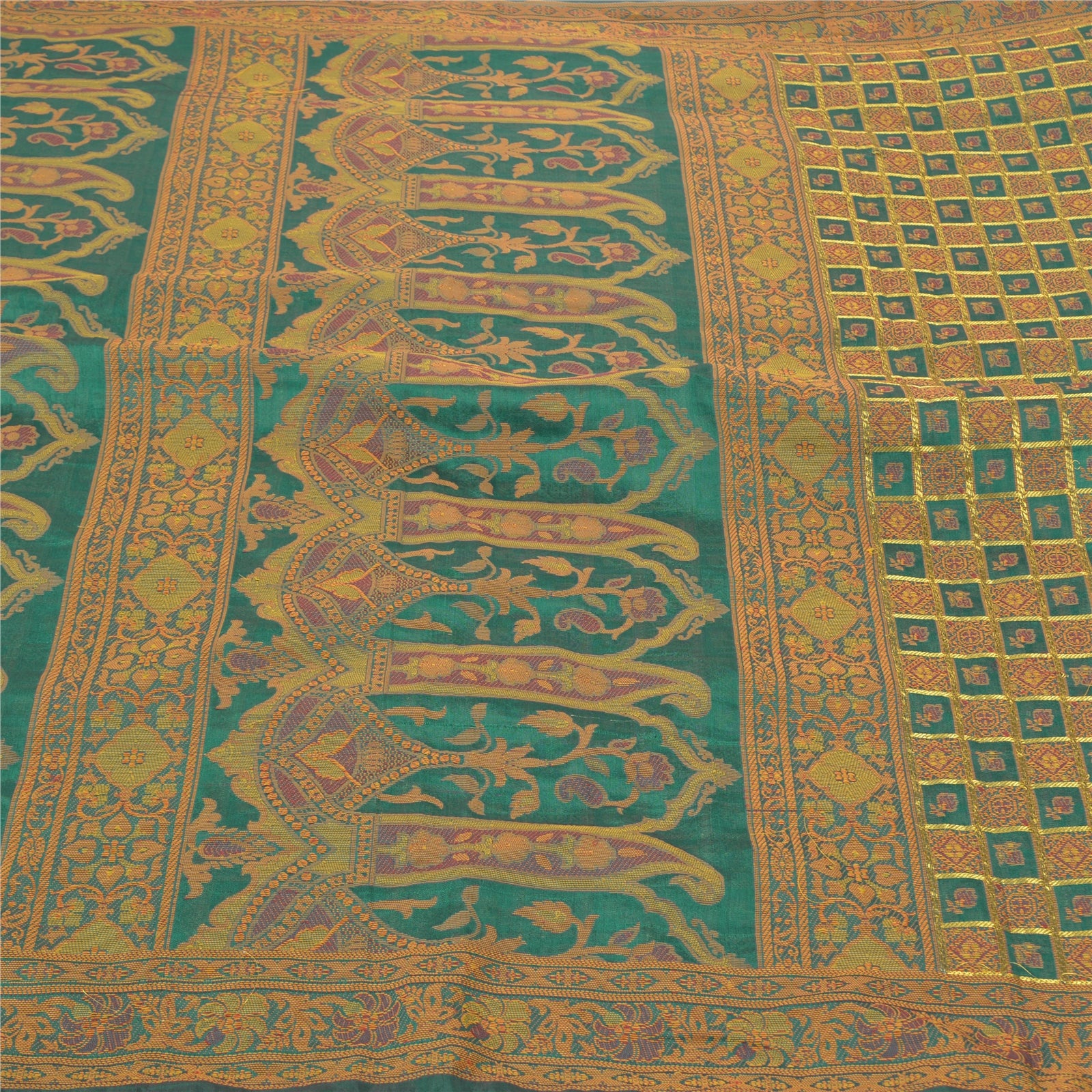 Sanskriti Vintage Rama Green Sarees Blend Georgette Hand- Woven Sari Sustainable Fabric