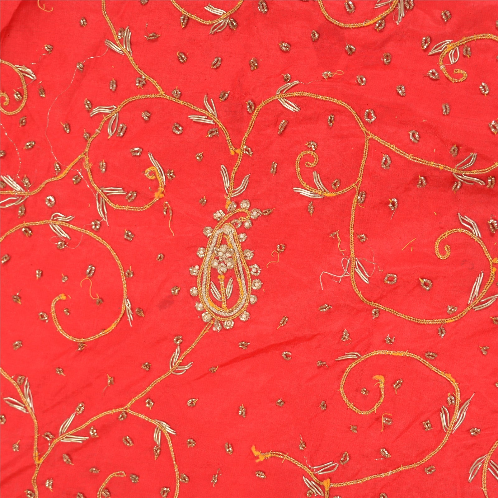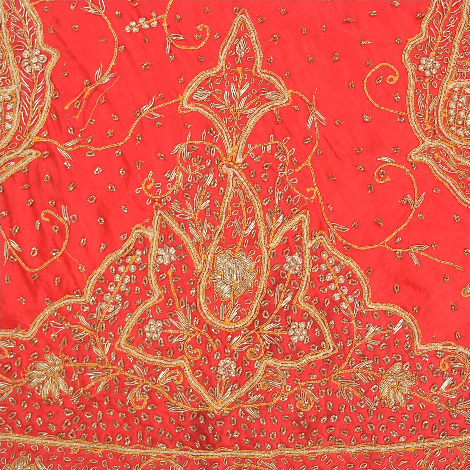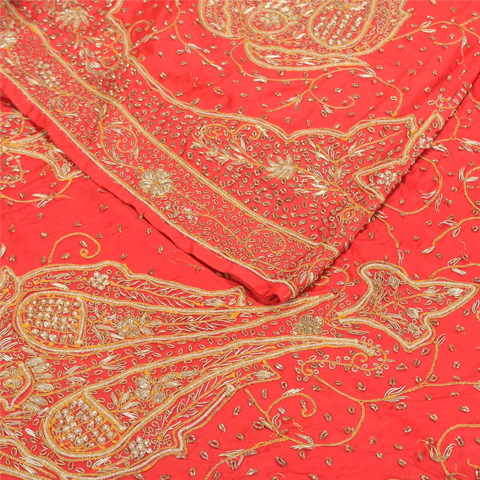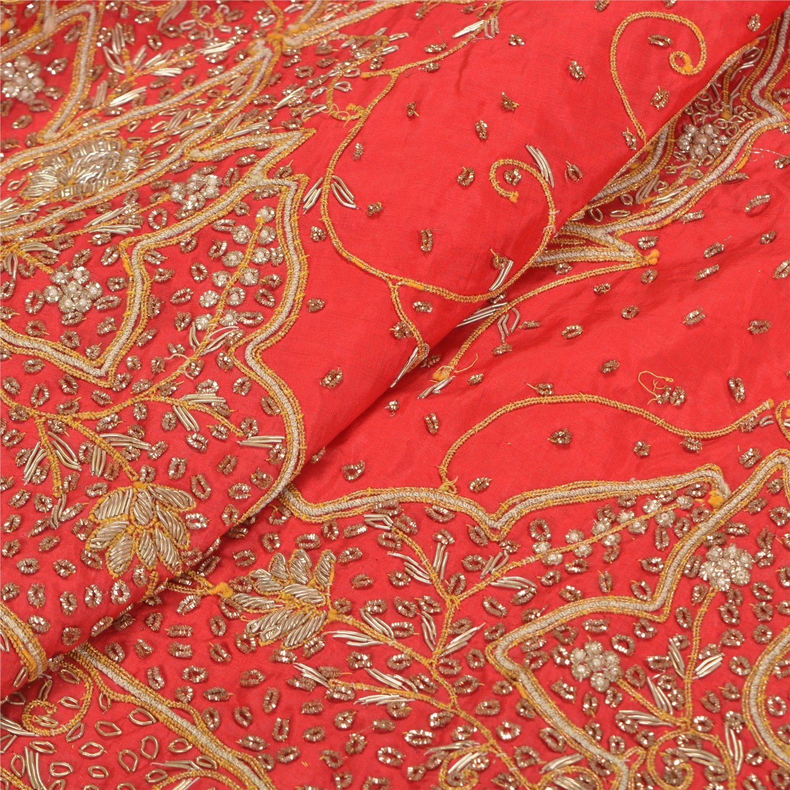 Sanskriti Vintage Red 100% Pure Silk Long Skirt Unstitched Hand Beaded Zardozi