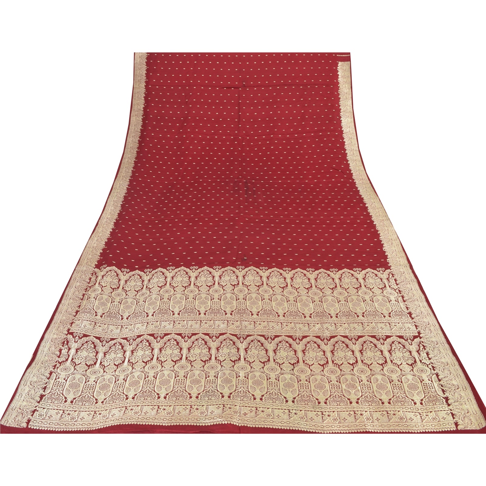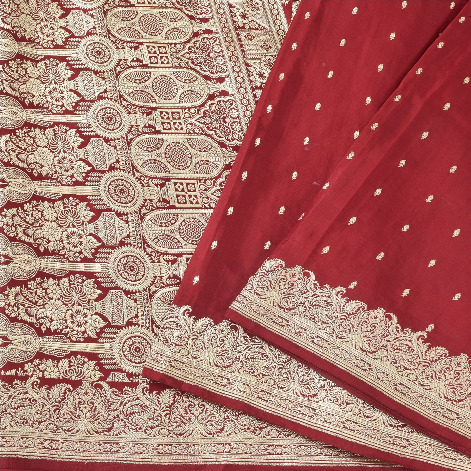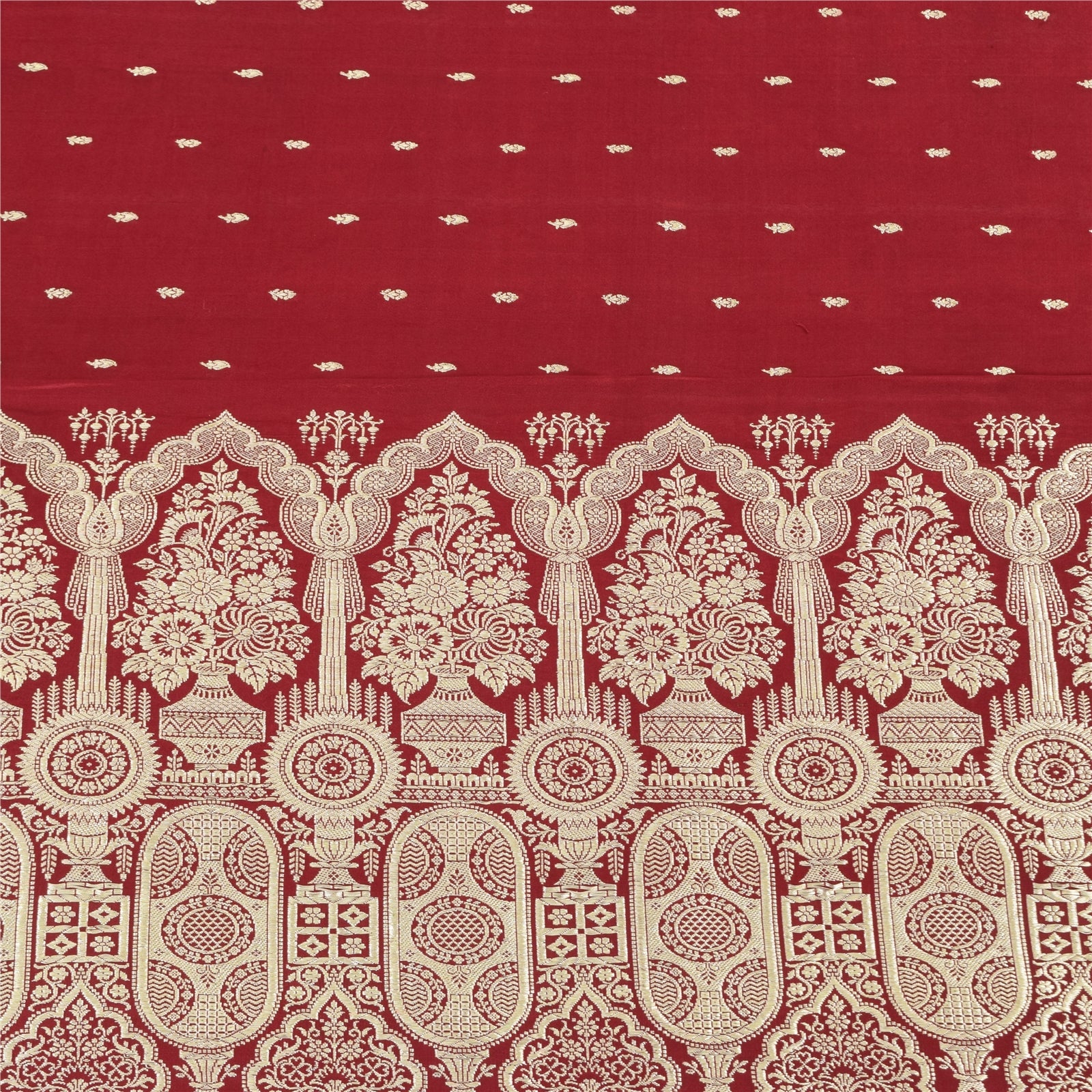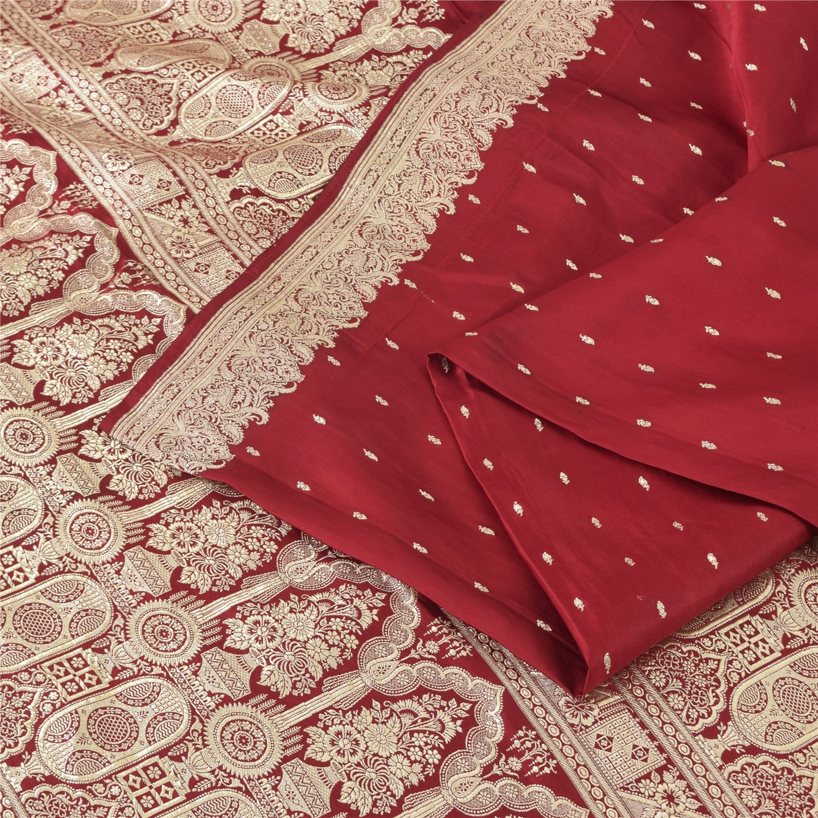 Sanskriti Vintage Red Sarees Pure Satin Silk Woven Banarasi Brocade Fabric Sari