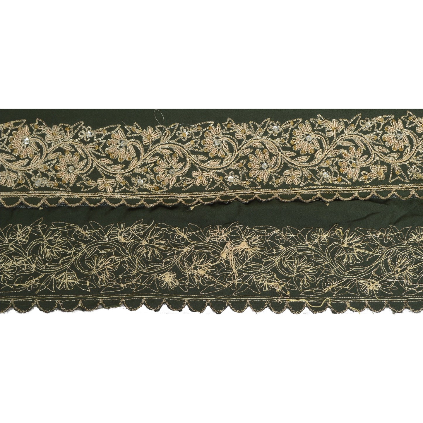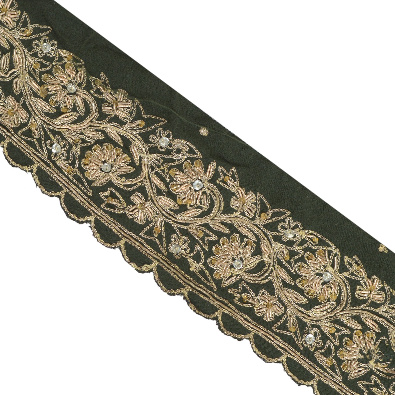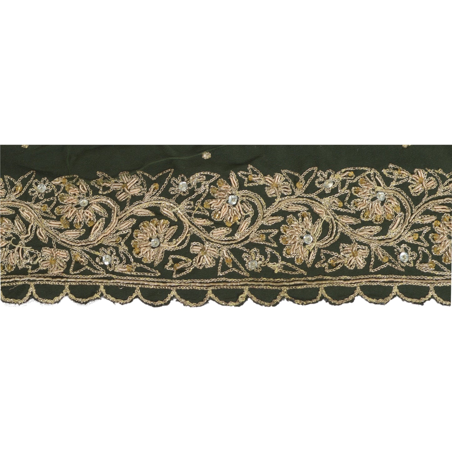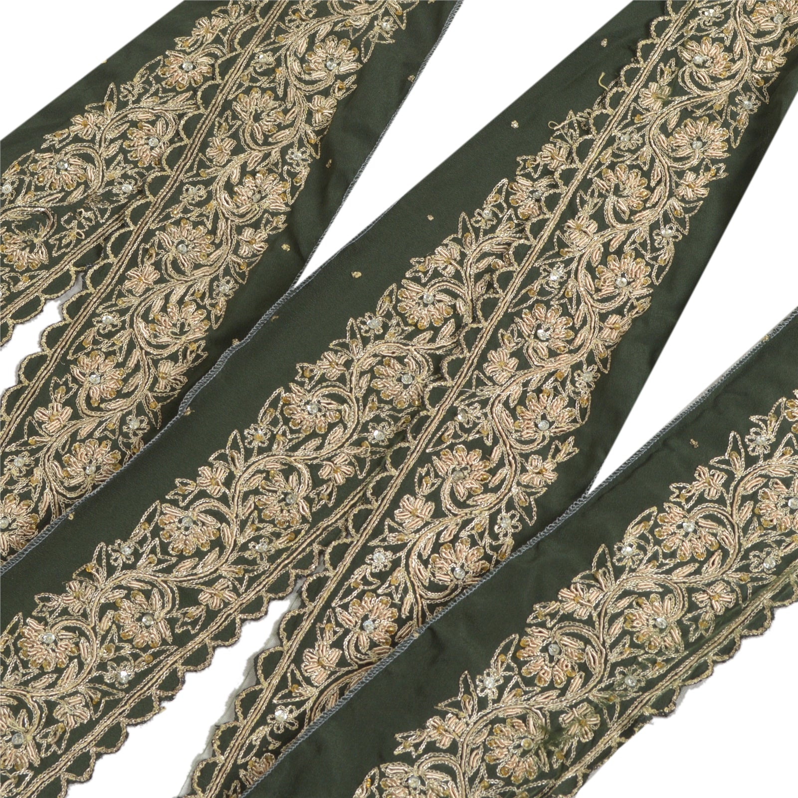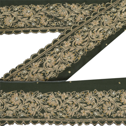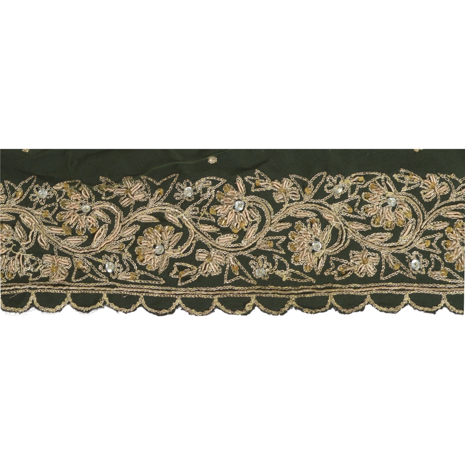 Sanskriti Vintage Saree Border Hand Beaded Craft 1Yd Trims Lace 2W Zari Green