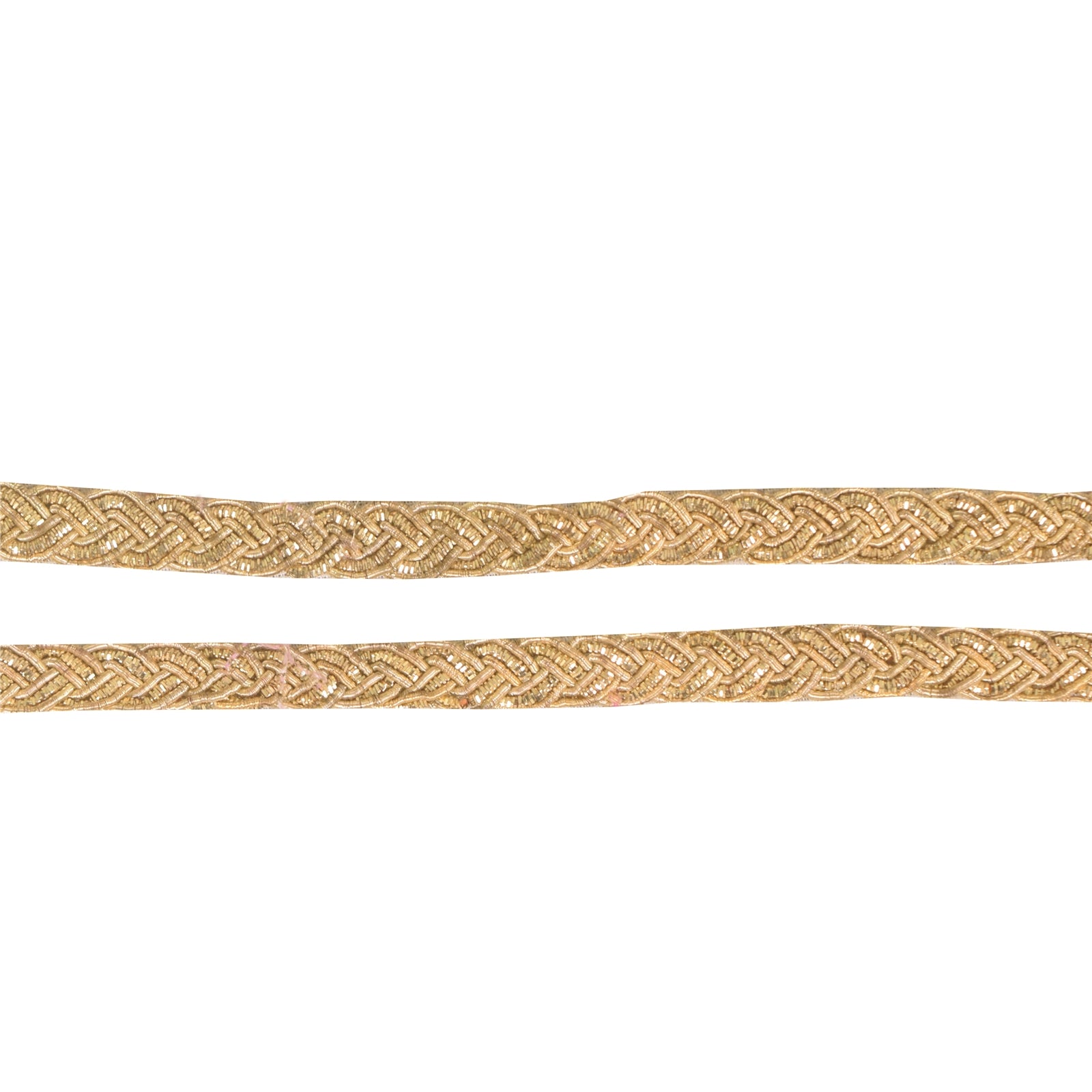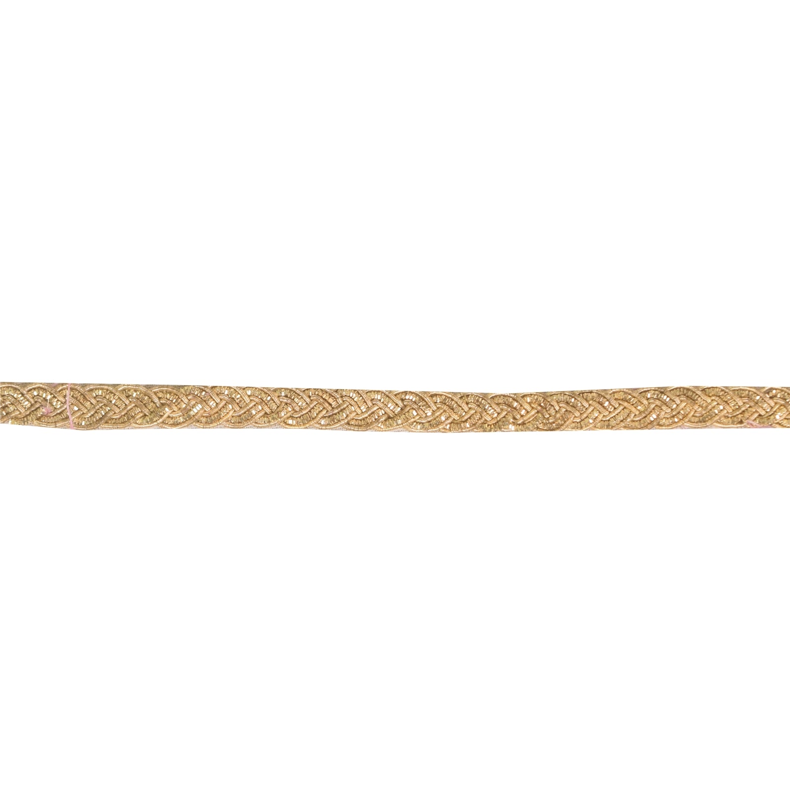 SANSKRITI VINTAGE SAREE BORDER HAND EMBROIDERED CRAFT 1 YD TRIMS 0.5W GOLDEN