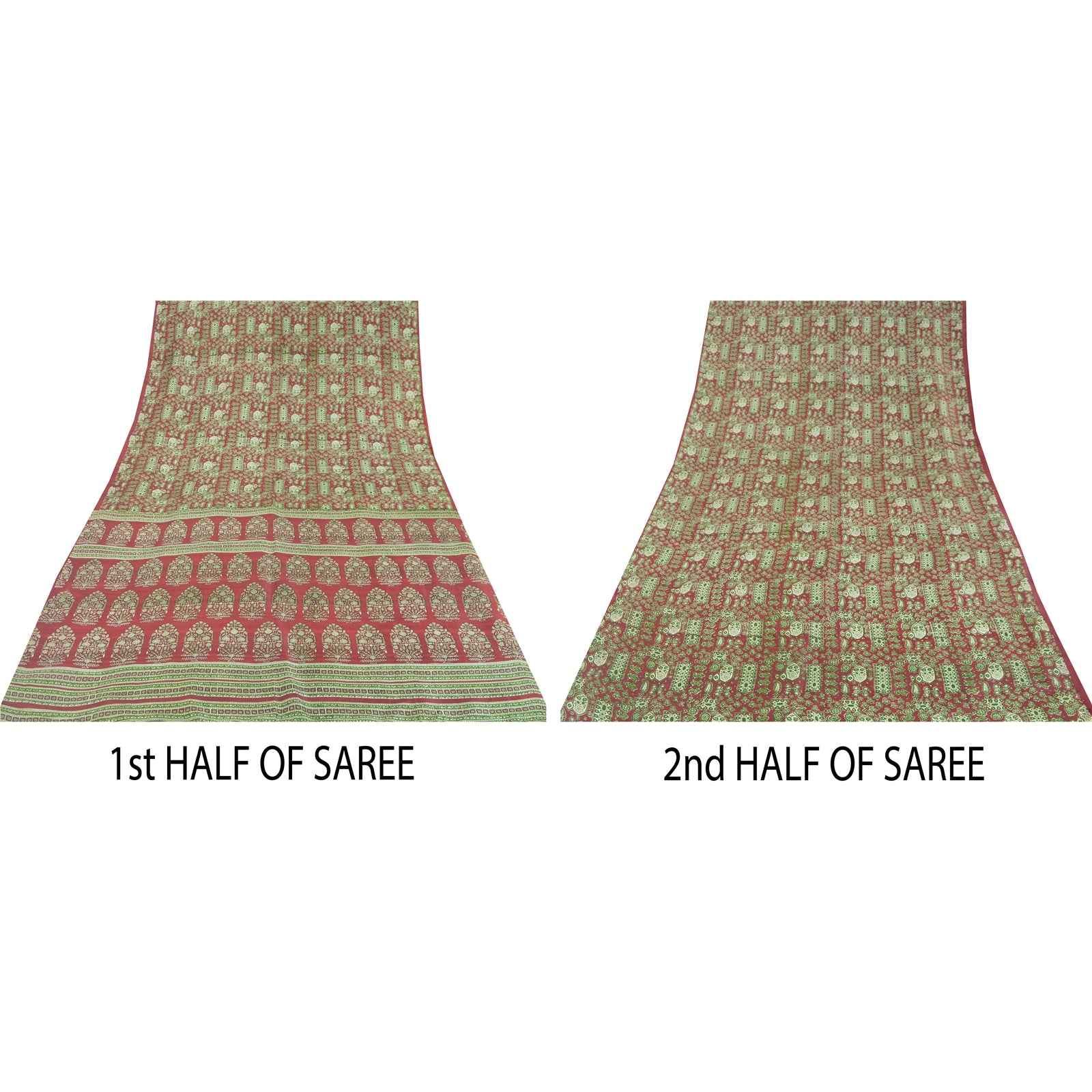 THE ITEM COLOR OR SHADE MAY BE DARKER OR LIGHTER THAN THE PICTURE.' Beautiful green & dark red colored pure silk printed saree. Pallu & Border has printed floral design. Similar design in center part of saree. What is special about this saree? Fabulous design is really enhancing the beauty of the saree. This unique vintage saree can be used for various crafting ideas even if you don't want to use it as a sari. Design a dress, use it as window, dressing, upholstery, sarongs, throw, dress making and table linen much more. Let your creative juices flow and use this decorated Sustainable Fabric in multiple fashion. International buyers please note: Import duties, taxes, and charges are not included in the item price or postage cost. These charges are the buyer's responsibility. Please check with your country's customs office to determine what these additional costs will be prior to bidding or buying. Buyer will pay custom duty/tax. It is calculated and charged differently by every country. As a seller I do not have any control over it. VAT or sales tax is calculated by the platform at the time of checkout. Customs charge is payable at the time of delivery.'