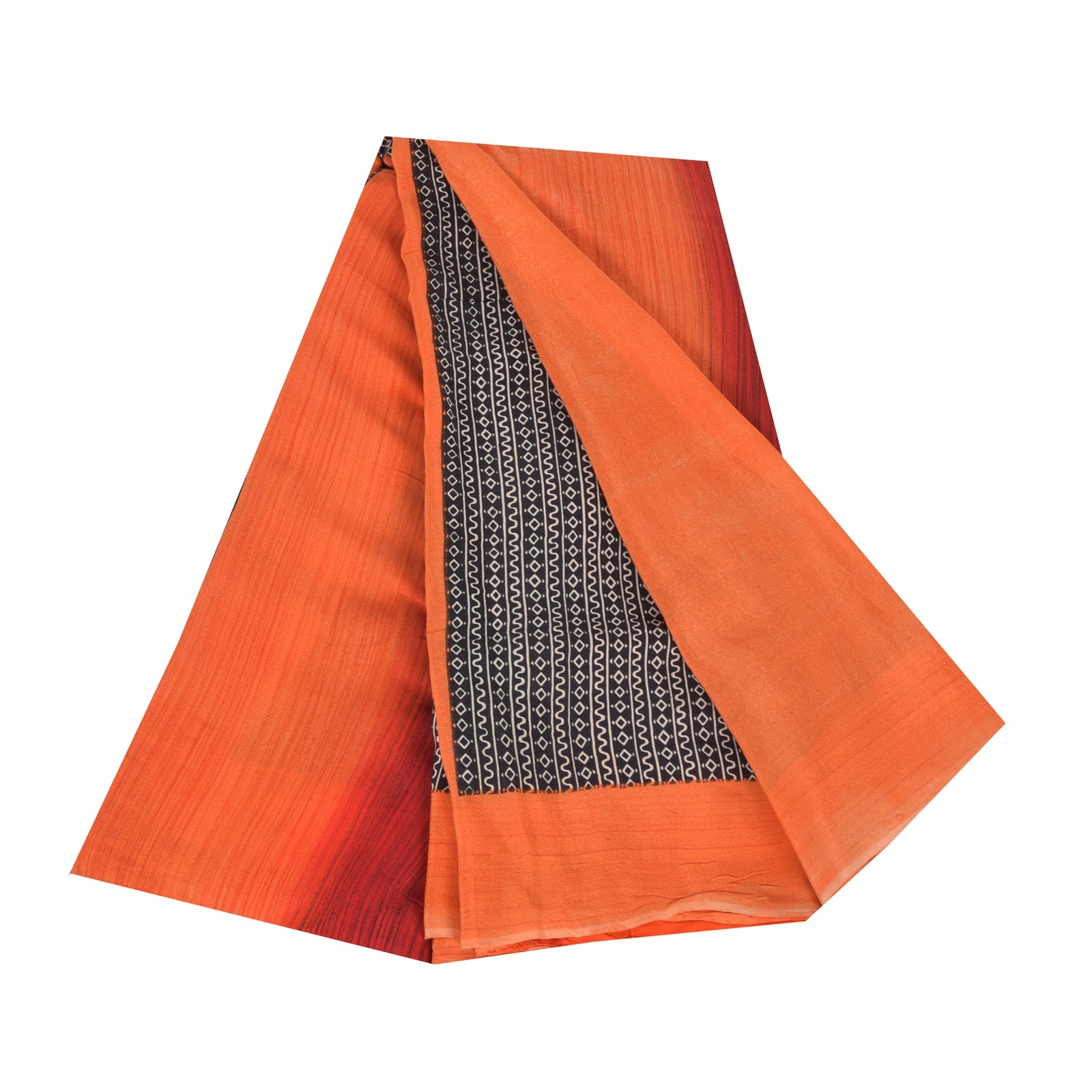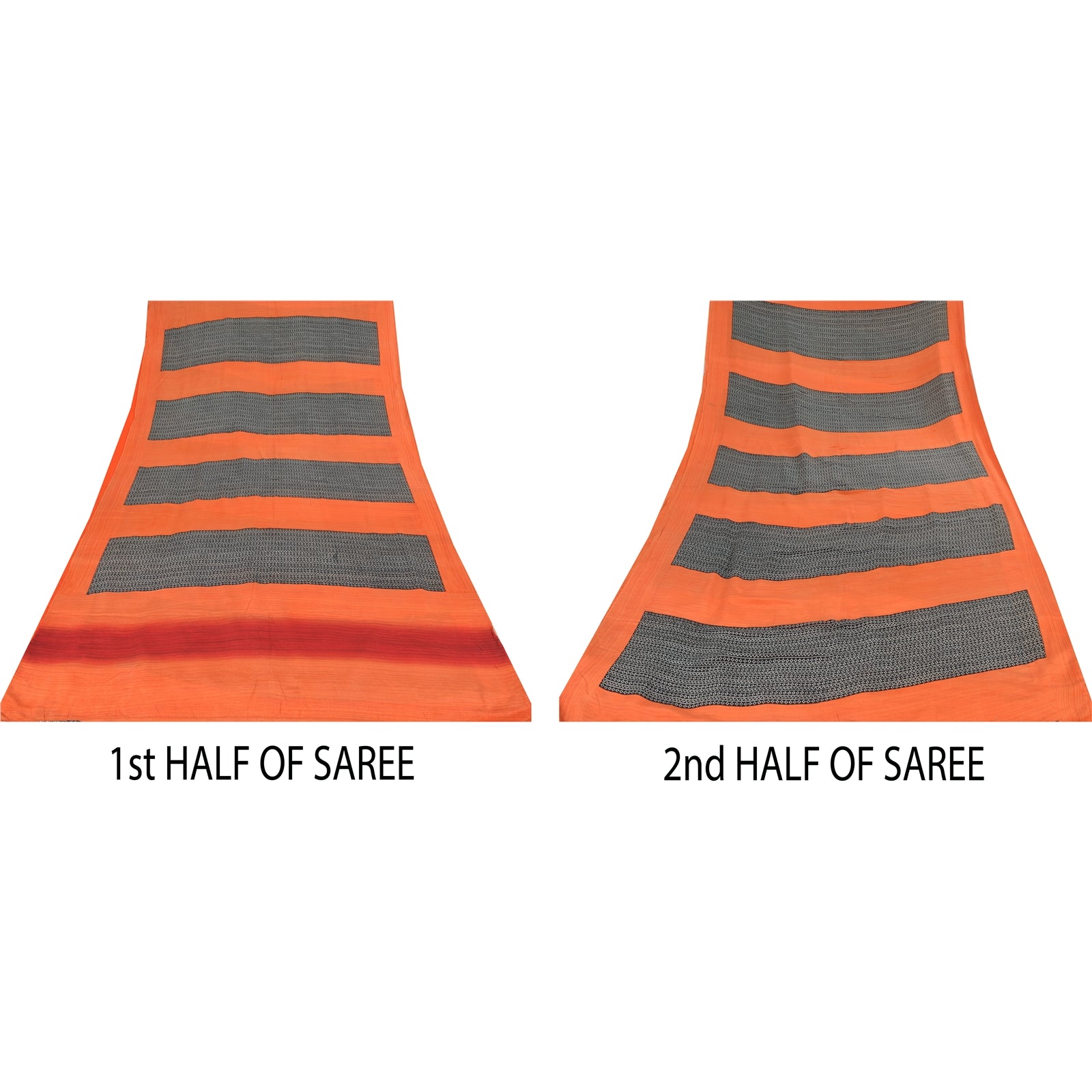 Sanskriti Vintage Sarees Black/Orange Pure Crepe Silk Print Sari Craft Sustainable Fabric