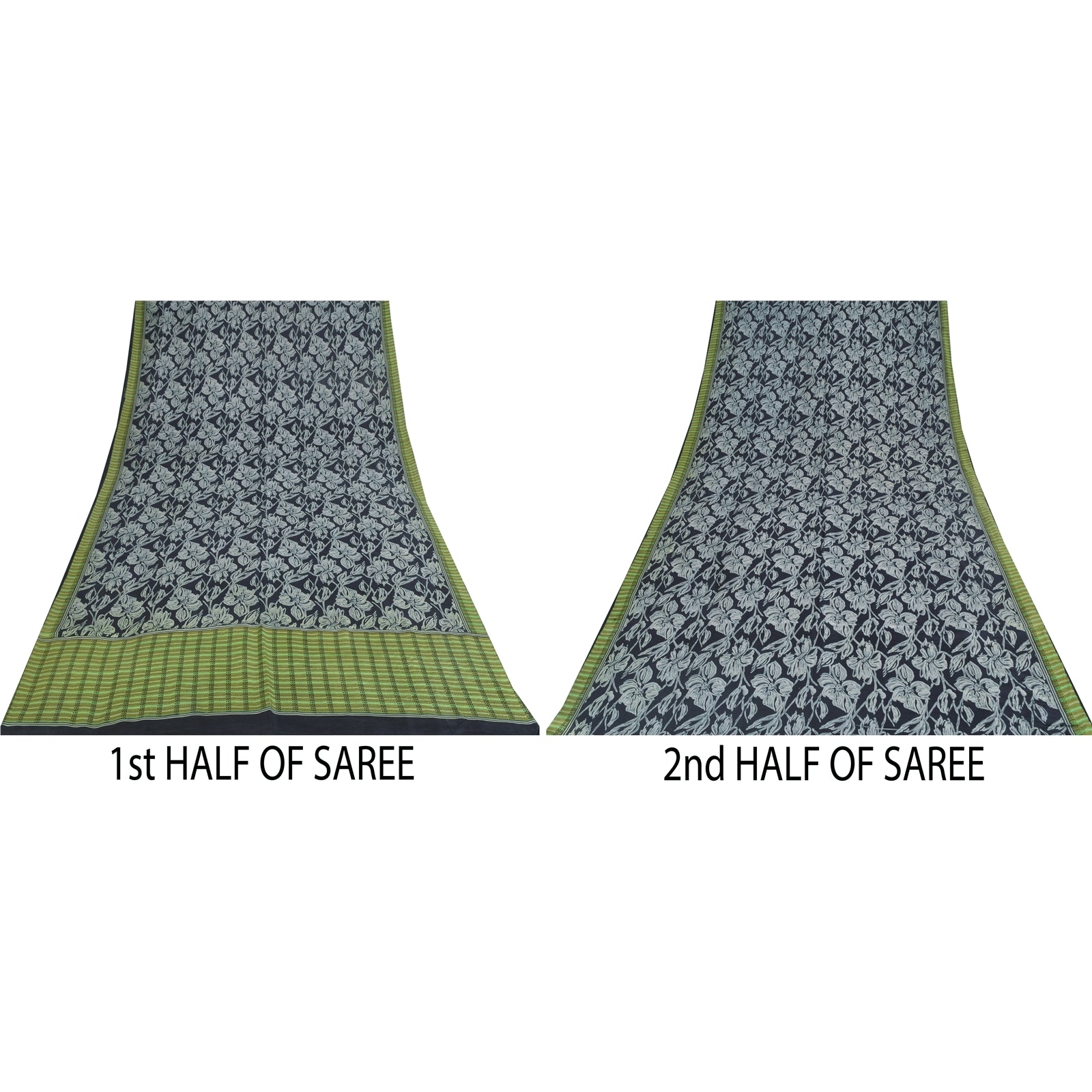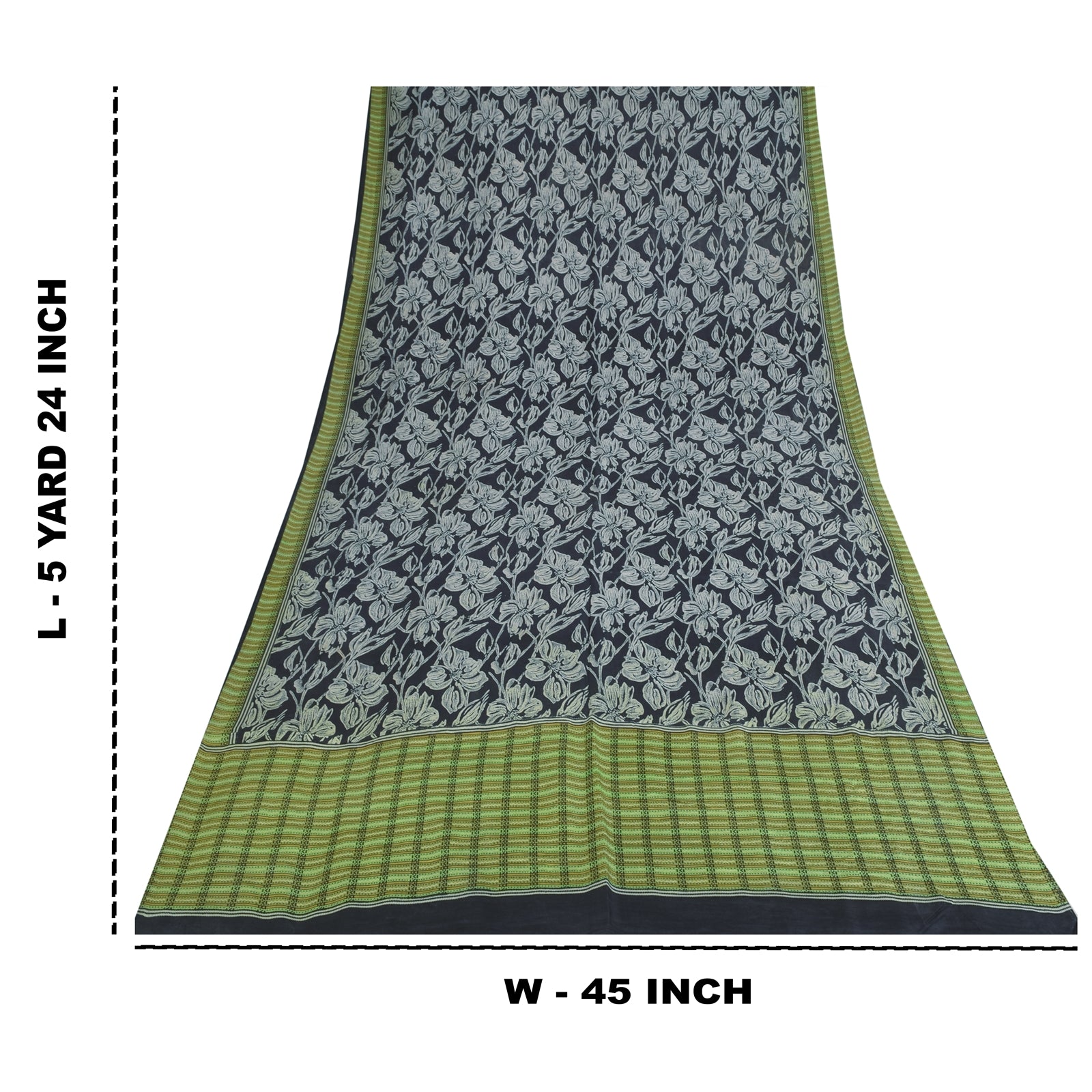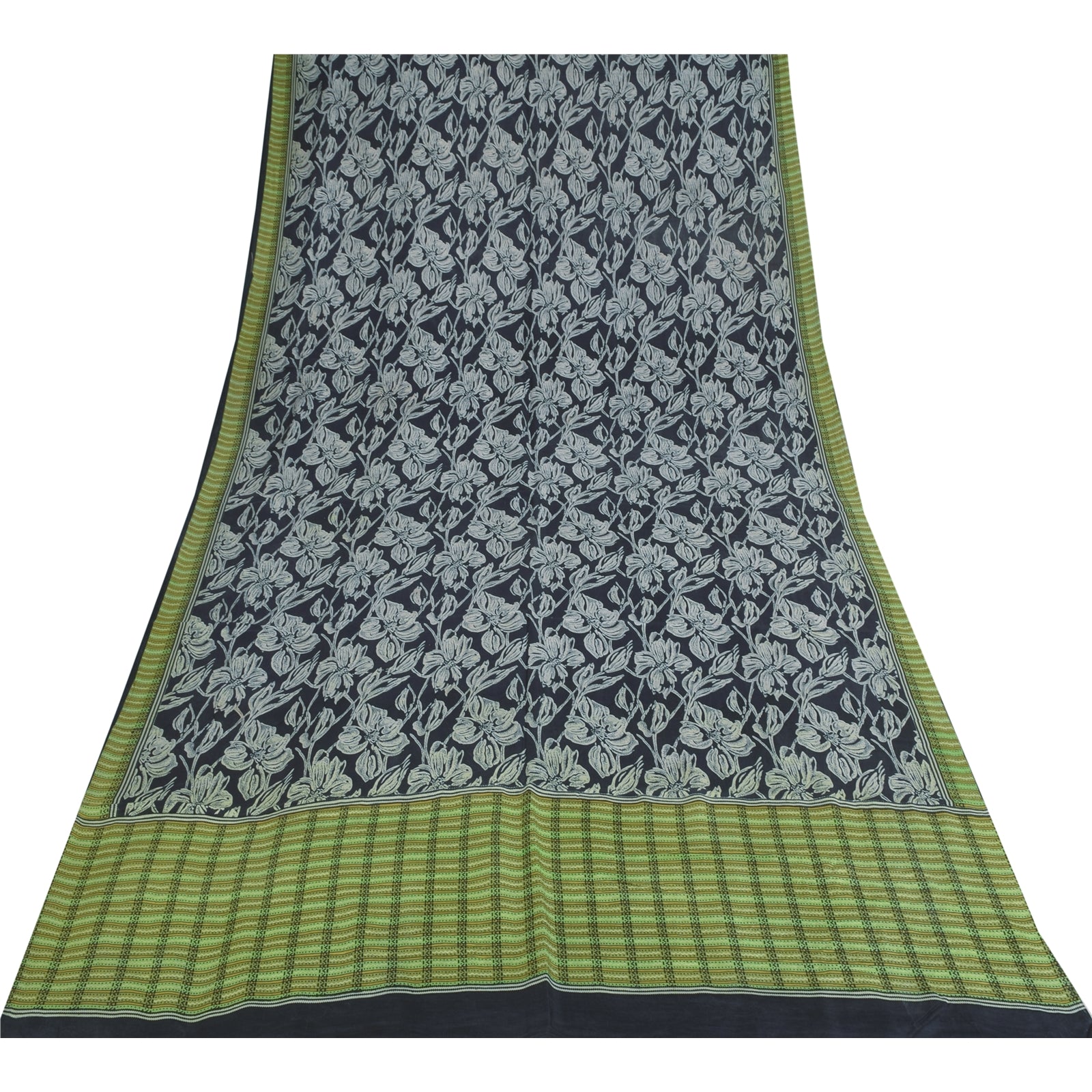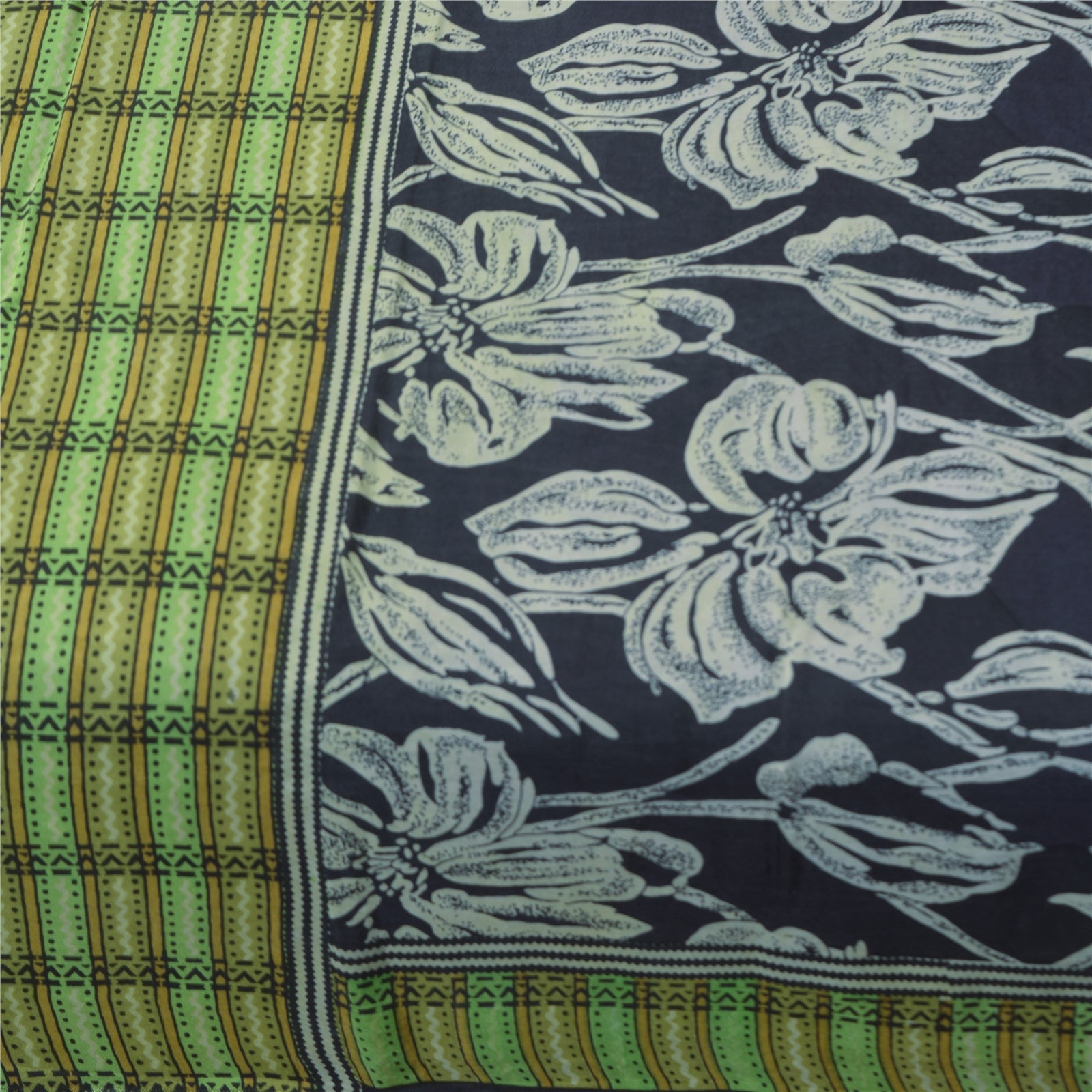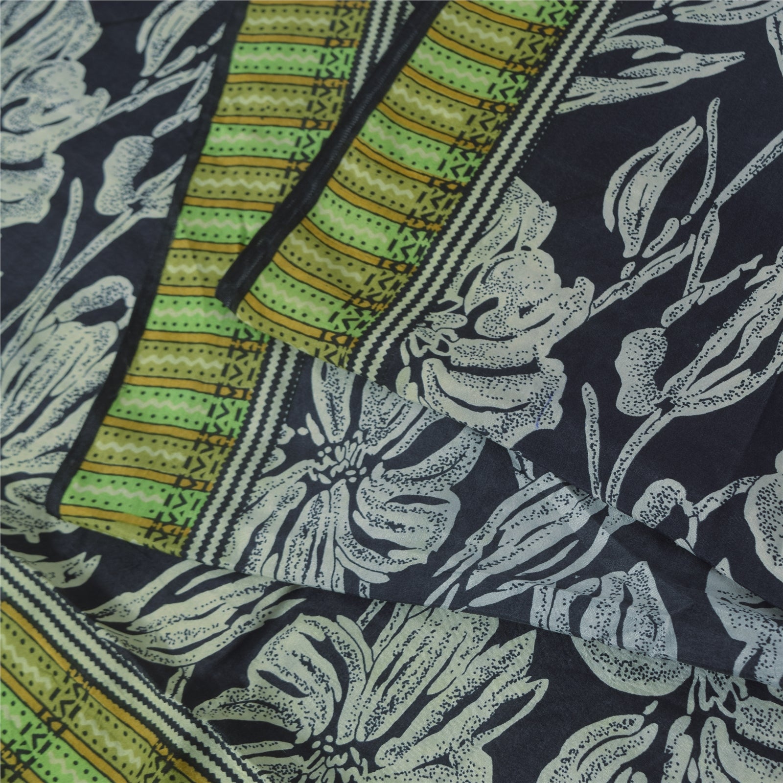 Sanskriti Vintage Sarees Black Pure Silk Floral Printed Sari 5+yd Craft Fabric