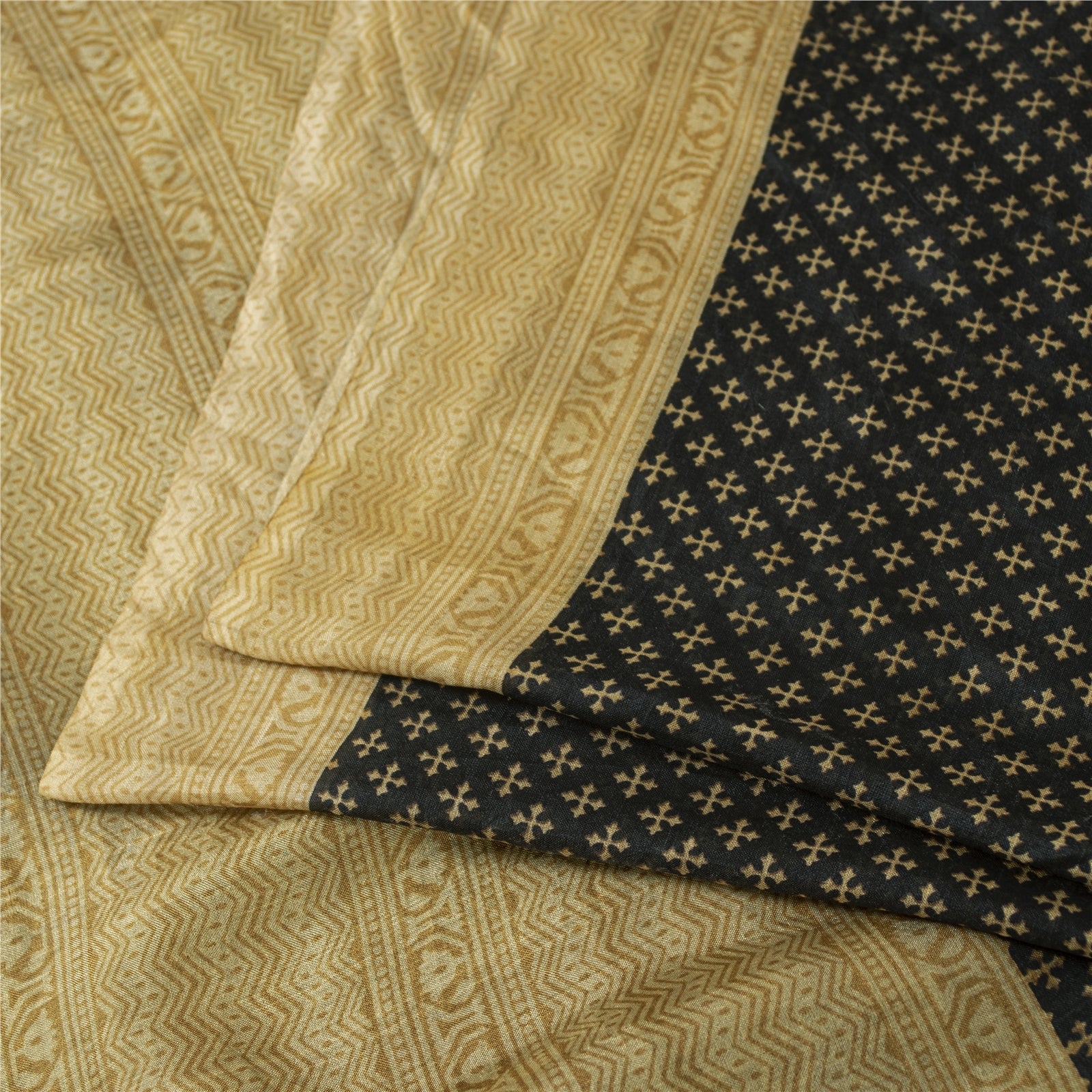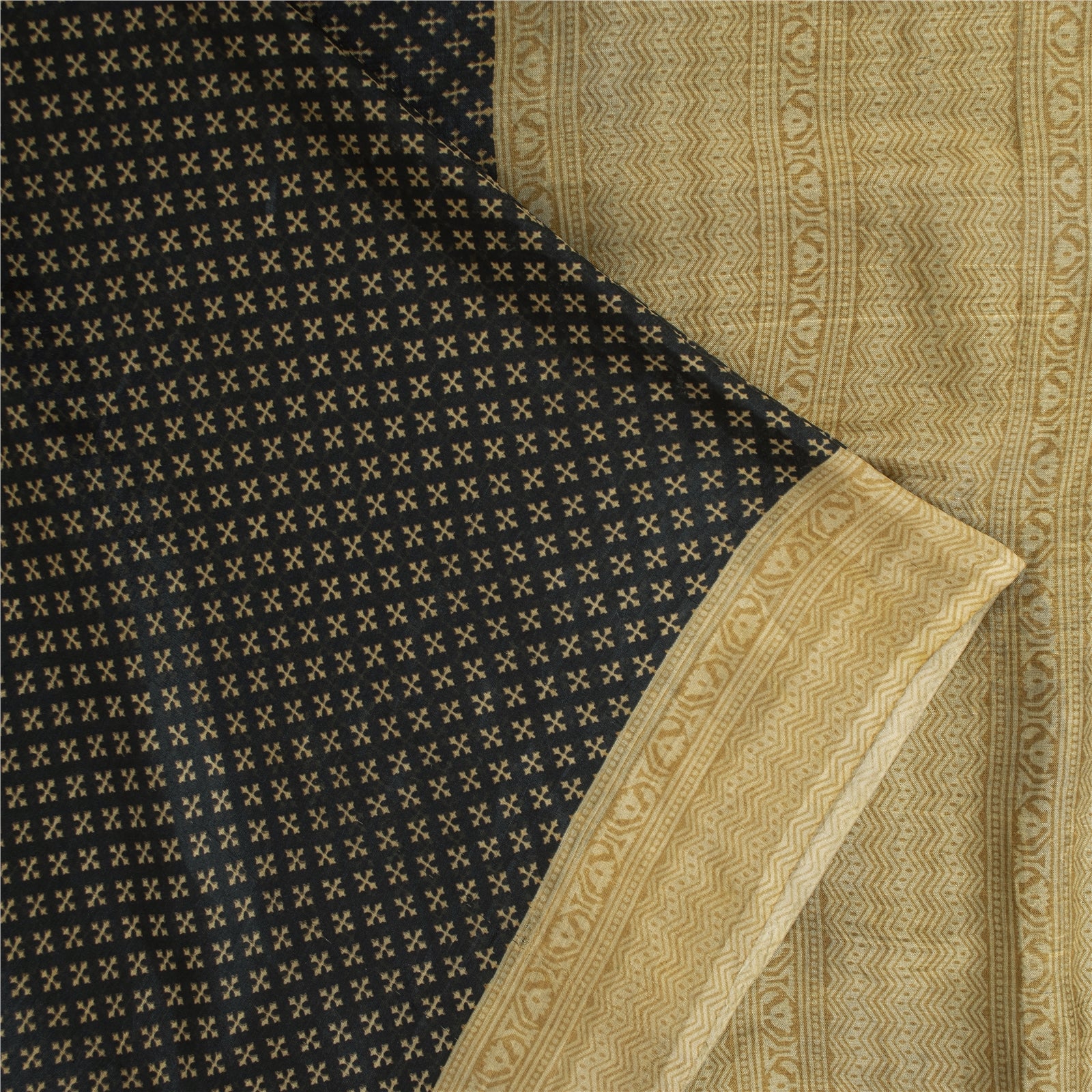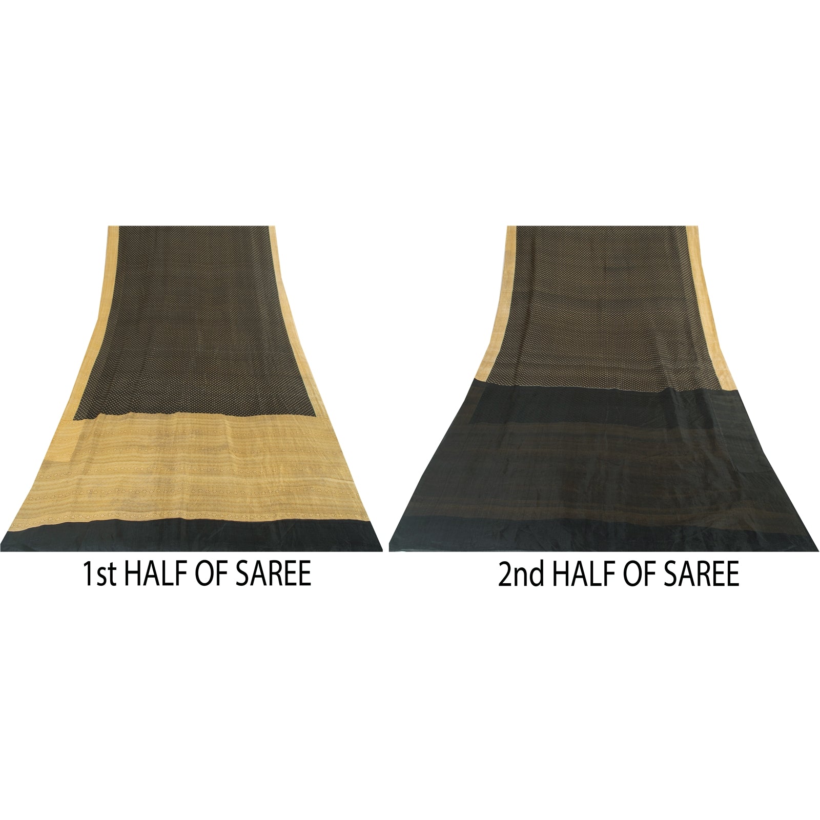 Sanskriti Vintage Sarees Black Pure Silk Geometric Print Sari 6+yd Craft Fabric