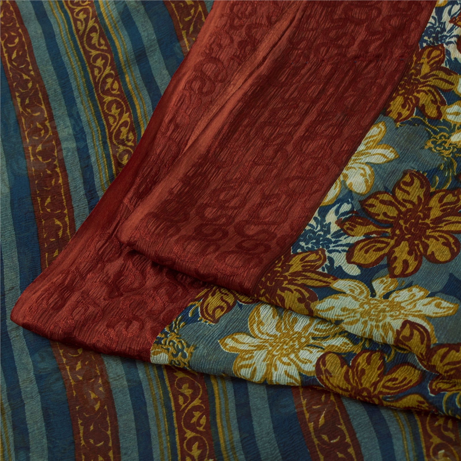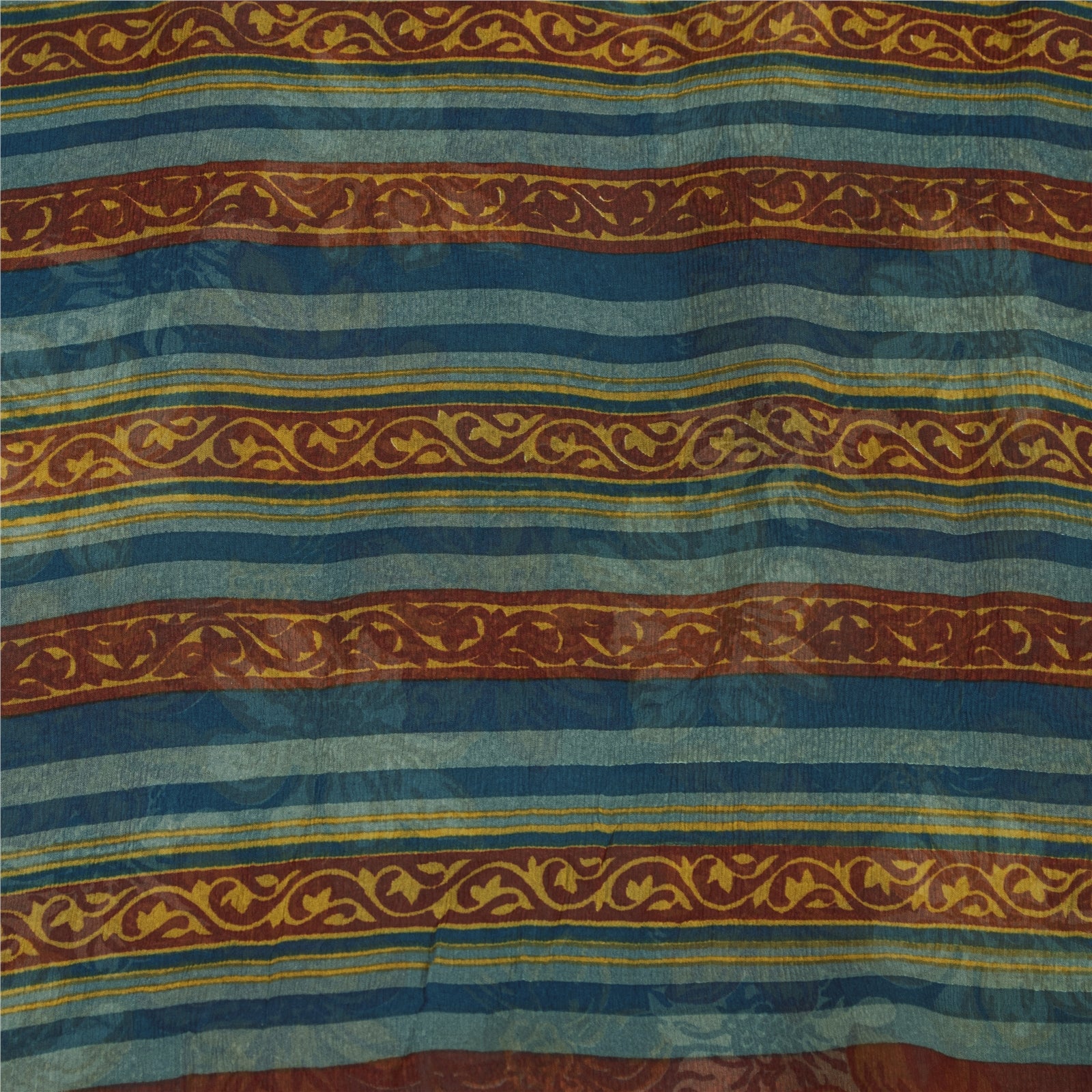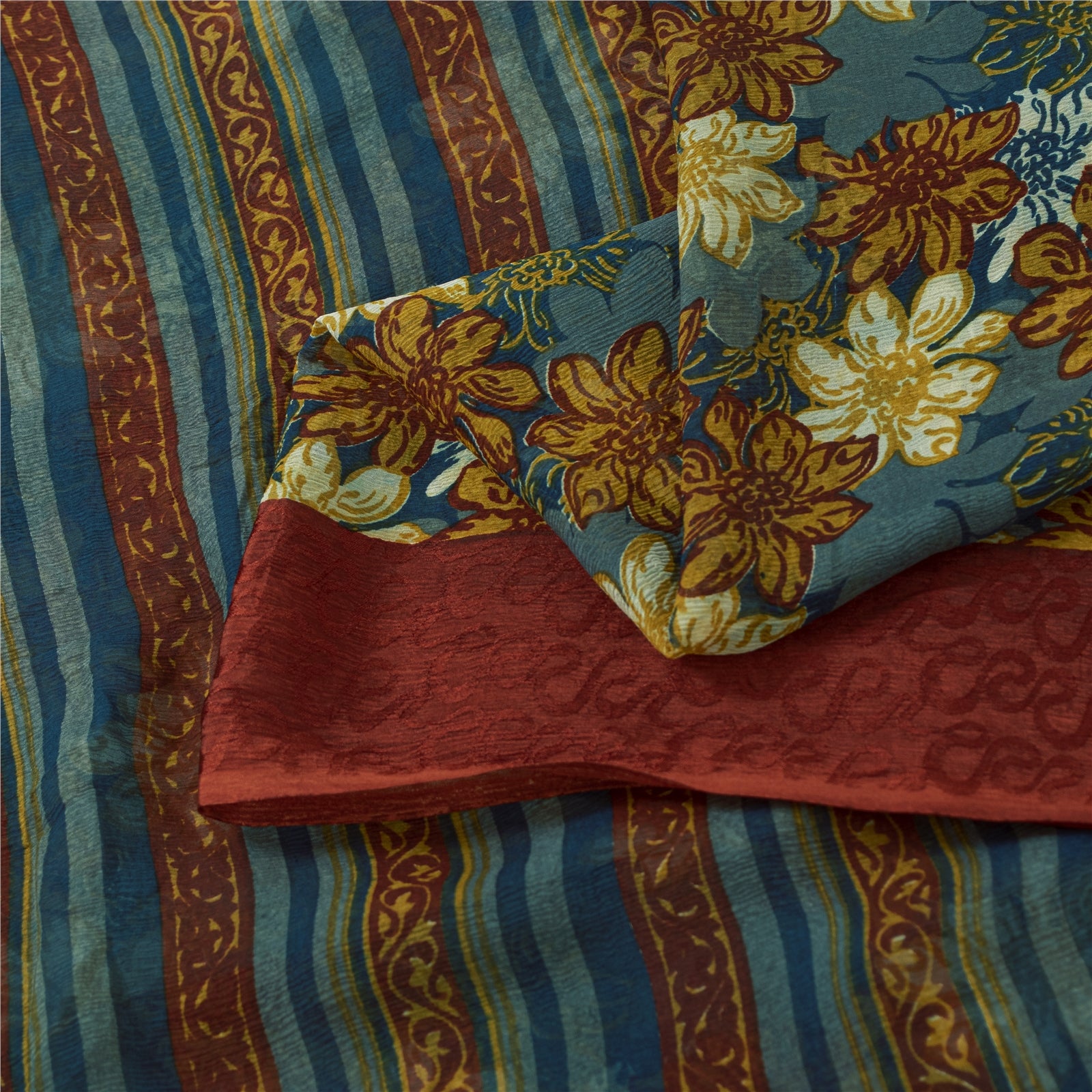 Sanskriti Vintage Sarees Blue Pure Chiffon Silk Printed Sari 6+yd Craft Fabric