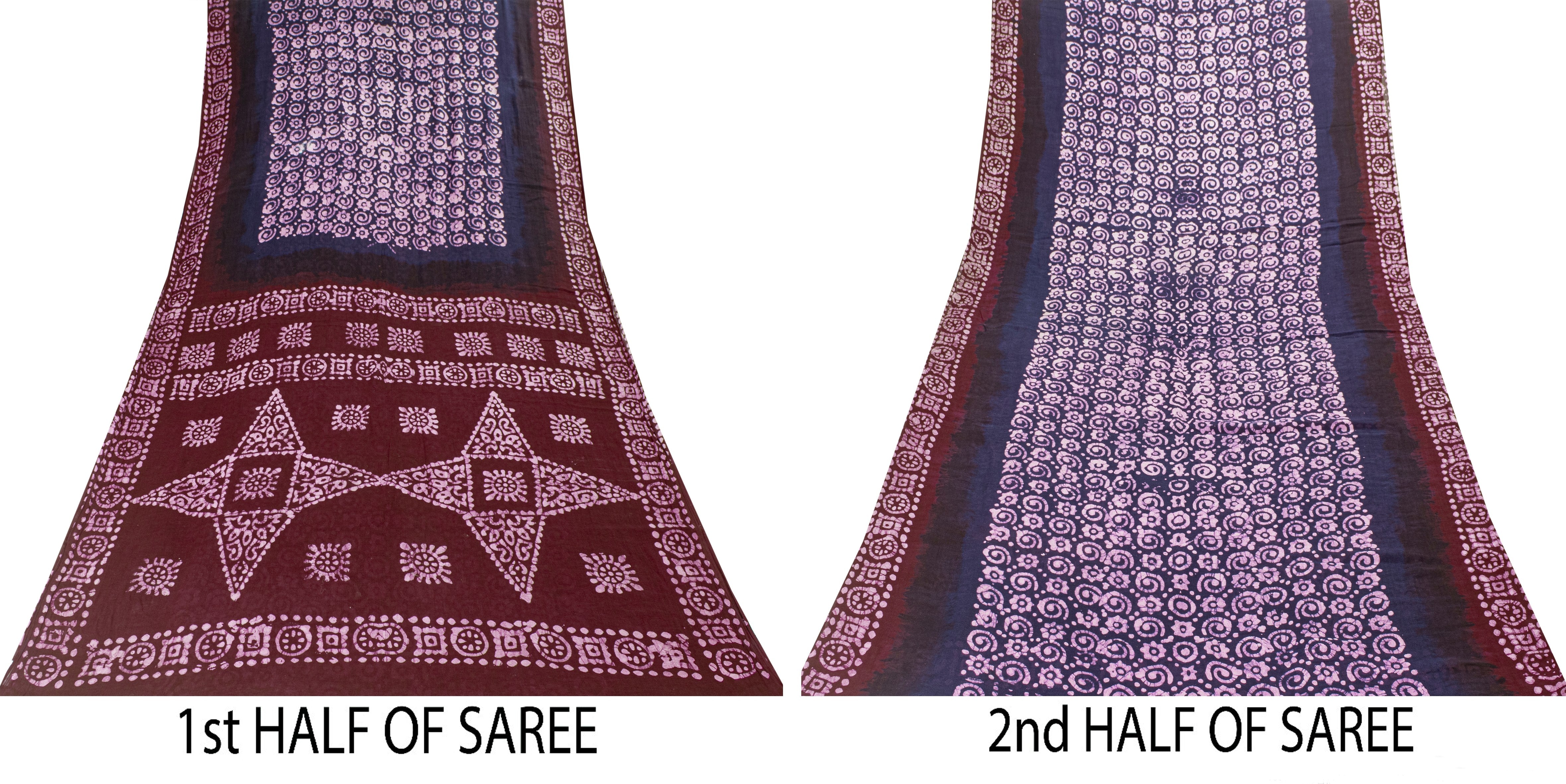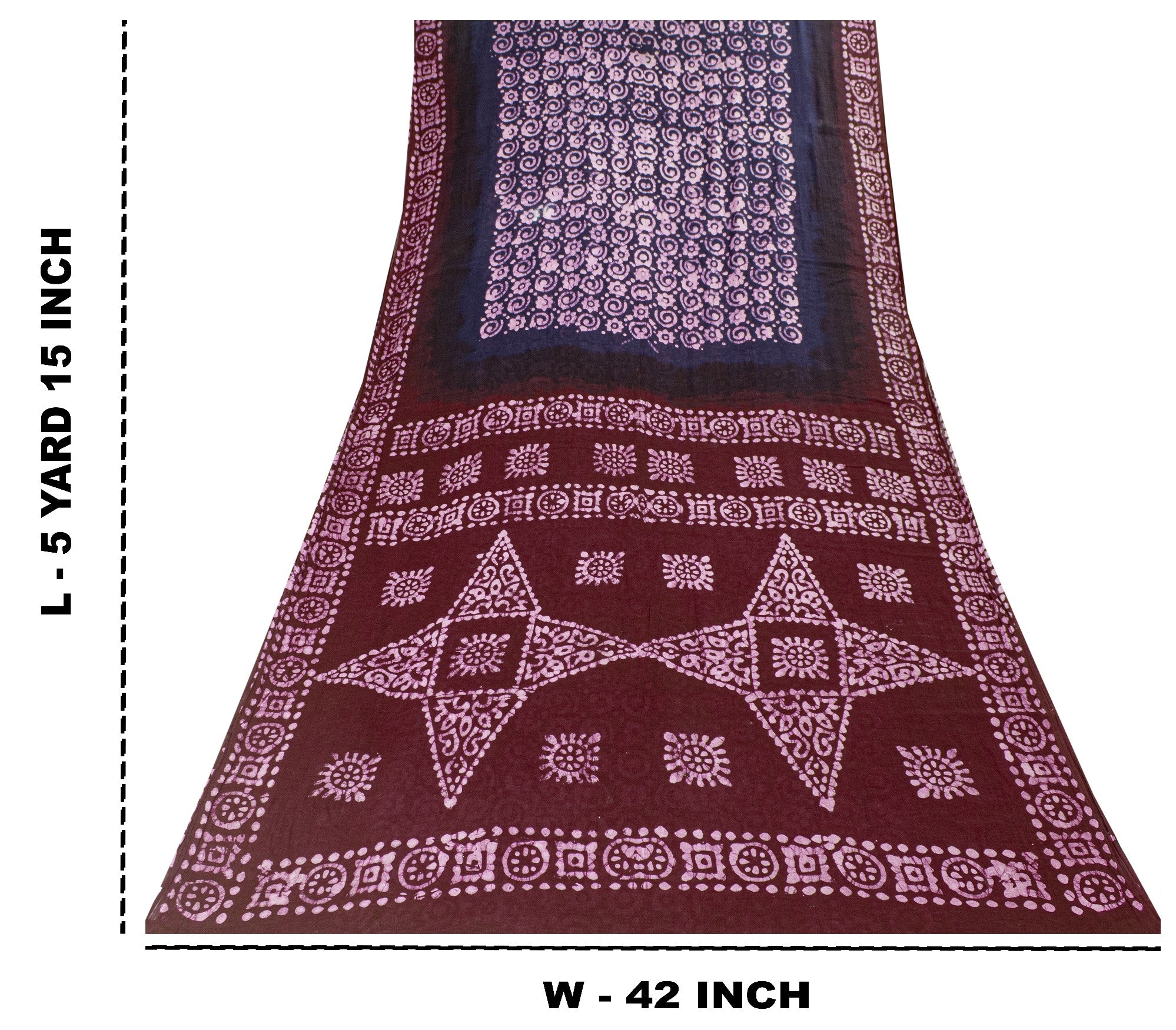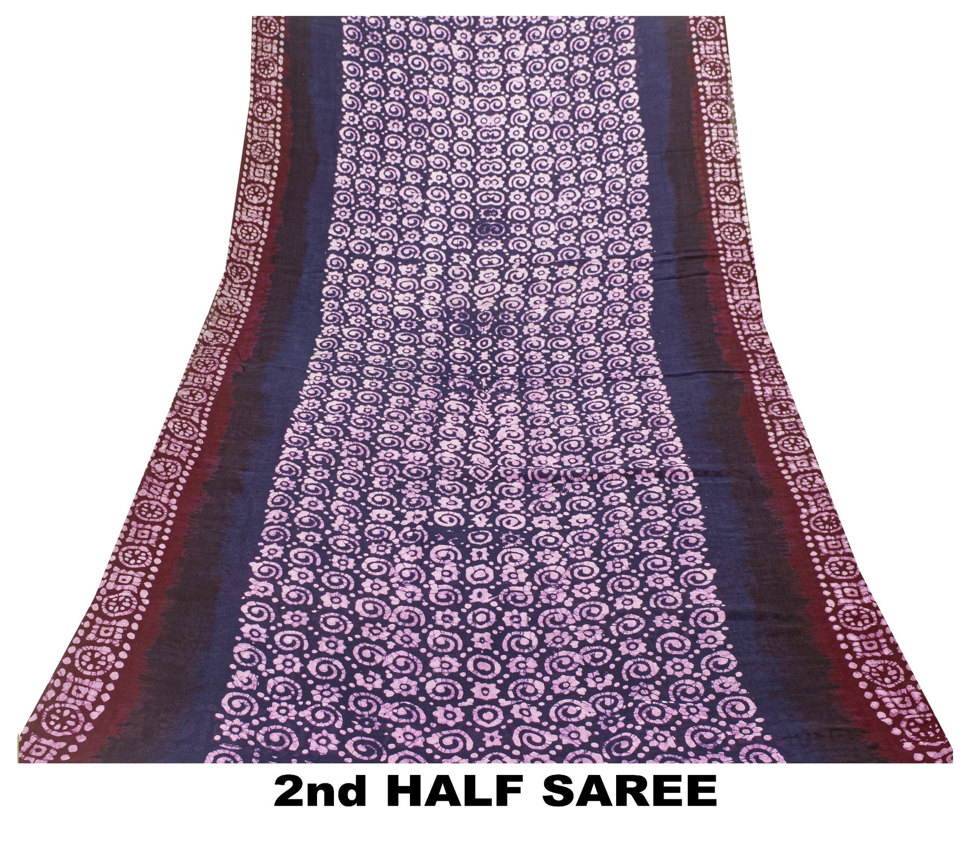 Lovely blue & red colored pure cotton batik work saree with floral, geometric & star design on pallu, border, & Similar work in center part. Versatile Uses-Crafting, Repurpose, Breathable fabric, Creative Sewing Project, Dressmaking, Kaftans, Use It As A Sari, Window Dressing, Upcycling, Sarongs, Throw,Table Linen,Decorative Fabric, Sustainable Indian Fabric. THE ITEM COLOR OR SHADE MAY BE DARKER OR LIGHTER THAN THE PICTURE.' International buyers please note: Import duties, taxes, and charges are not included in the item price or postage cost. Buyer will pay custom duty/tax,VAT, and any applicable charges at the time of delivery. PCS-7535