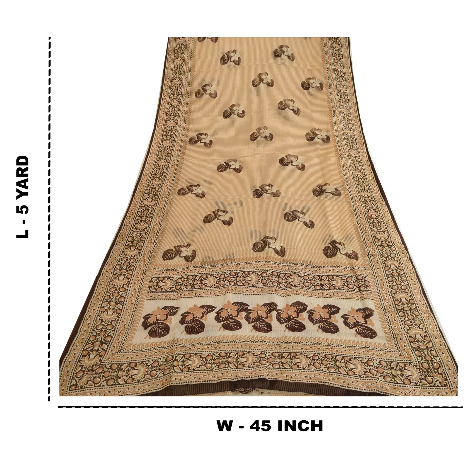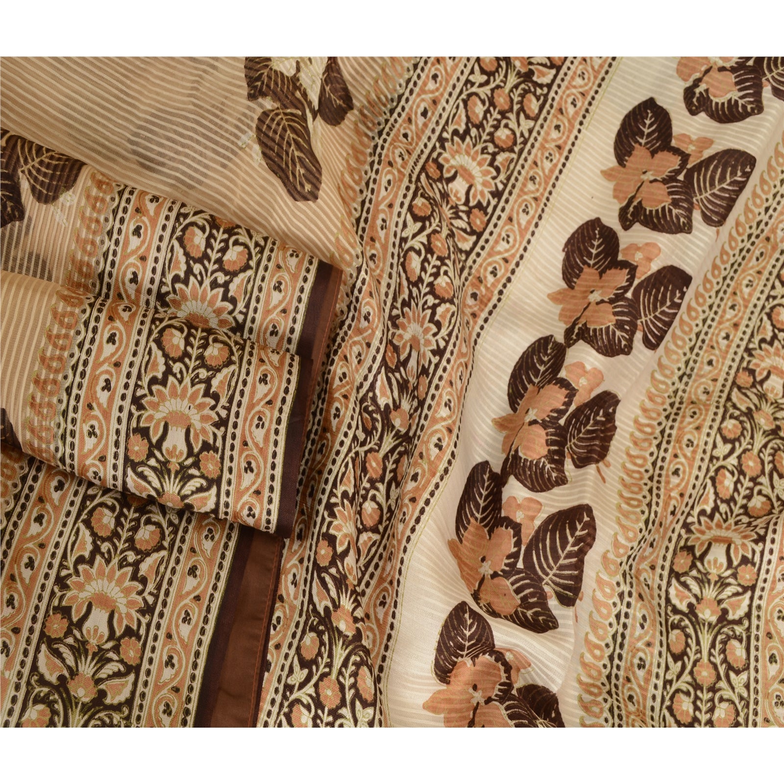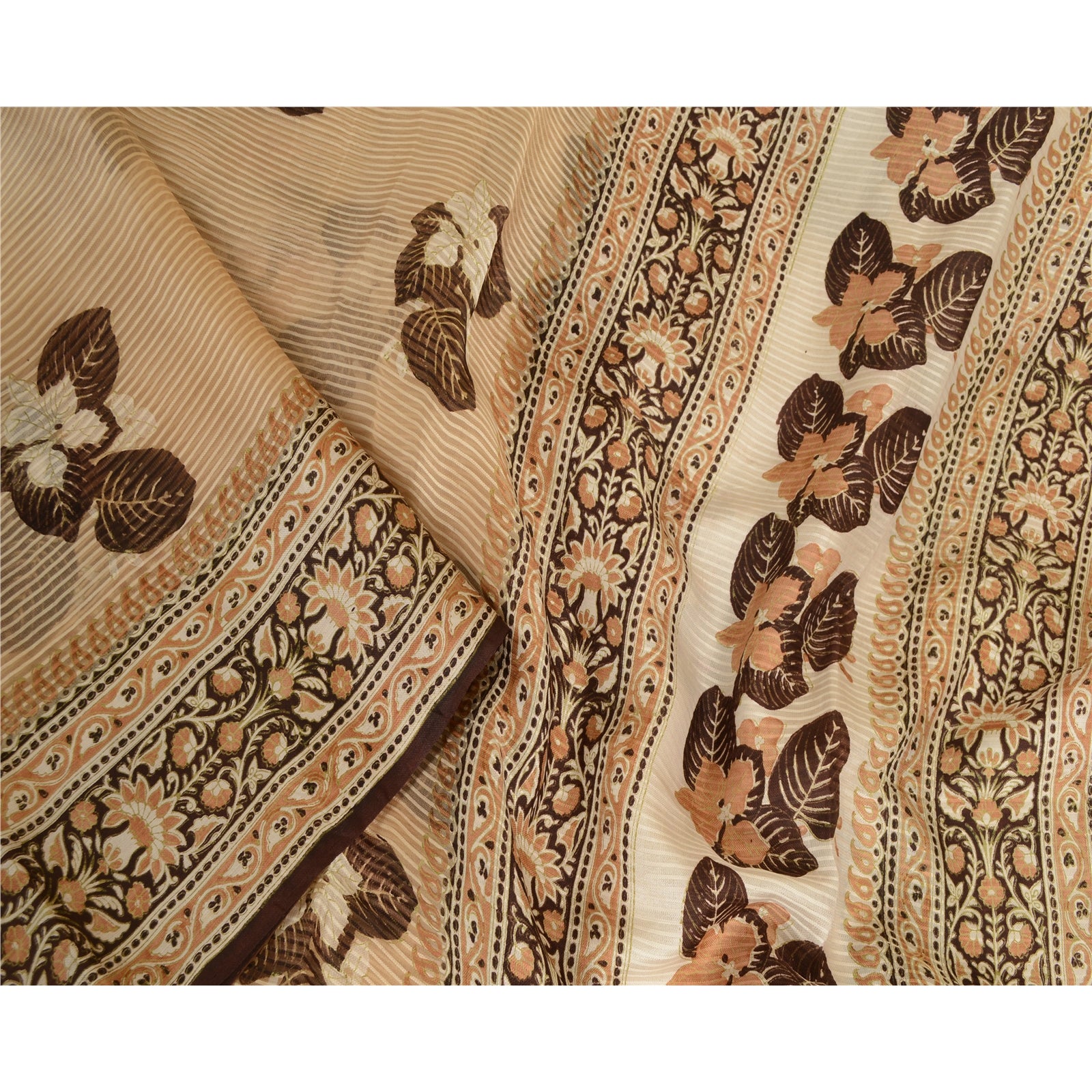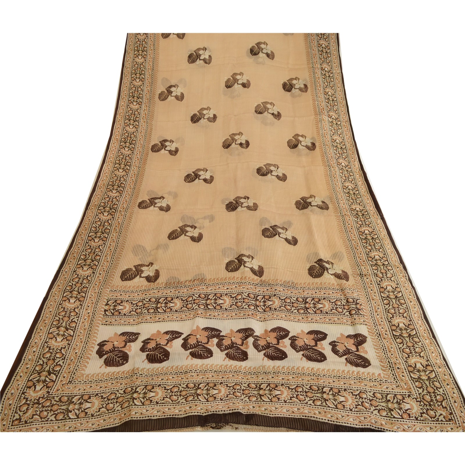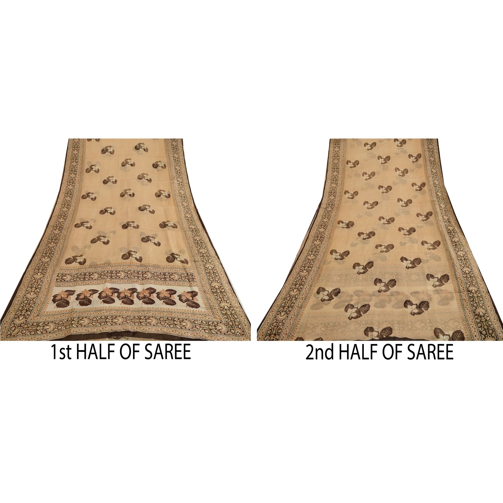 Sanskriti Vintage Sarees Brown From India Printed Pure Silk Sari Craft Sustainable Fabric