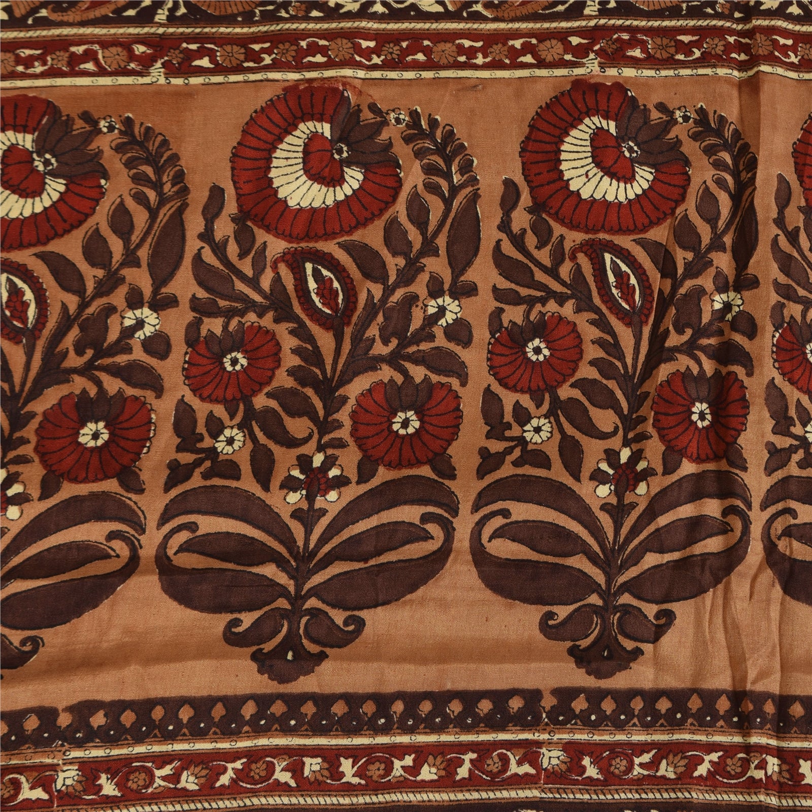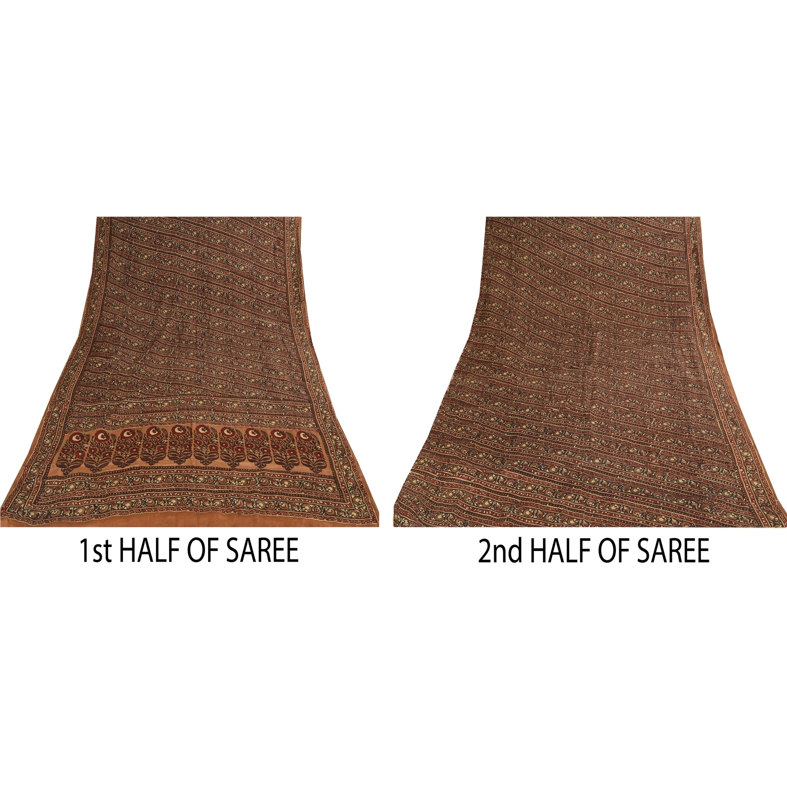 Sanskriti Vintage Sarees Brown Pure Crepe Silk Printed Sari 5+yd Craft Fabric