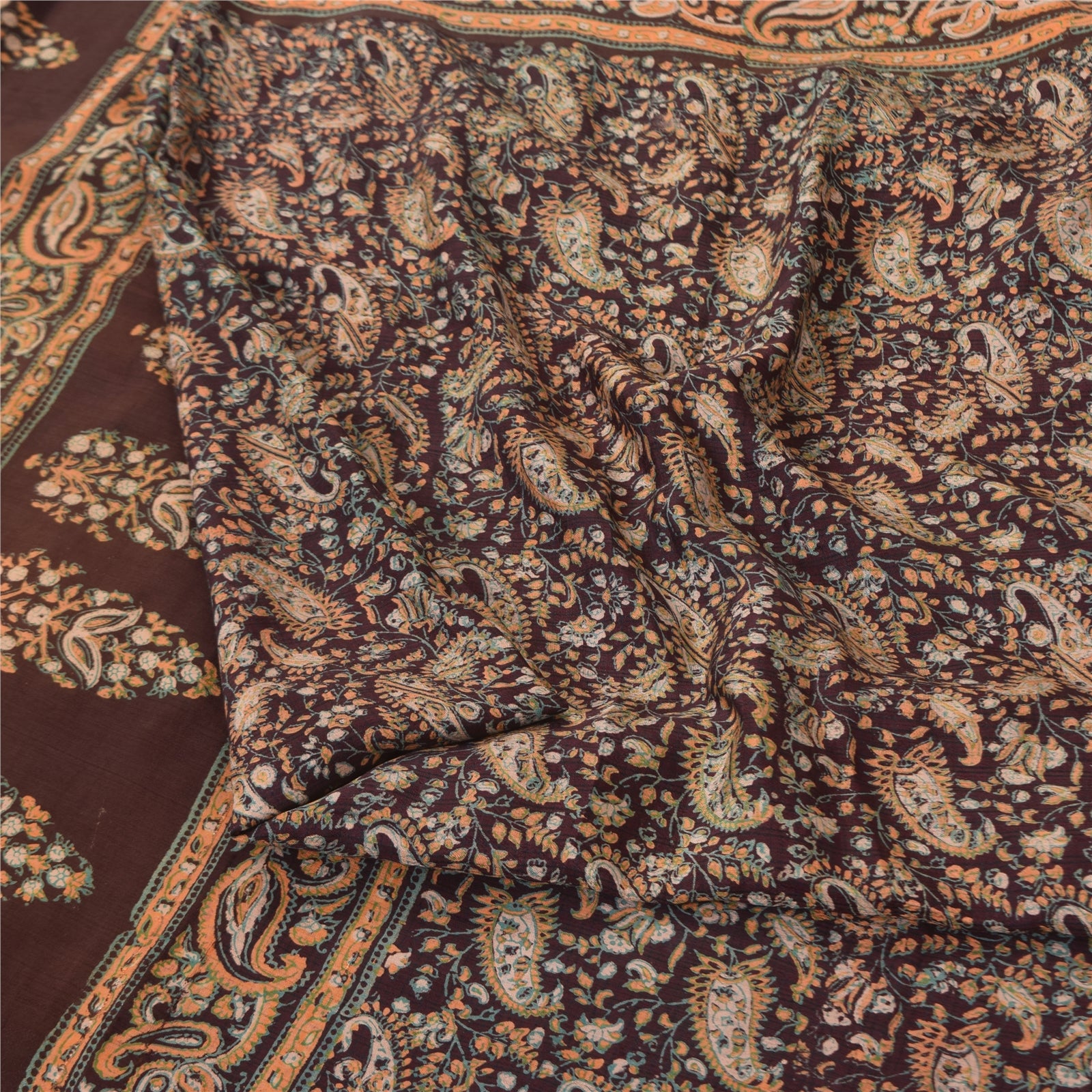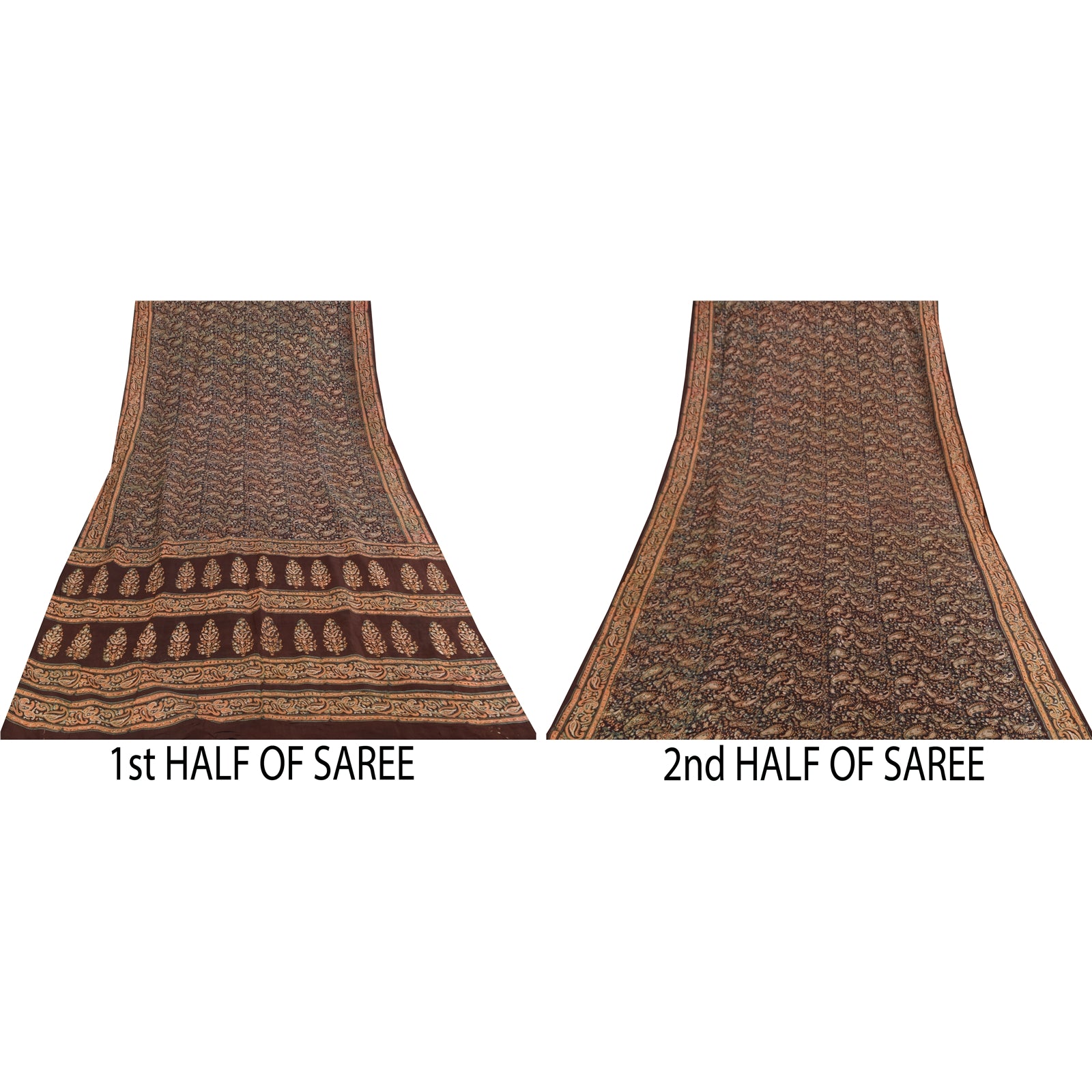 Sanskriti Vintage Sarees Brown Pure Silk Printed Sari 5+yd Craft Sustainable Fabric