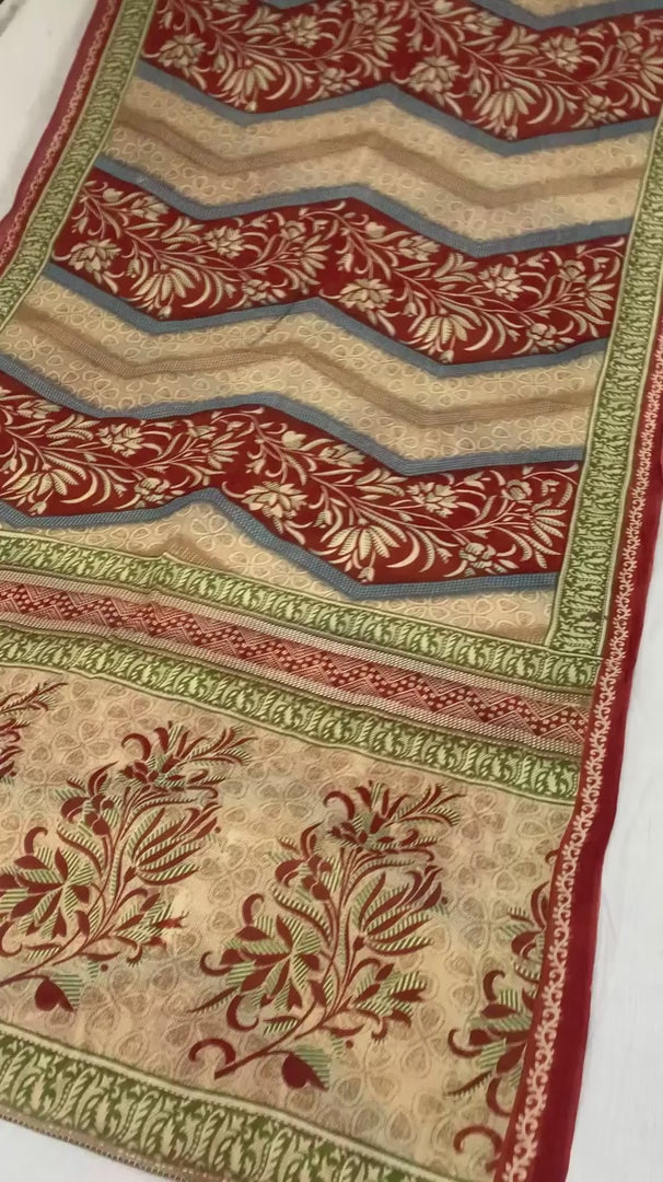 THE ITEM COLOR OR SHADE MAY BE DARKER OR LIGHTER THAN THE PICTURE. Attractive light brown & red colored pure cotton printed sari. Pallu & Border has printed floral design. Similar design in center part of saree.. This unique vintage saree can be used for various crafting ideas even if you don't want to use it as a sari. Design a dress, use it as a as window dressing, upholstery, sarongs, throw, dress making and table linen much more. Let your creative juices flow and use this decorated fabric in multiple fashion. Shipping Note: 'International buyers please note: Import duties, taxes, and charges are not included in the item price or postage cost. These charges are the buyer's responsibility. Please check with your country's customs office to determine what these additional costs will be prior to bidding or buying. Buyer will pay custom duty/tax. It is calculated and charged differently by every country. As a seller I do not have any control over it. VAT or sales tax is calculated by the platform at the time of checkout. Customs charge is payable at the time of delivery.' PCS-6996