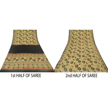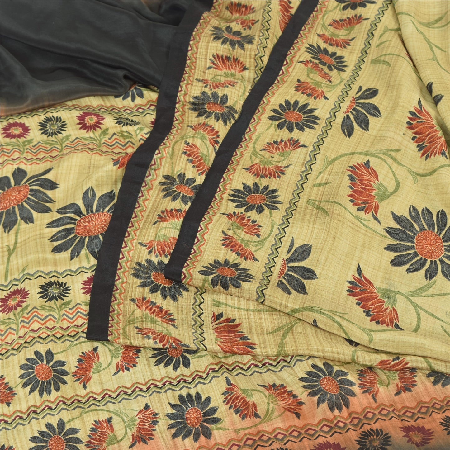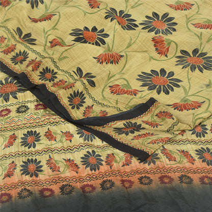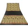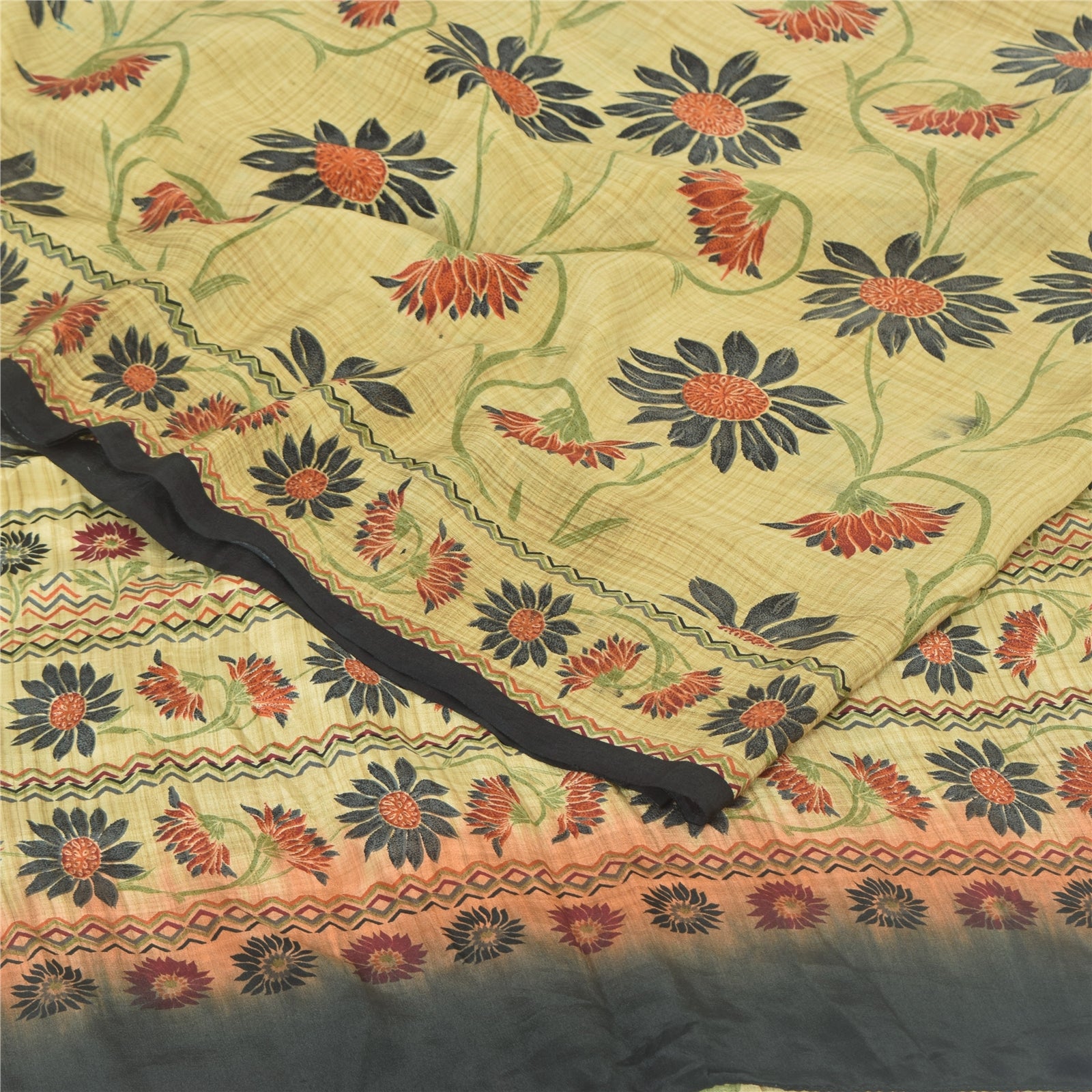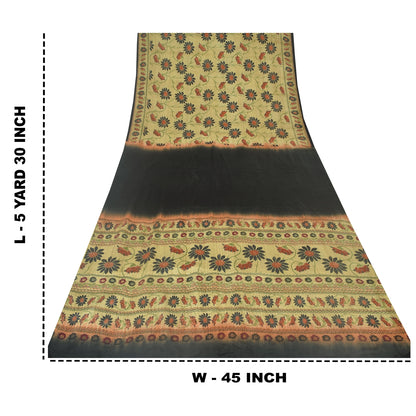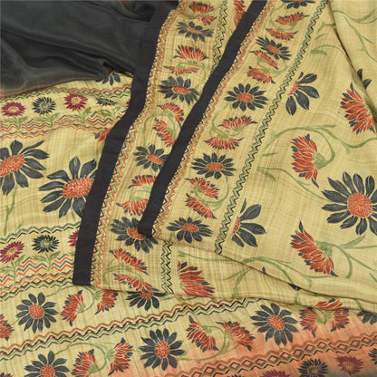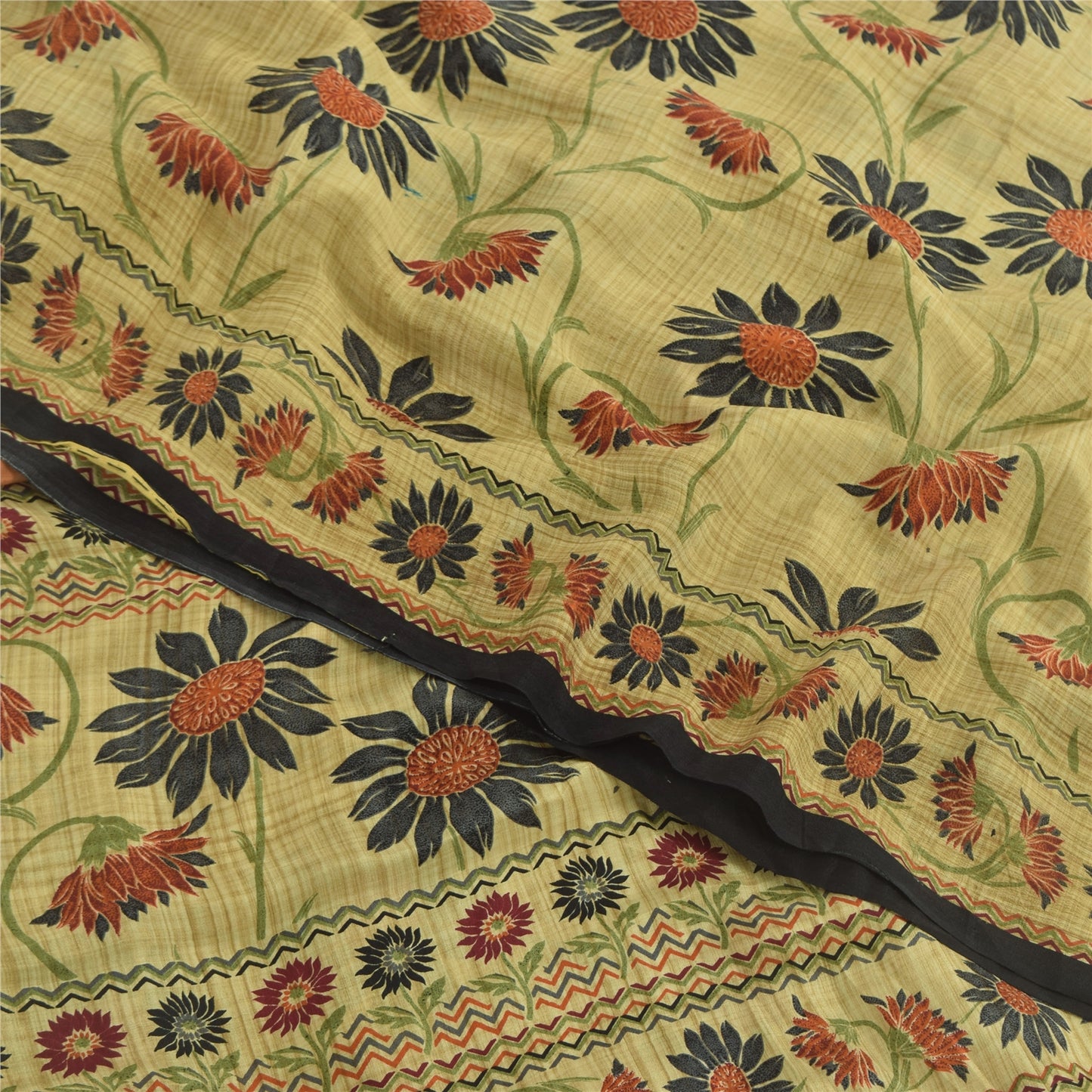 Sanskriti Vintage Sarees Cream 100%Pure Crepe Silk Printed Sari 5yd Craft Sustainable Fabric