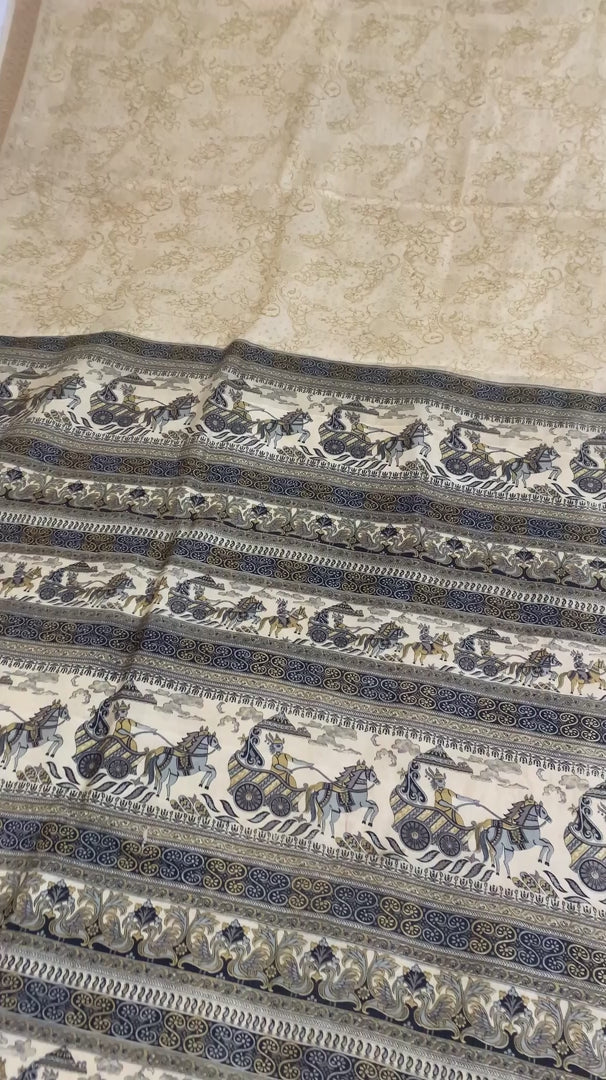THE ITEM COLOR OR SHADE MAY BE DARKER OR LIGHTER THAN THE PICTURE.' • Beautiful cream colored printed pure silk saree . • Pallu & Border has printed floral, peacock, horse cart design & woven work. • Floral design in center part of sari . This unique vintage saree can be used for various crafting ideas even if you don't want to use it as a sari. Design a dress, use it as a as window dressing, upholstery, sarongs, throw, dress making and table linen much more. Let your creative juices flow and use this decorated fabric in multiple fashion. International buyers please note: Import duties, taxes, and charges are not included in the item price or postage cost. These charges are the buyer's responsibility. Please check with your country's customs office to determine what these additional costs will be prior to bidding or buying.Buyer will pay custom duty/tax. It is calculated and charged differently by every country. As a seller I do not have any control over it. VAT or sales tax is calculated by the platform at the time of checkout. Customs charge is payable at the time of delivery. PR-69993