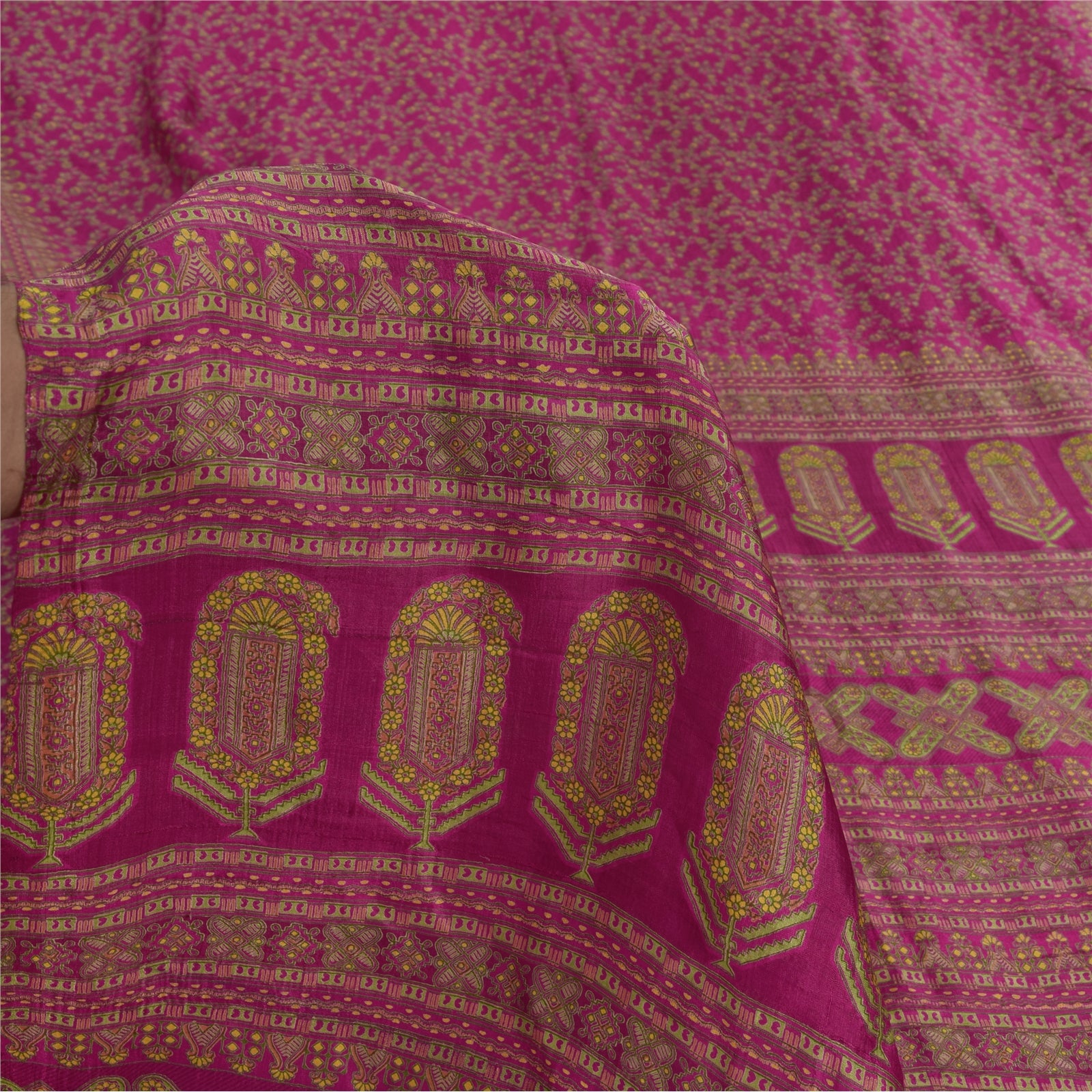 THE ITEM COLOR OR SHADE MAY BE DARKER OR LIGHTER THAN THE PICTURE.' • Beautiful dark pink colored printed pure silk saree . • Pallu & Border has printed floral design. • Similar design in center part of sari . This unique vintage saree can be used for various crafting ideas even if you don't want to use it as a sari. Design a dress, use it as a as window dressing, upholstery, sarongs, throw, dress making and table linen much more. Let your creative juices flow and use this decorated Sustainable Fabric in multiple fashion. International buyers please note: Import duties, taxes, and charges are not included in the item price or postage cost. These charges are the buyer's responsibility. Please check with your country's customs office to determine what these additional costs will be prior to bidding or buying.Buyer will pay custom duty/tax. It is calculated and charged differently by every country. As a seller I do not have any control over it. VAT or sales tax is calculated by the platform at the time of checkout. Customs charge is payable at the time of delivery.