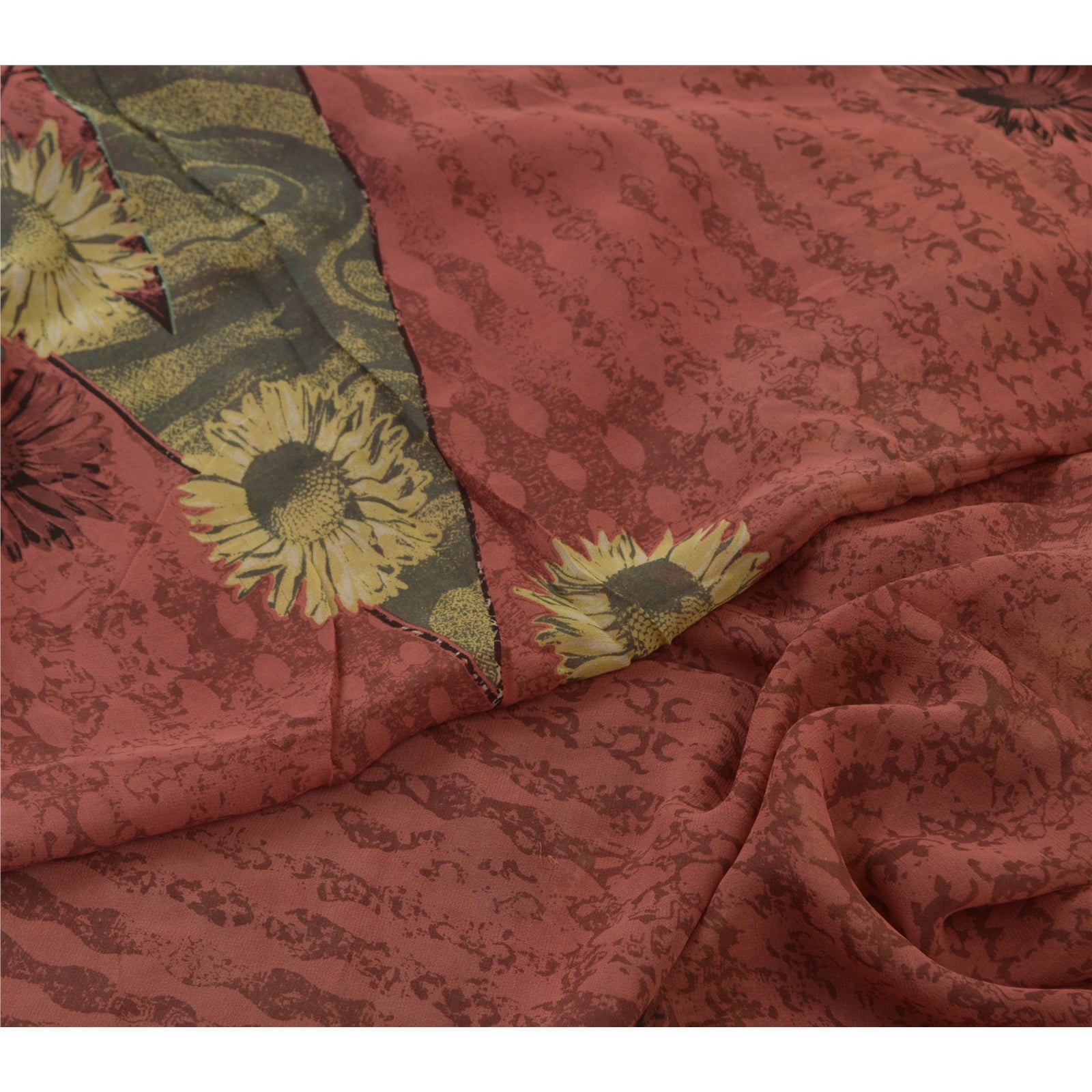 Sanskriti Vintage Sarees Dusty Pink Pure Georgette Silk Printed Sari CraftSustainable Fabric