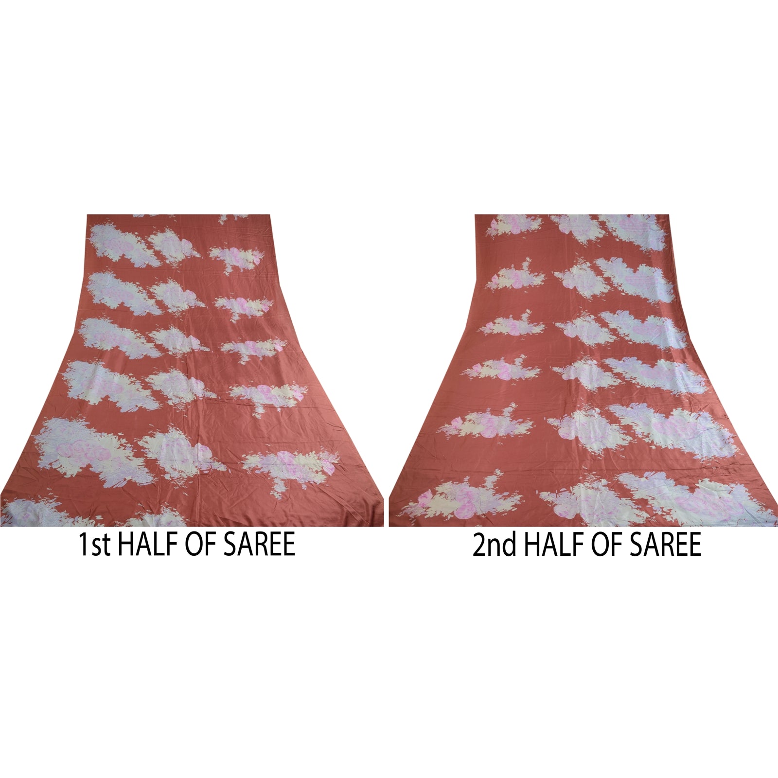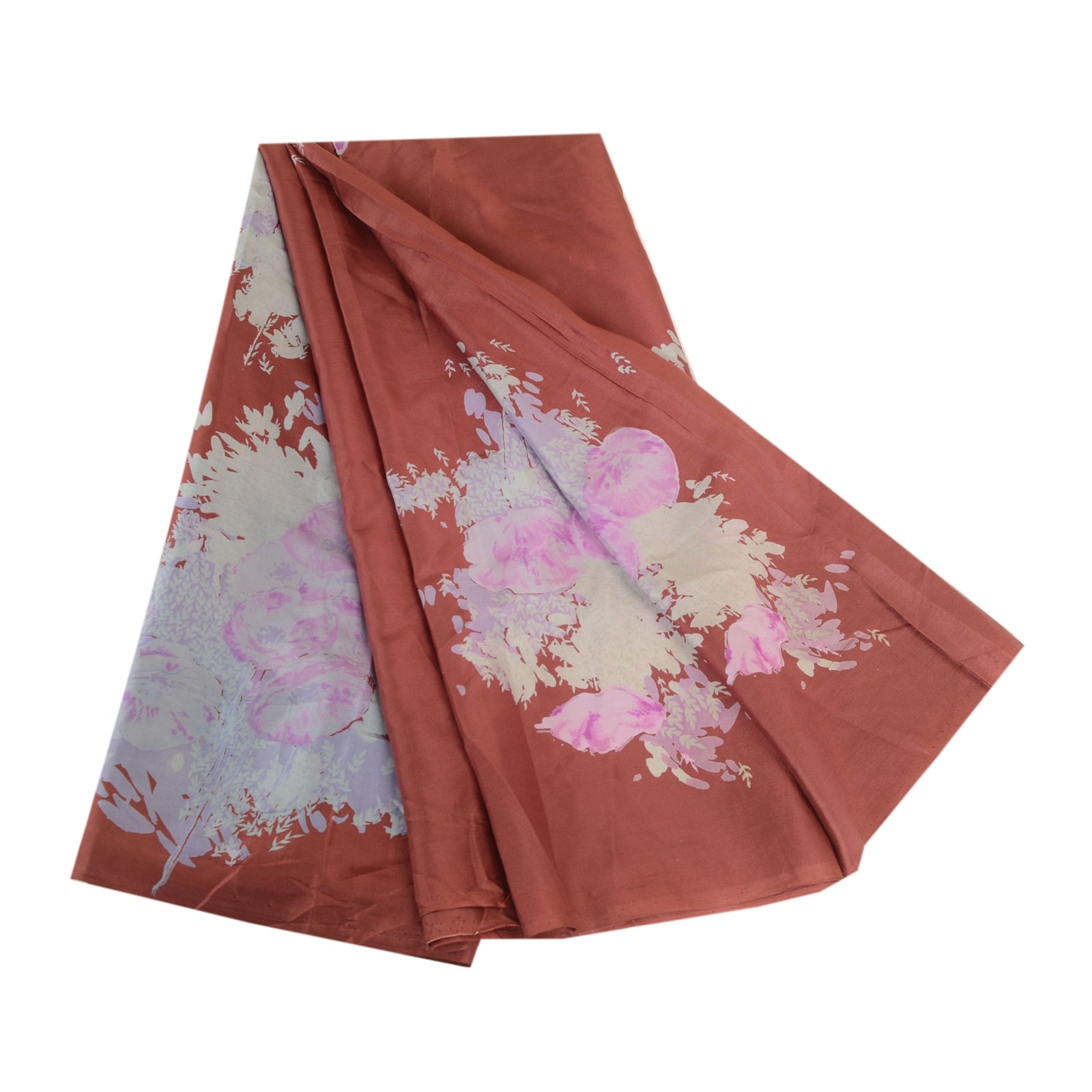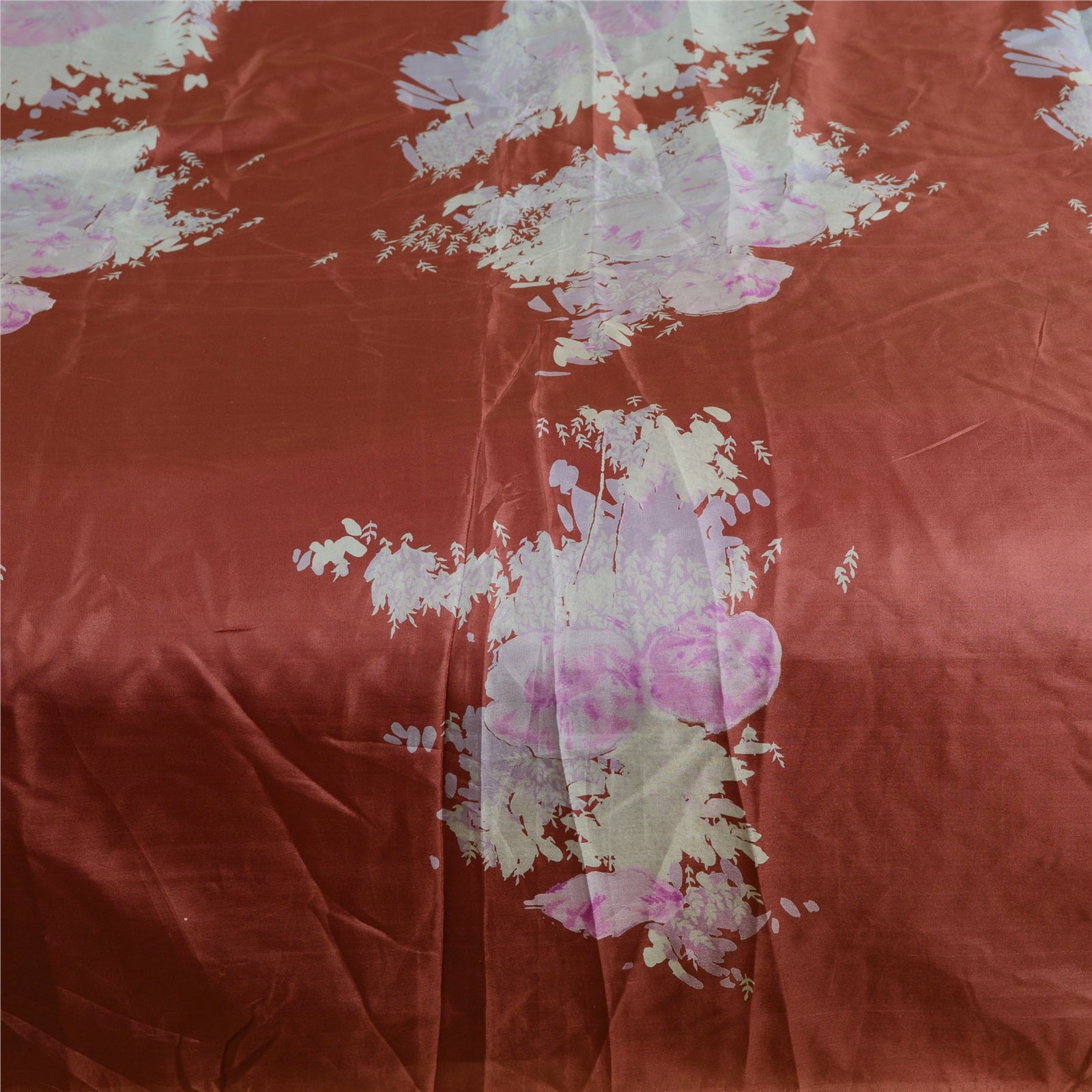 Sanskriti Vintage Sarees Dusty Red Pure Silk Printed Sari Floral Craft Sustainable Fabric