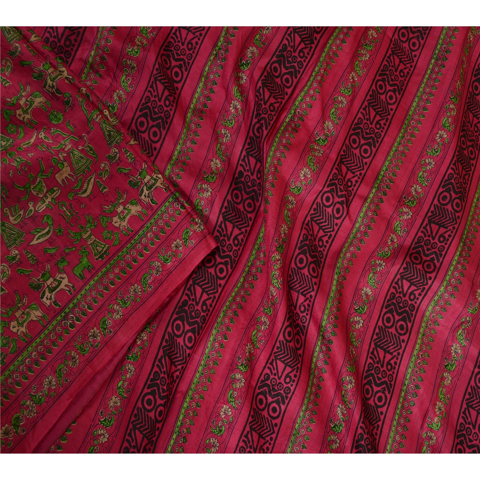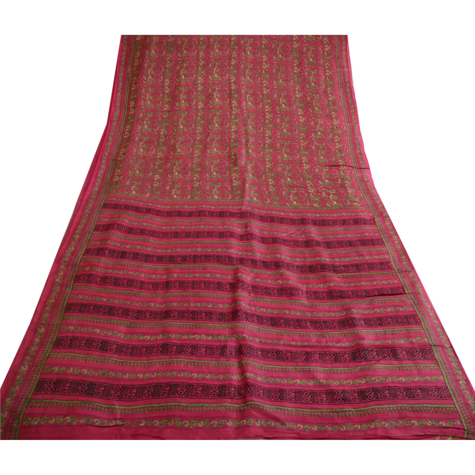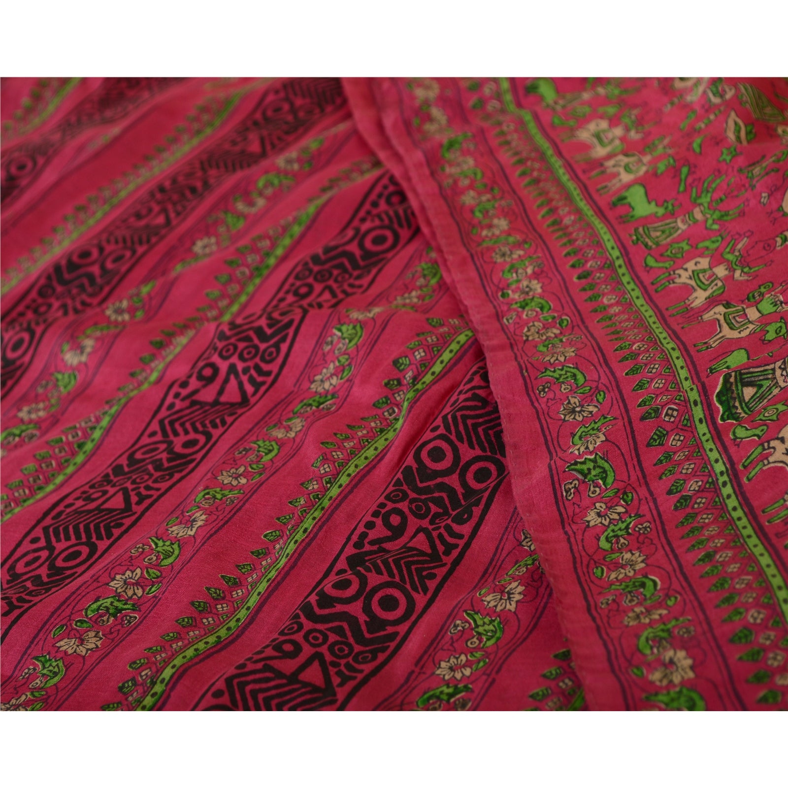 Sanskriti Vintage Sarees From India Hot-Pink Print Pure Silk Sari Craft Sustainable Fabric
