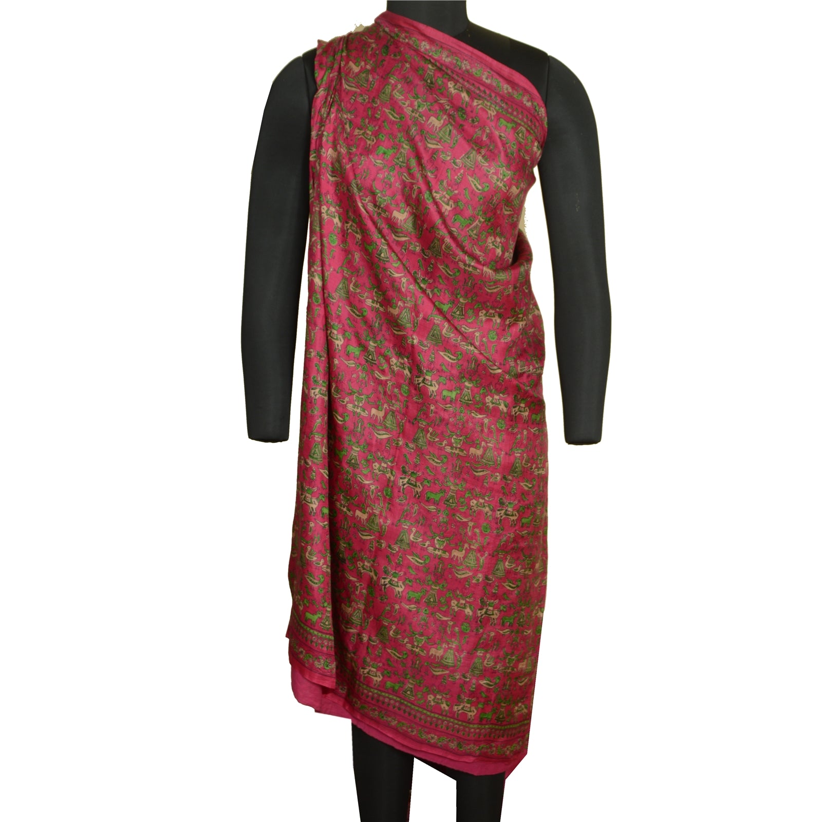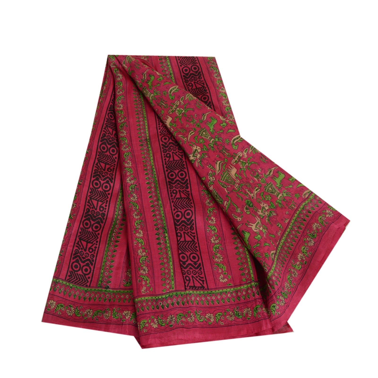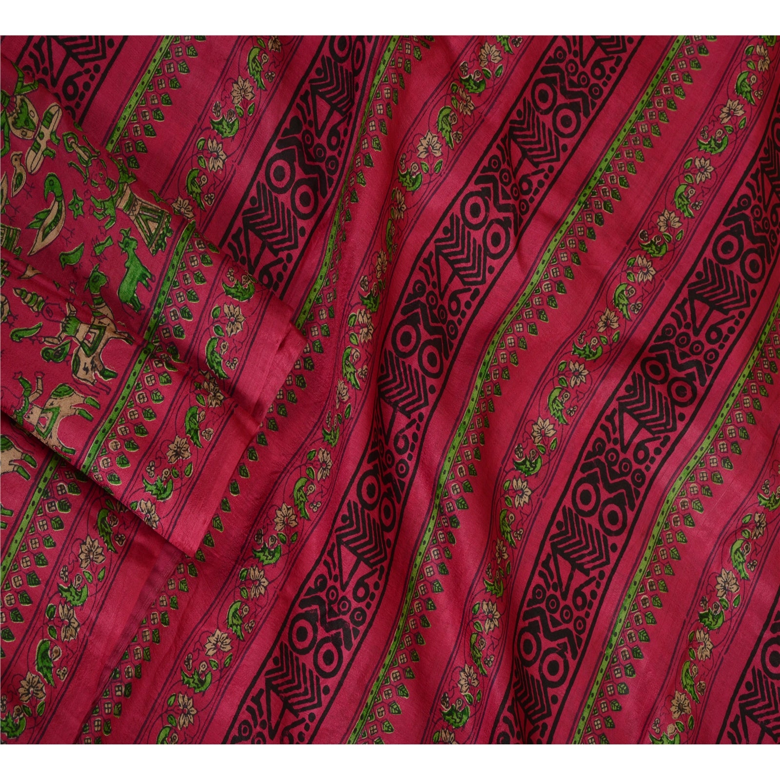 Sanskriti Vintage Sarees From India Hot-Pink Print Pure Silk Sari Craft Sustainable Fabric