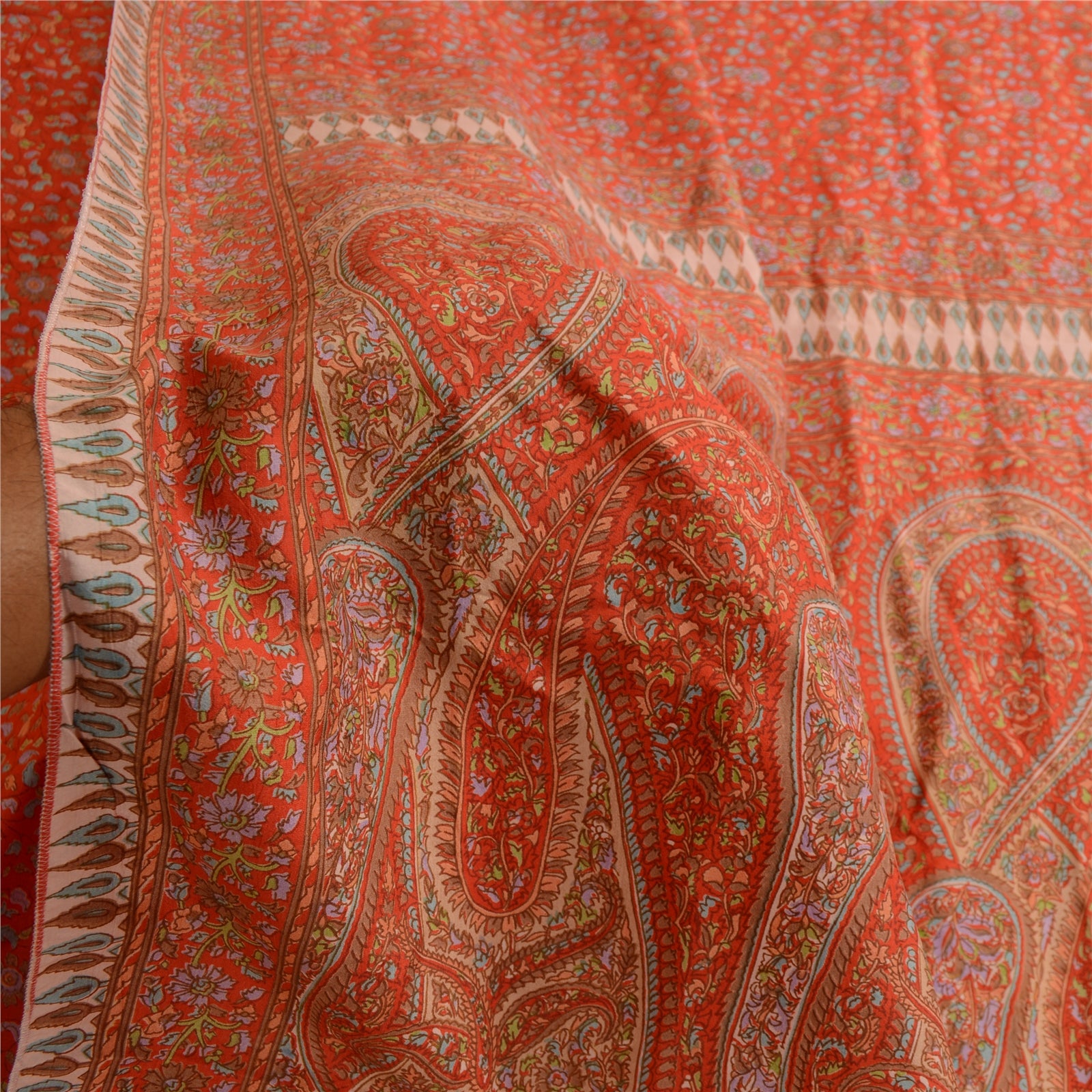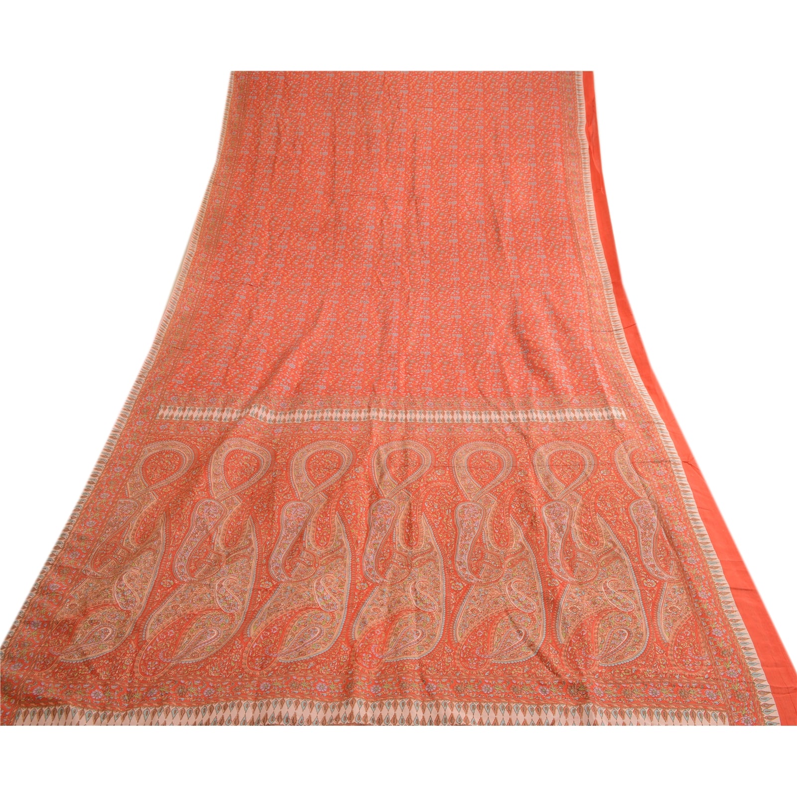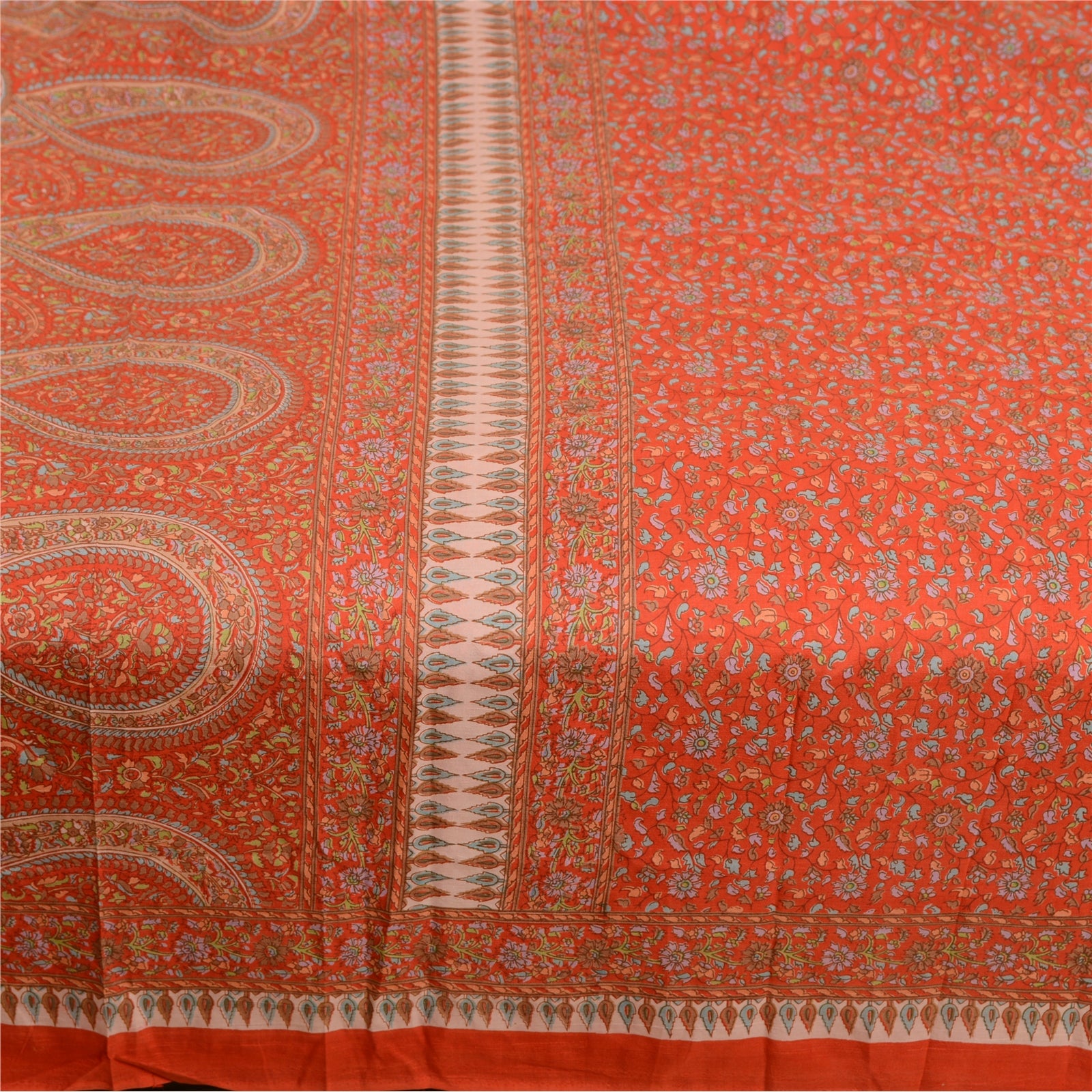 Sanskriti Vintage Sarees From India Red Printed Pure Silk Sari 5yd Craft Sustainable Fabric