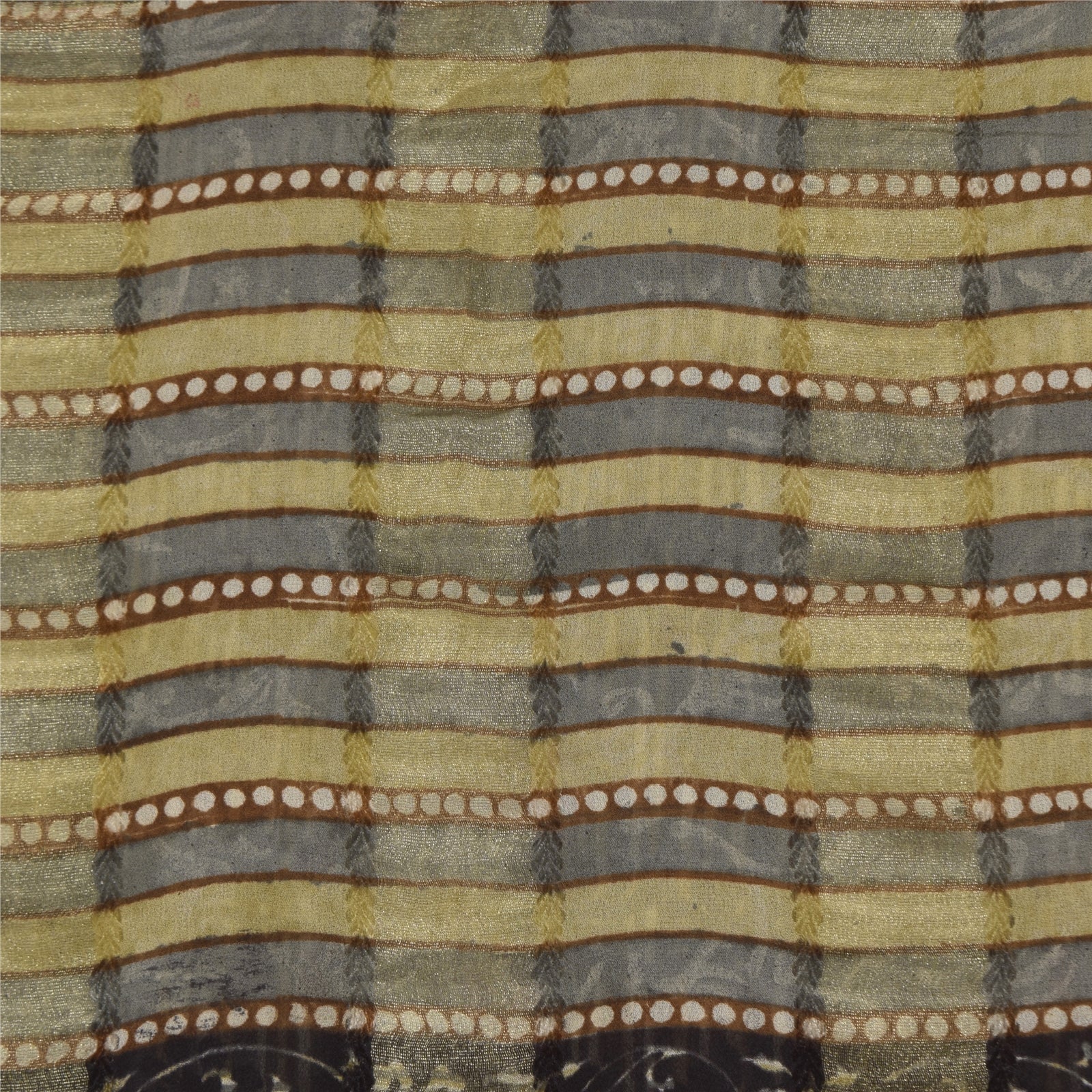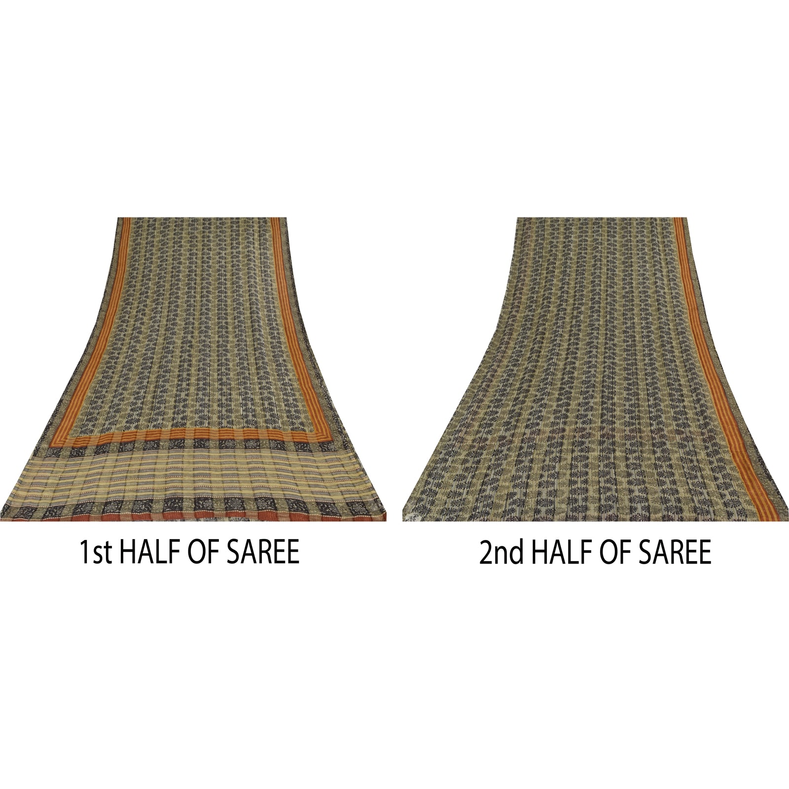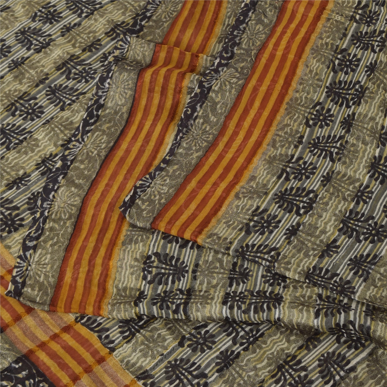 Sanskriti Vintage Sarees Gray/Black Pure Georgette Print Sari 5+yd Craft Sustainable Fabric