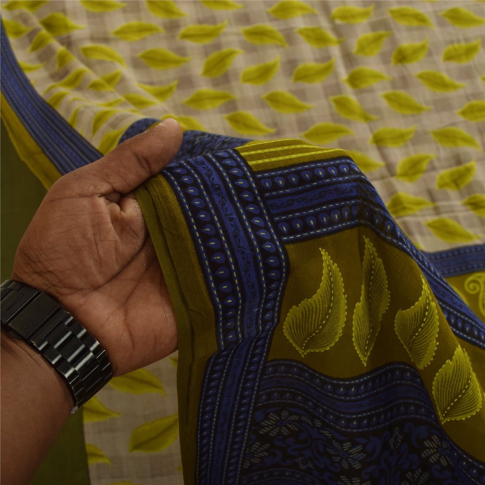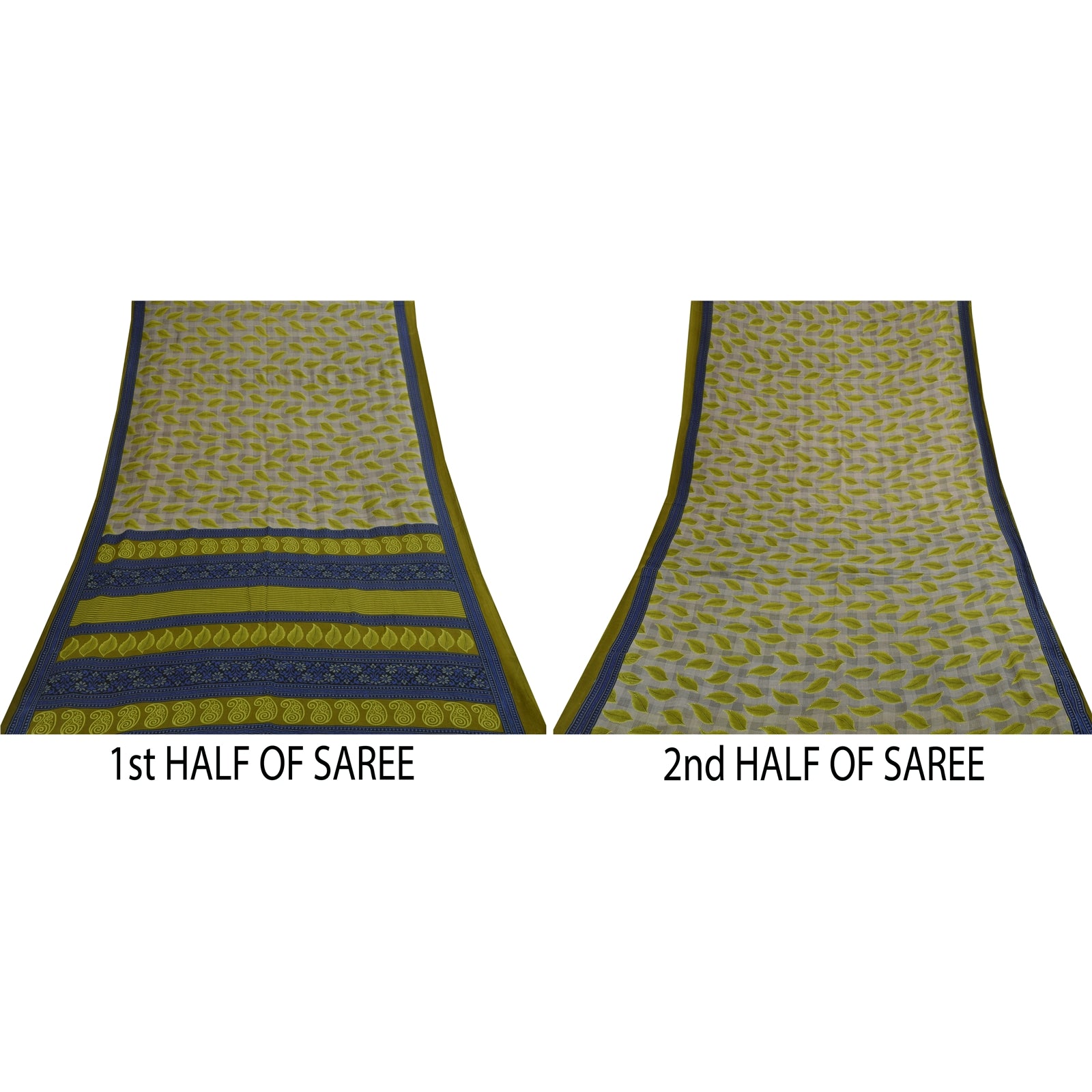 Sanskriti Vintage Sarees Gray & Green Pure Cotton Printed Sari 5+yd Craft Fabric