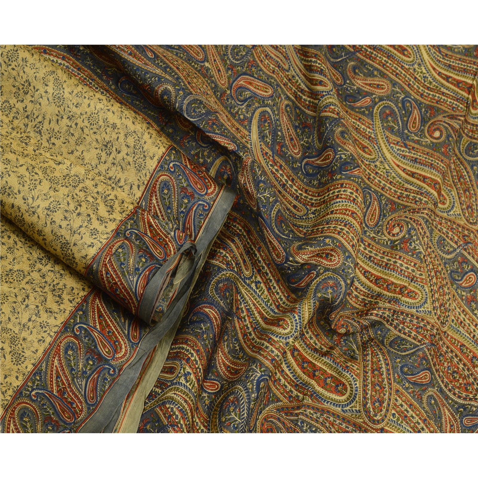 Sanskriti Vintage Sarees Green 100% Pure Silk Printed Sari Paisley Craft Sustainable Fabric