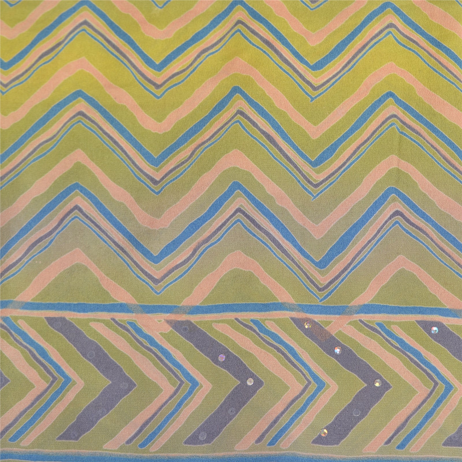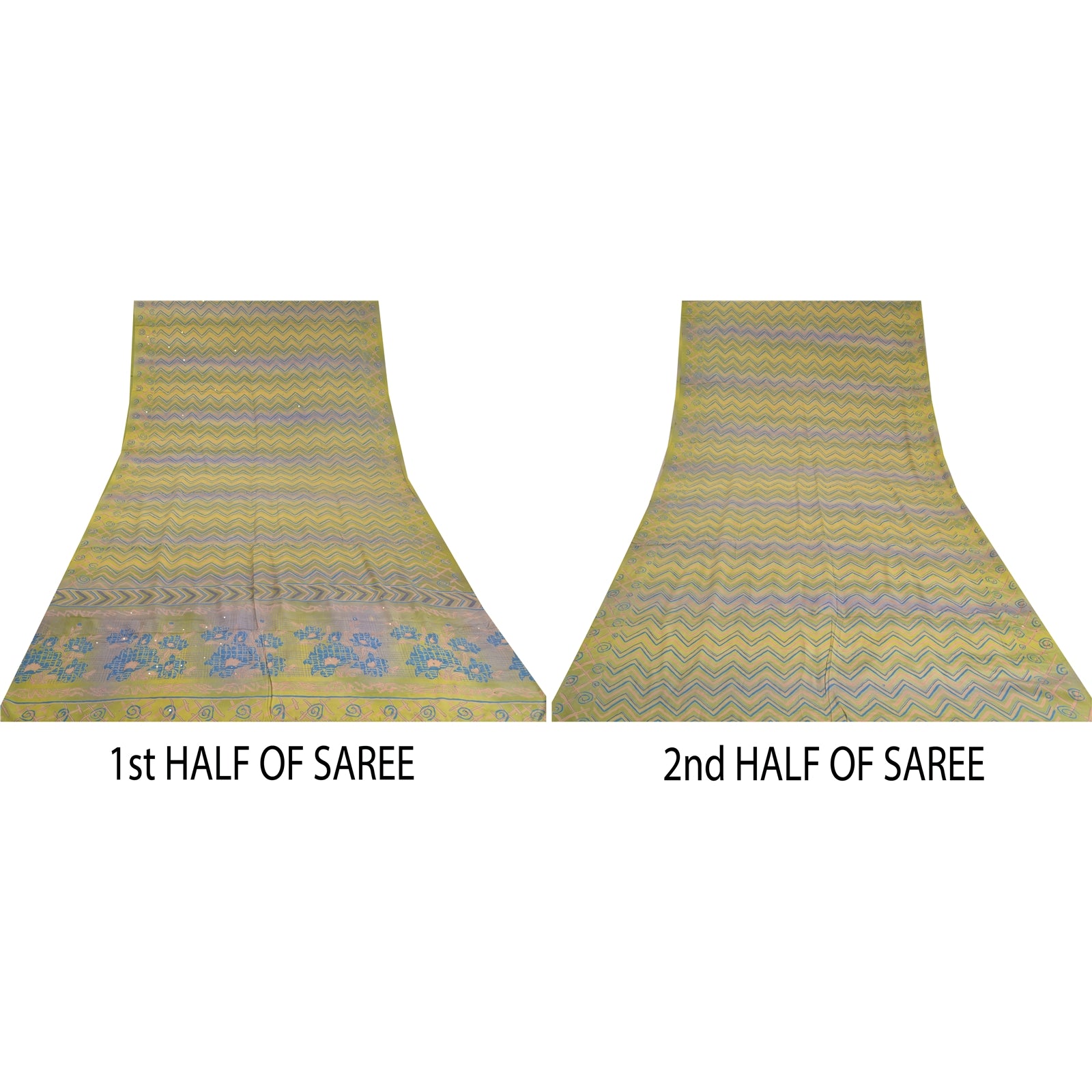 Sanskriti Vintage Sarees Green/Blue Pure Crepe Silk Printed Sari Craft Sustainable Fabric