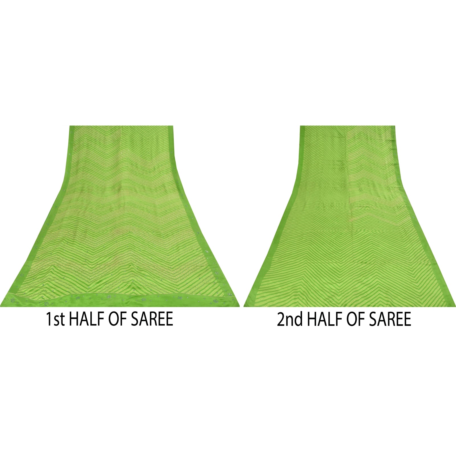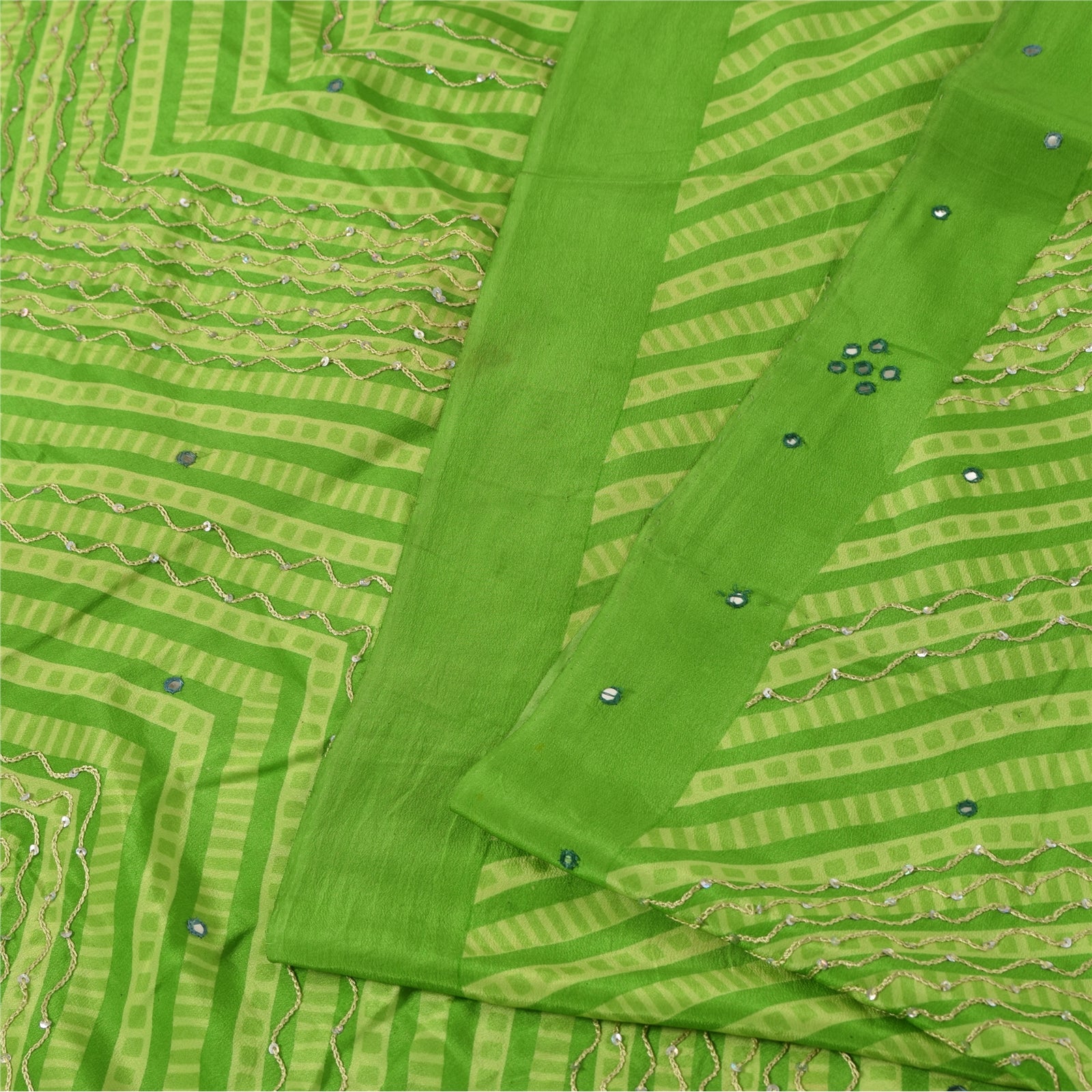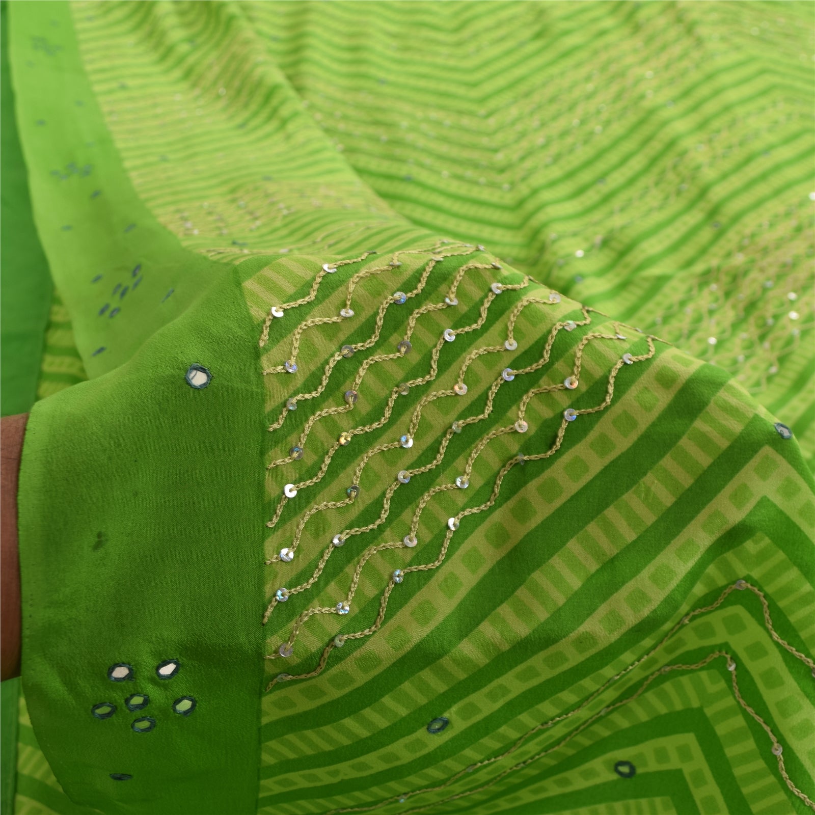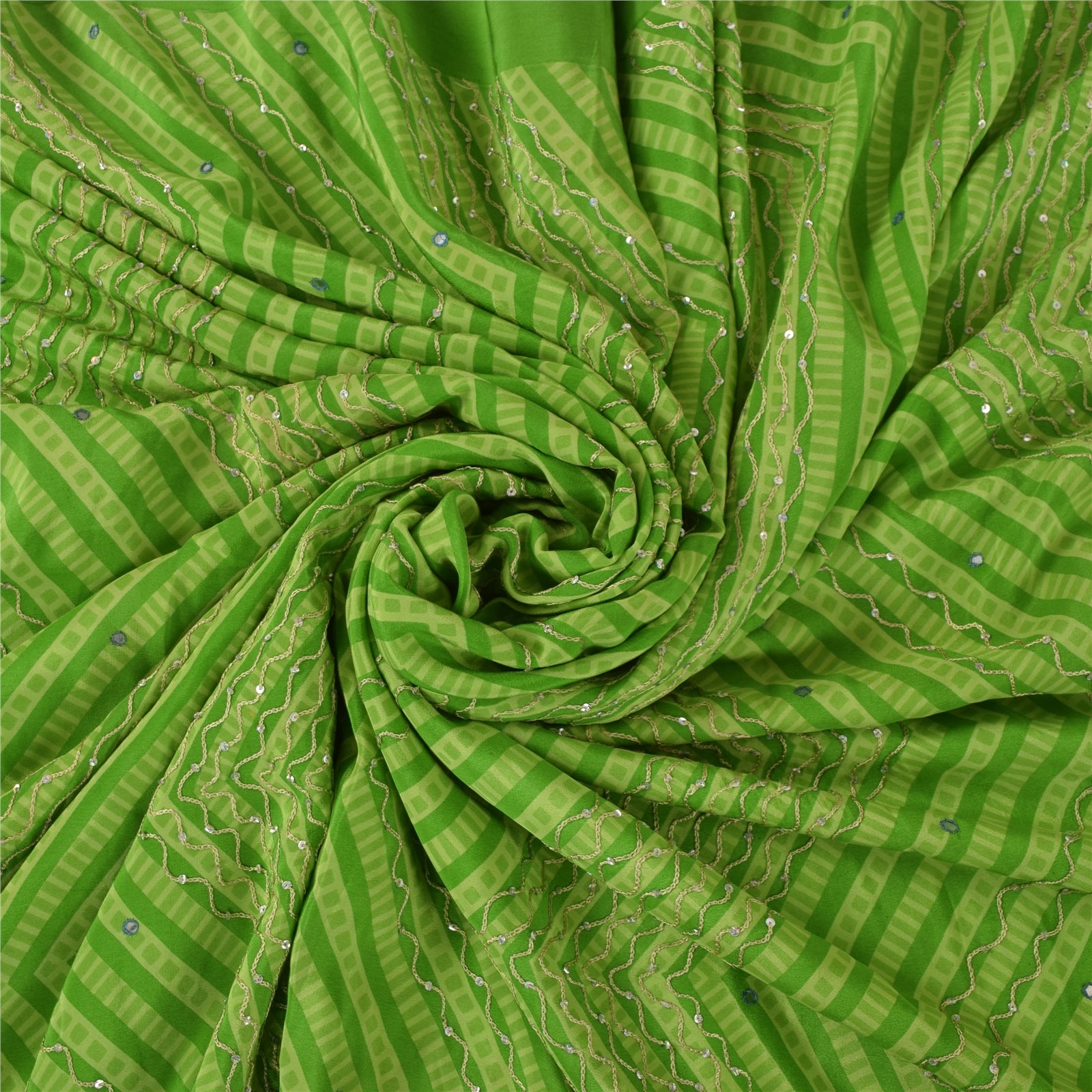 Sanskriti Vintage Sarees Green Embroidery Print Pure CrepeSari 5+yd Craft Fabric