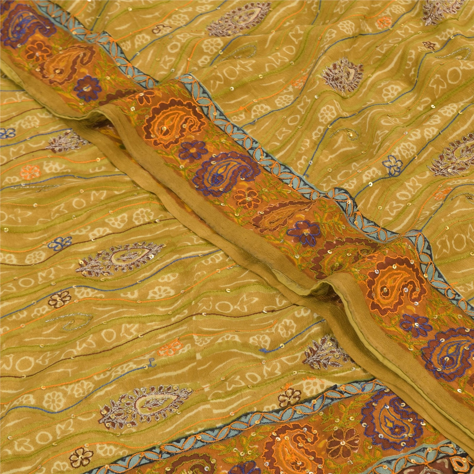 THE ITEM COLOR OR SHADE MAY BE DARKER OR LIGHTER THAN THE PICTURE.' • Beautiful green colored printed & hand embroidered pure crepe silk saree . • Pallu & Border has printed floral design with thread & sequins work. • Similar work in center part of sari . This unique vintage saree can be used for various crafting ideas even if you don't want to use it as a sari. Design a dress, use it as a as window dressing, upholstery, sarongs, throw, dress making and table linen much more. Let your creative juices flow and use this decorated Sustainable Fabric in multiple fashion. International buyers please note: Import duties, taxes, and charges are not included in the item price or postage cost. These charges are the buyer's responsibility. Please check with your country's customs office to determine what these additional costs will be prior to bidding or buying.Buyer will pay custom duty/tax. It is calculated and charged differently by every country. As a seller I do not have any control over it. VAT or sales tax is calculated by the platform at the time of checkout. Customs charge is payable at the time of delivery. PRC-22787